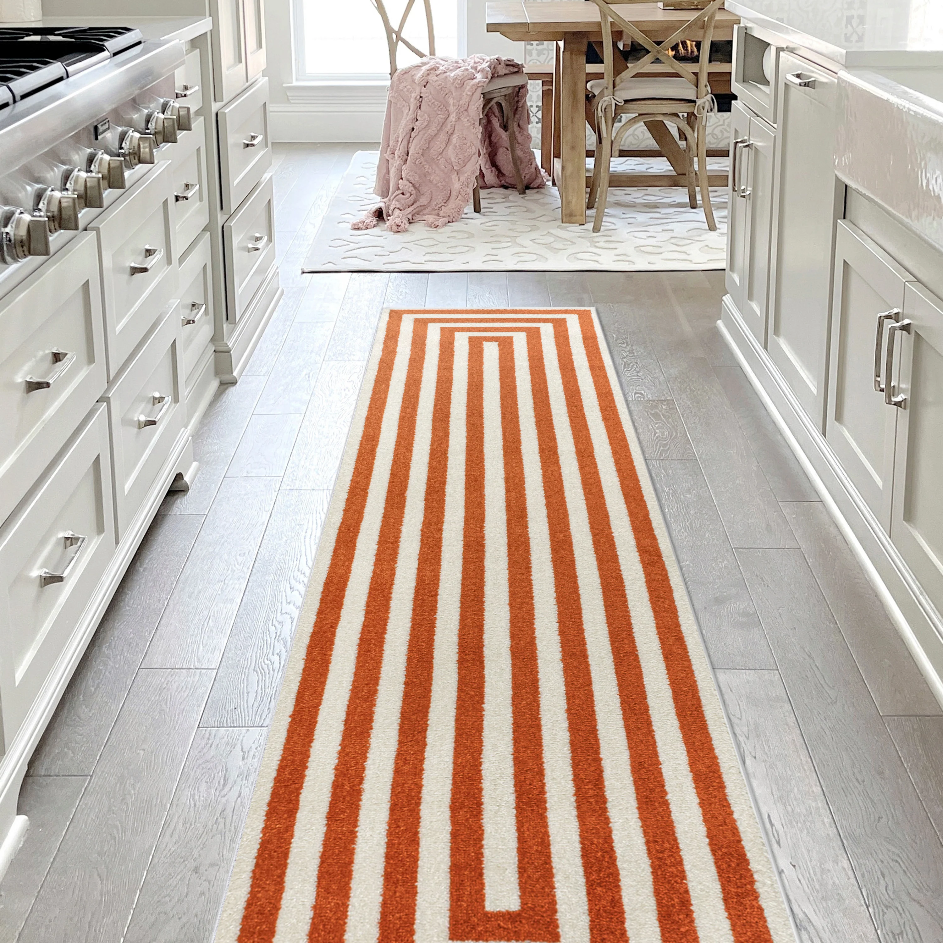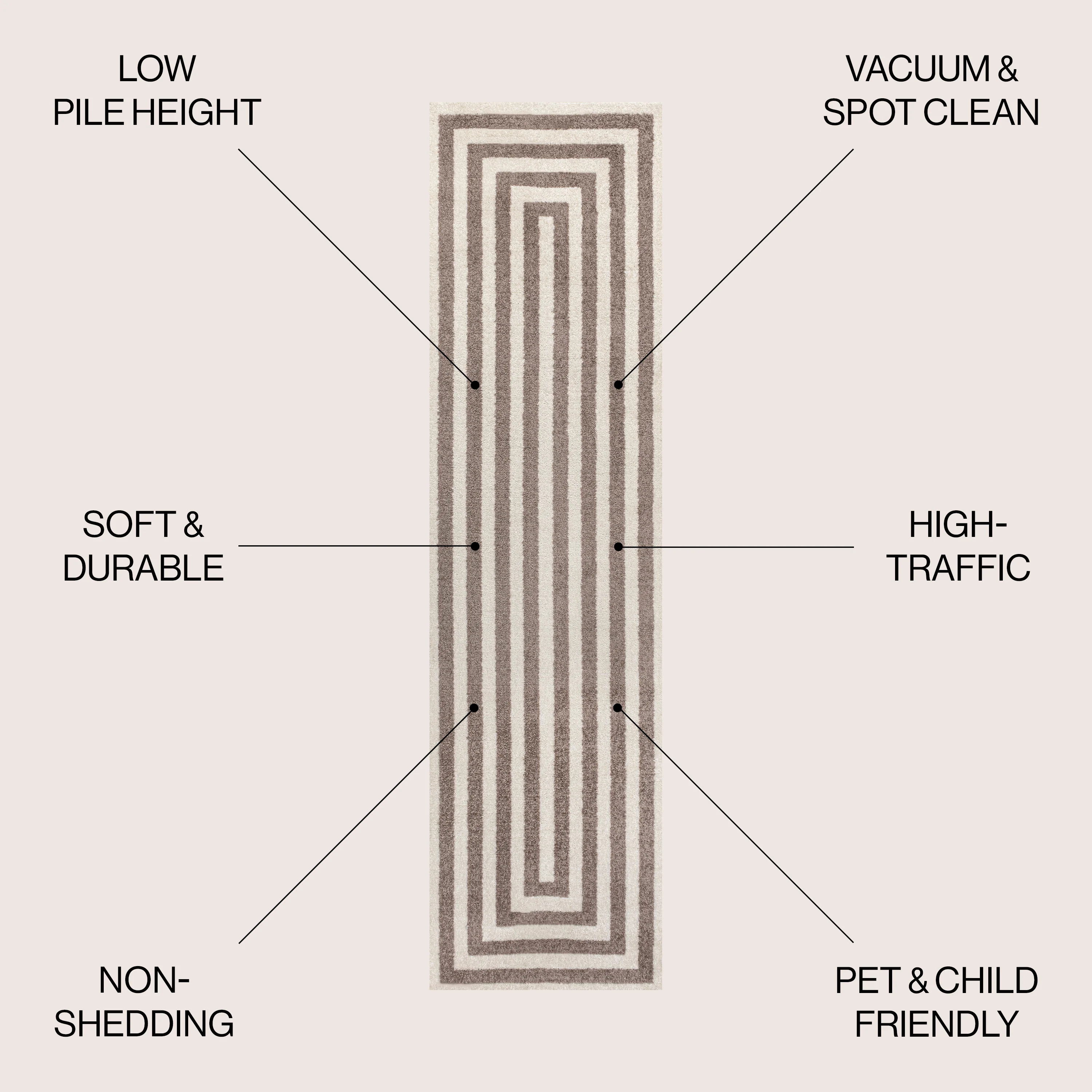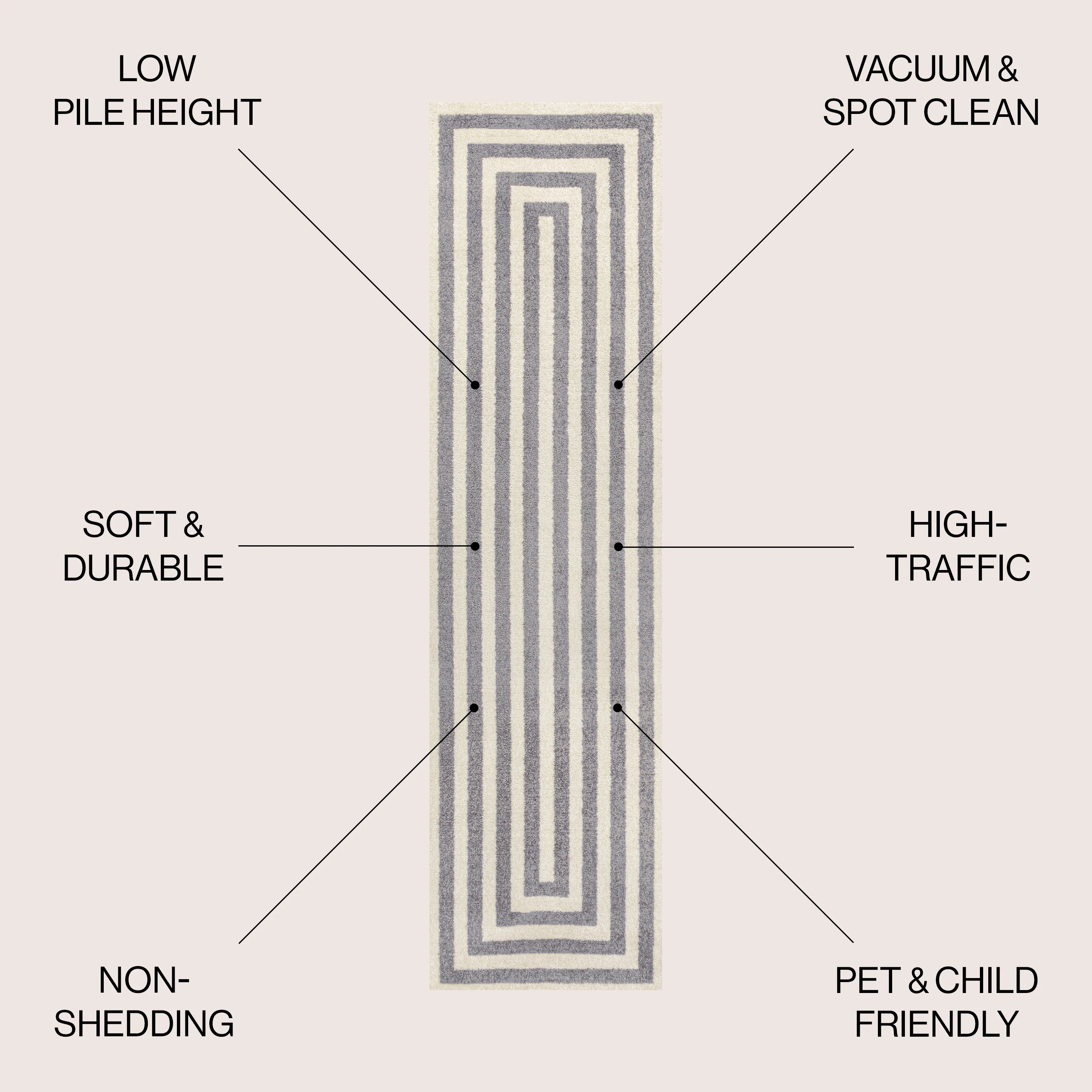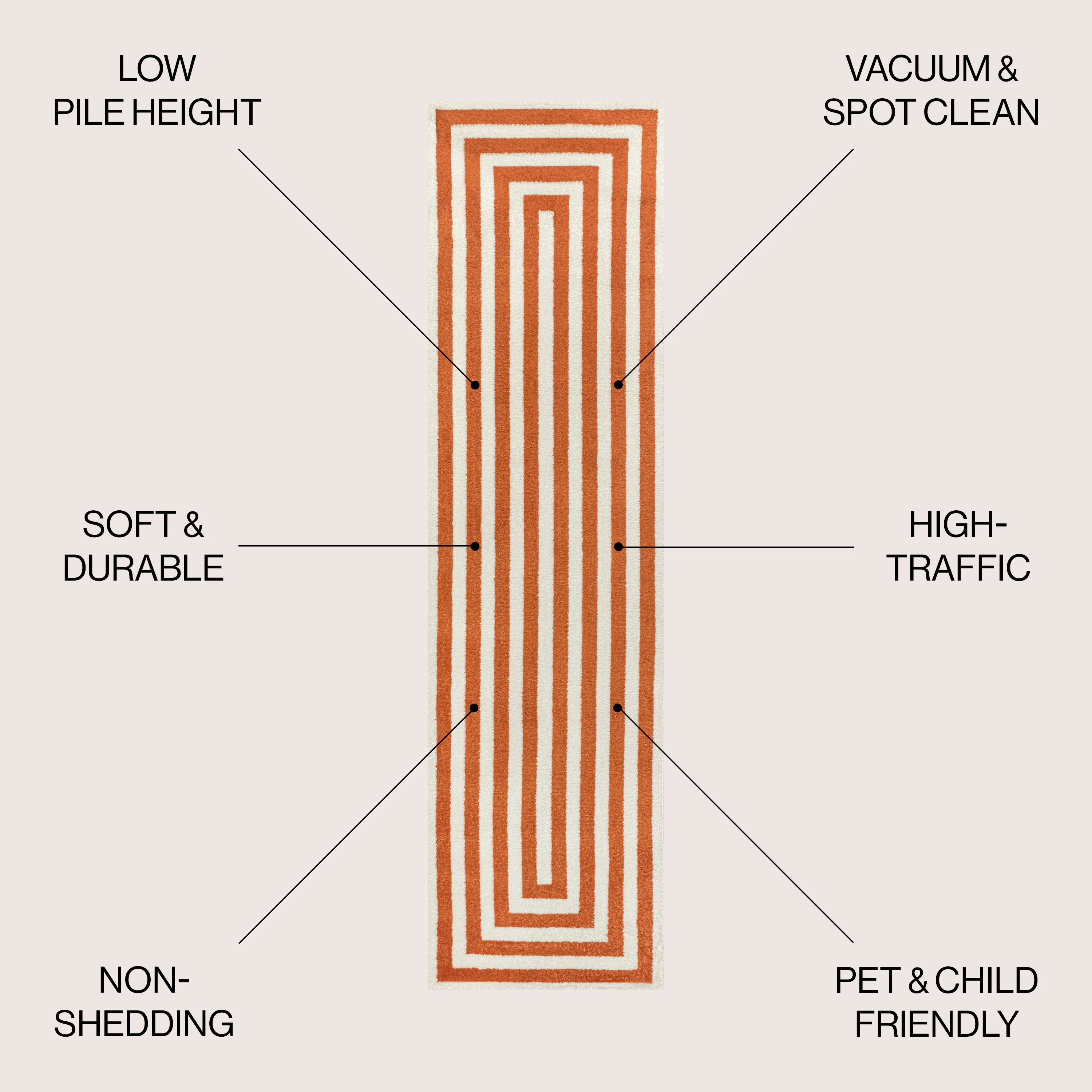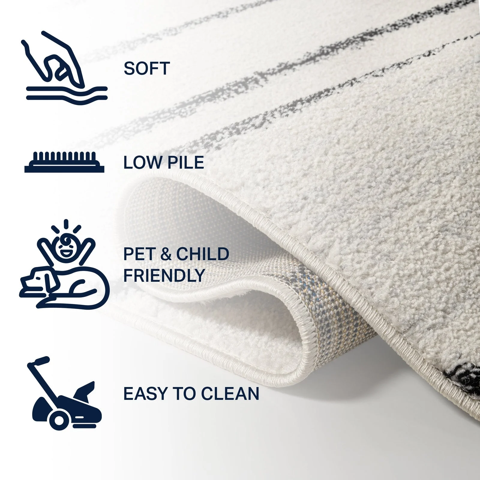 Linja Solid Centre Stripe Machine-Washable Area Rug