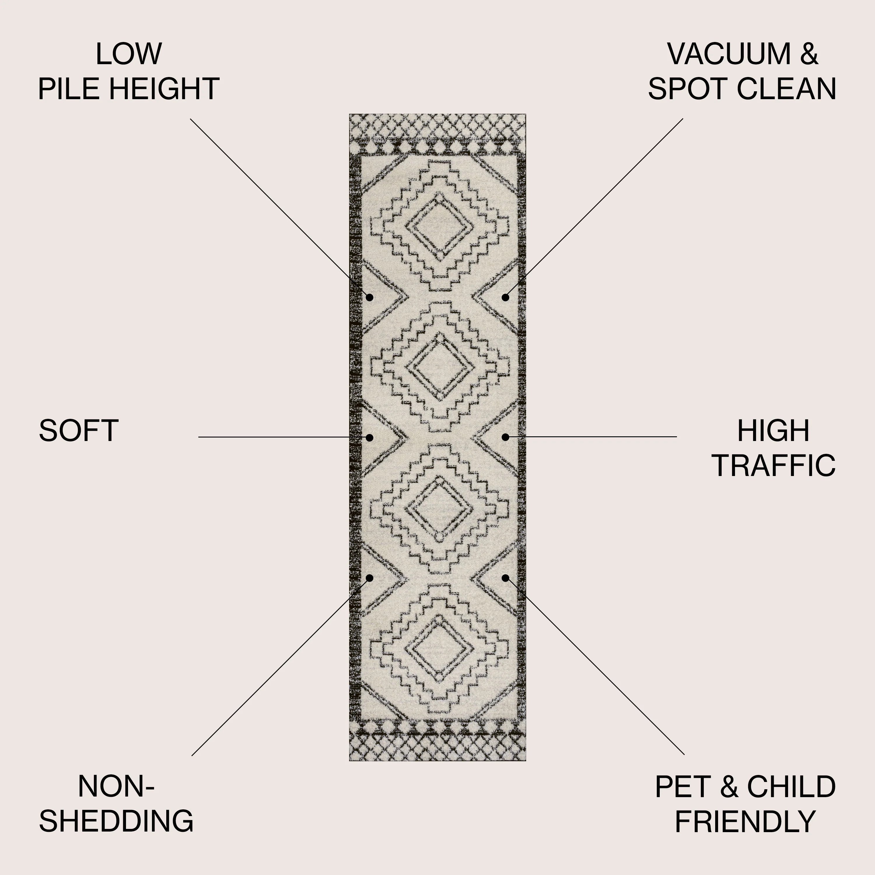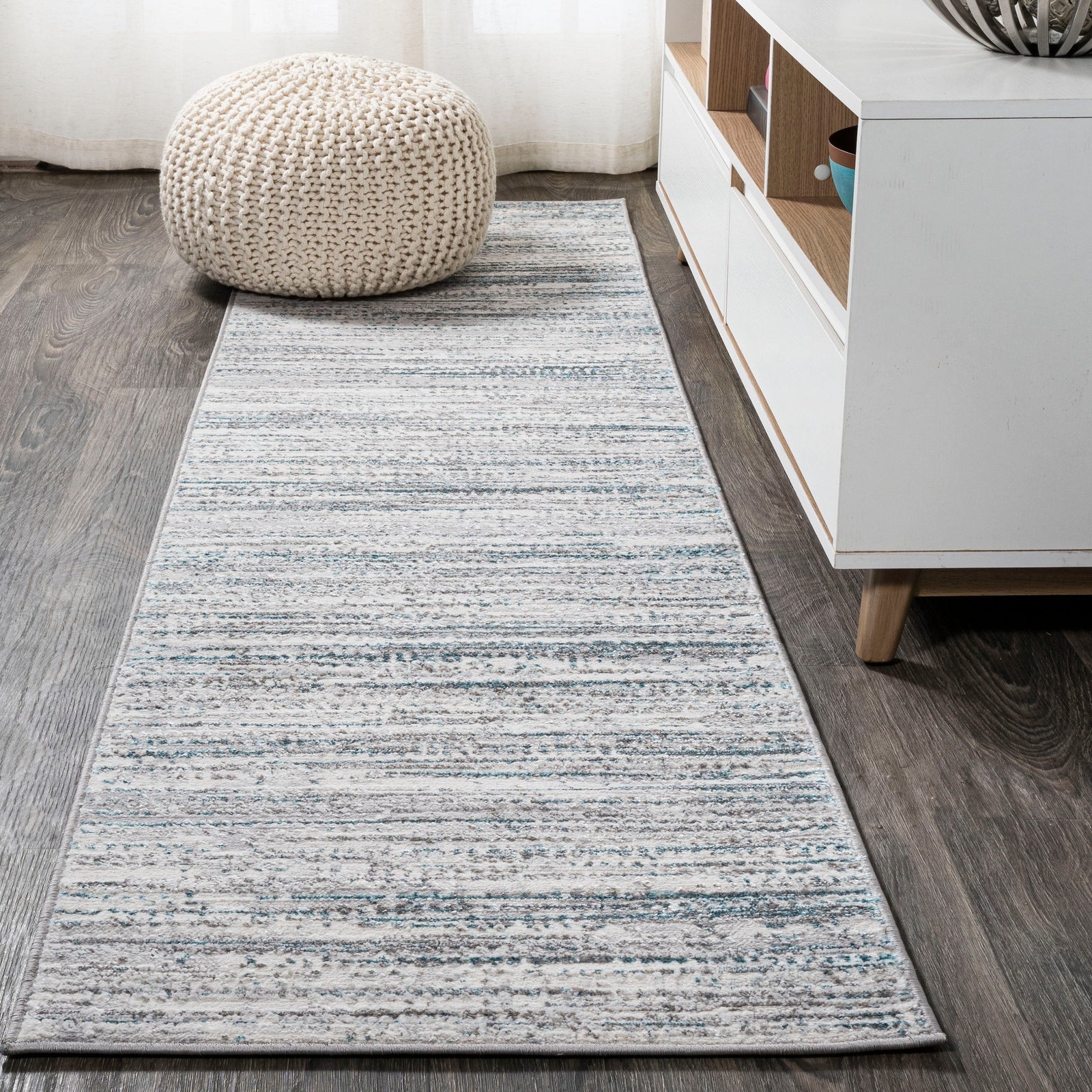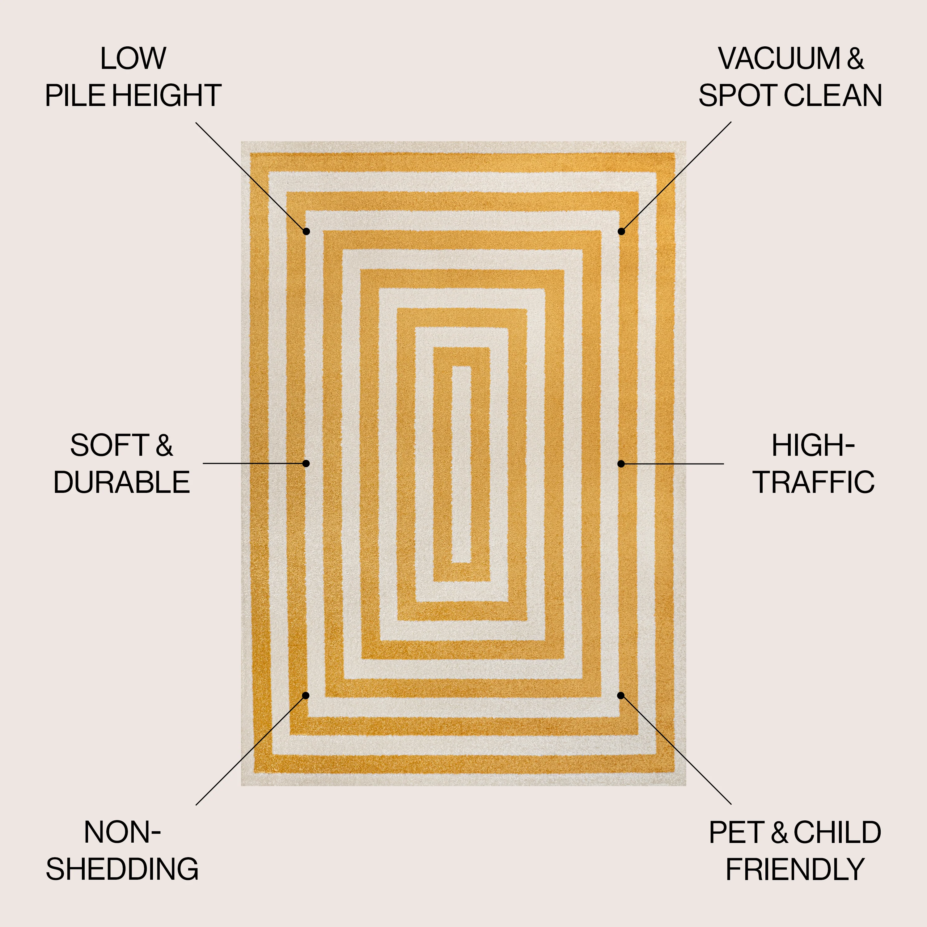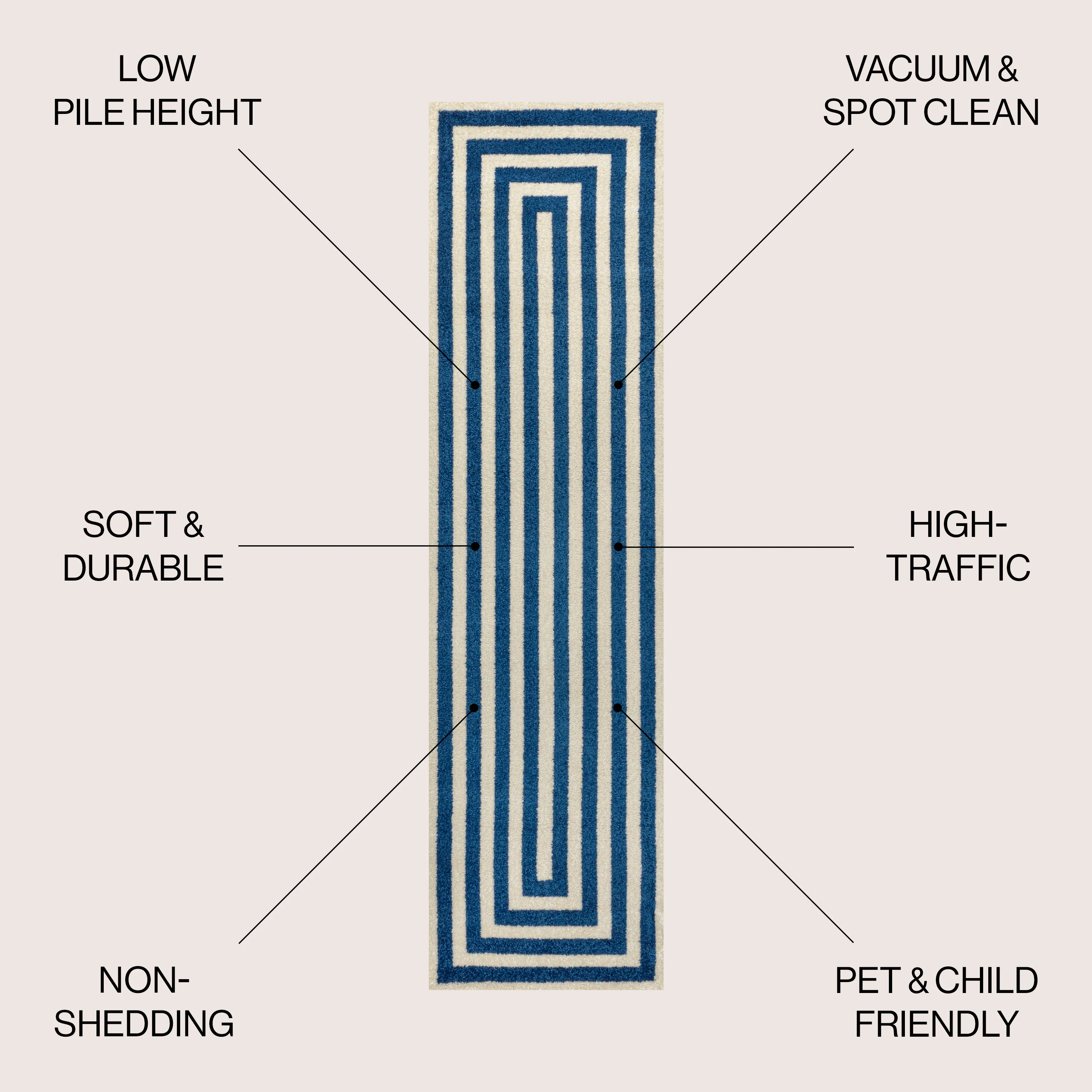 Linja Solid Centre Stripe Machine-Washable Area Rug