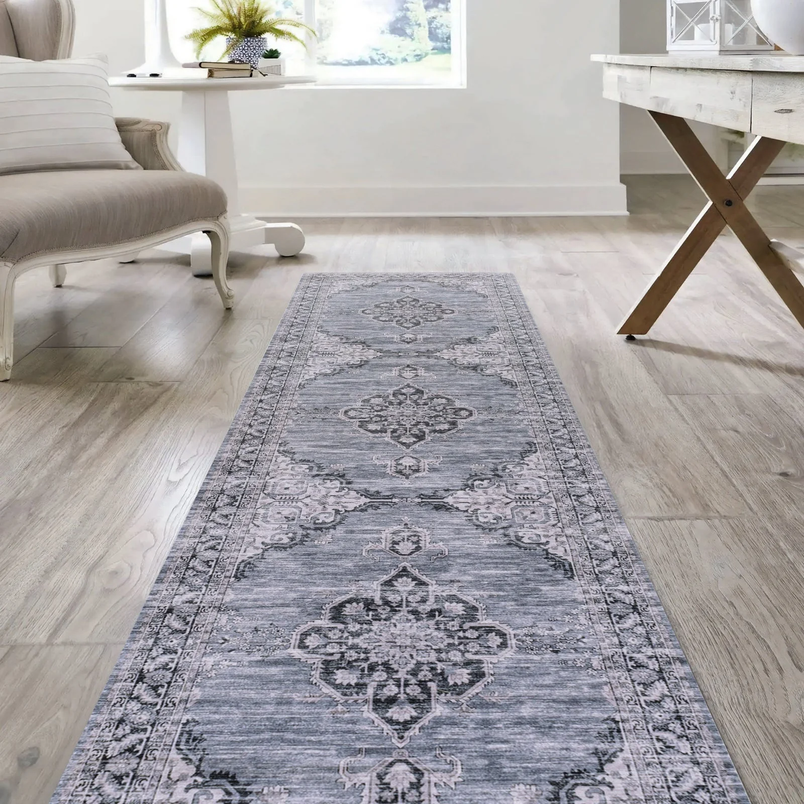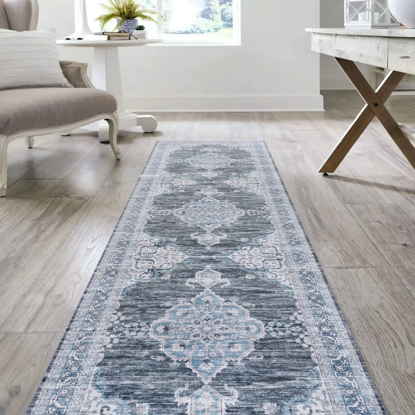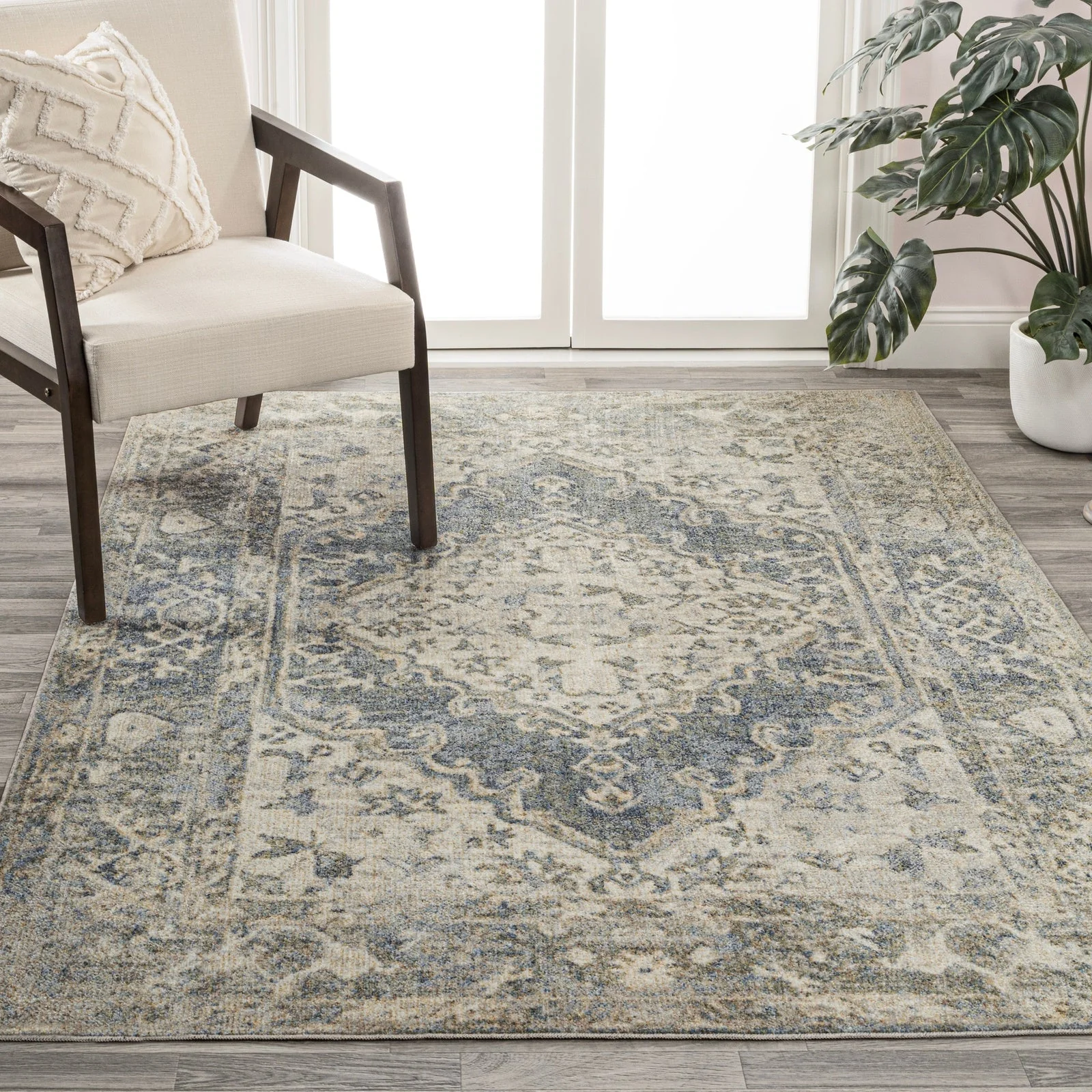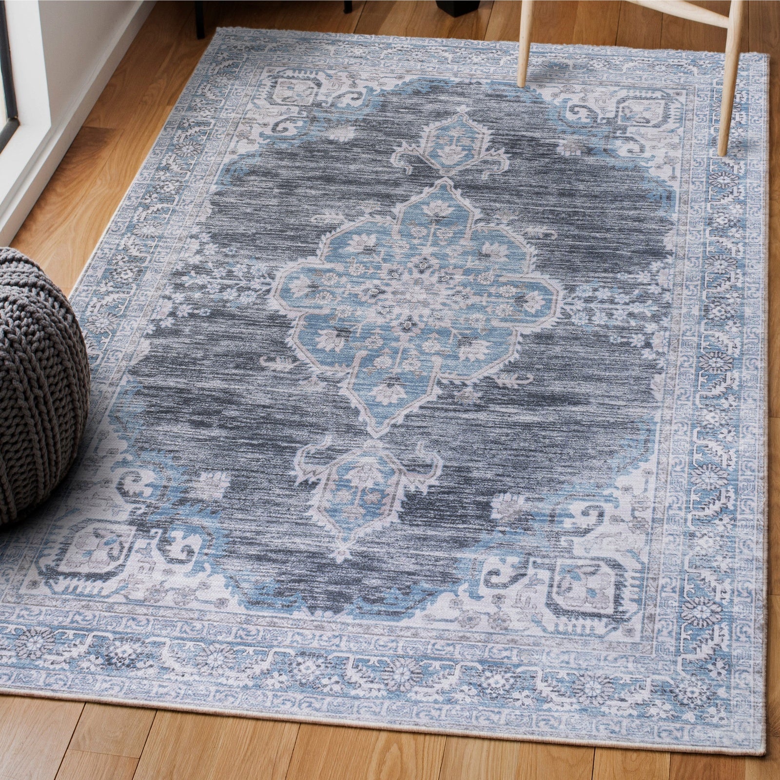 Wincer Chenille Cottage Medallion Machine-Washable Area Rug