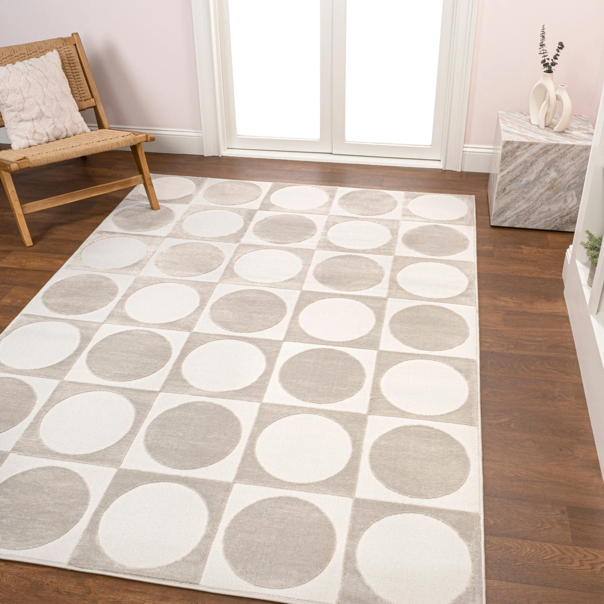 Cirkel Minimalist Geometric Dot Machine-Washable Area Rug