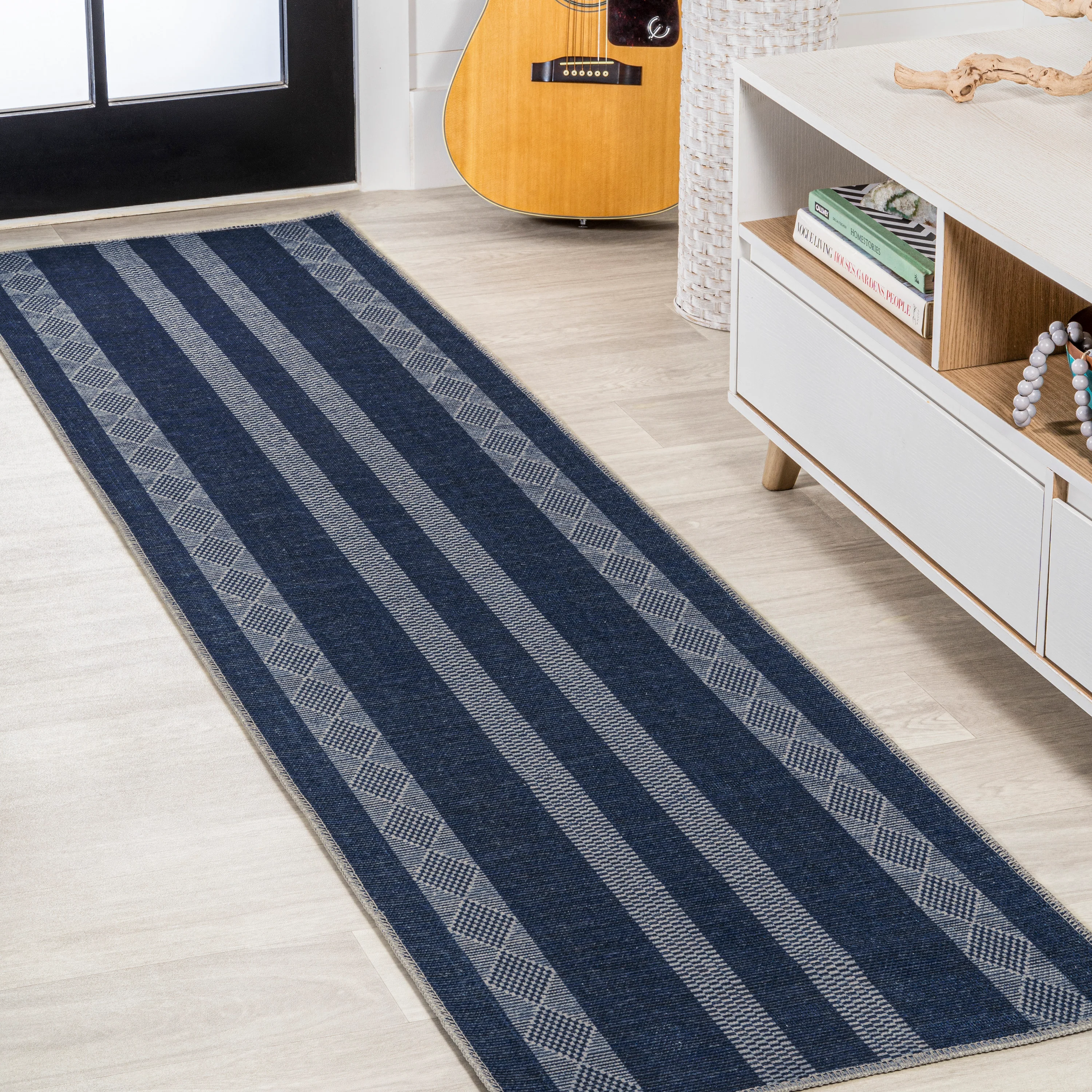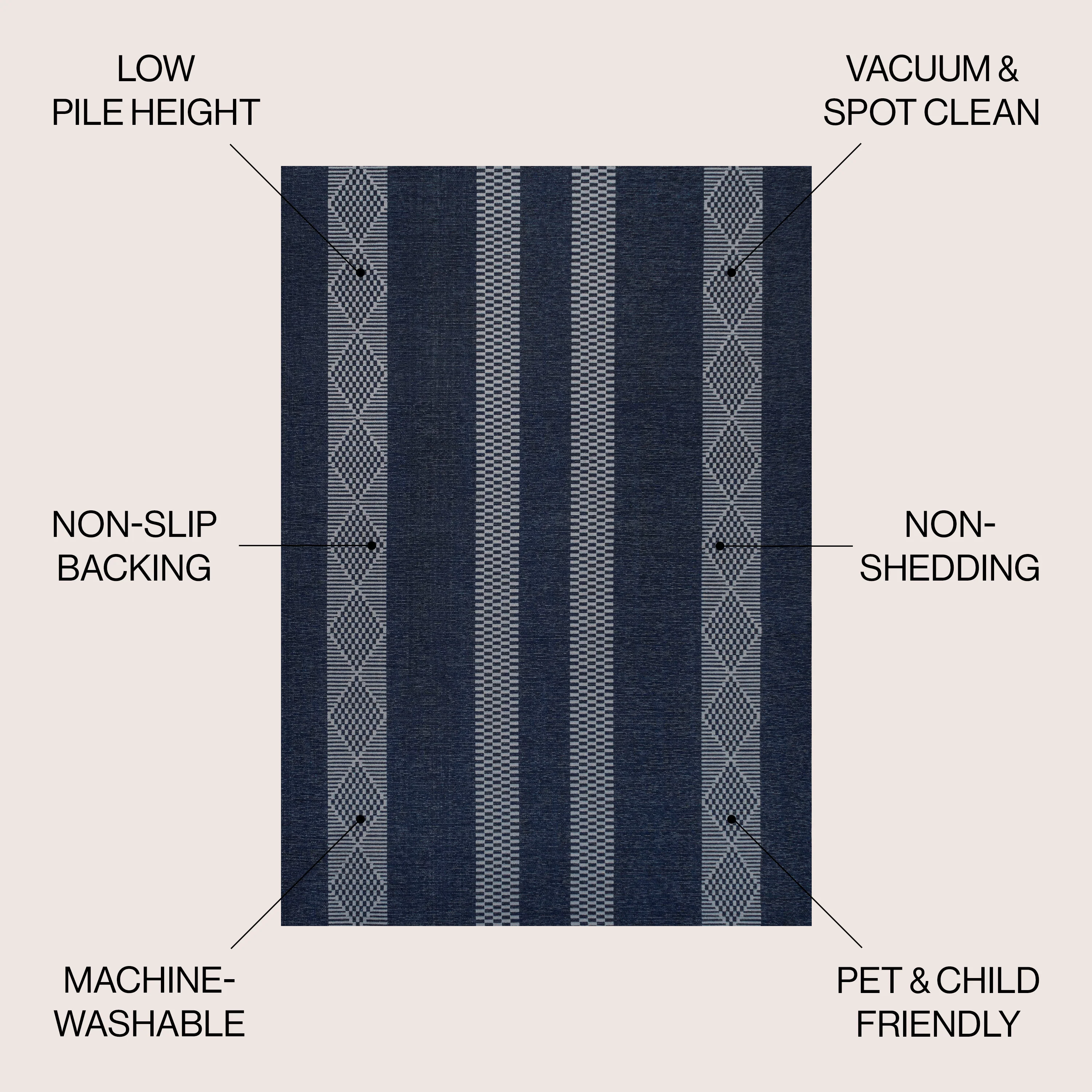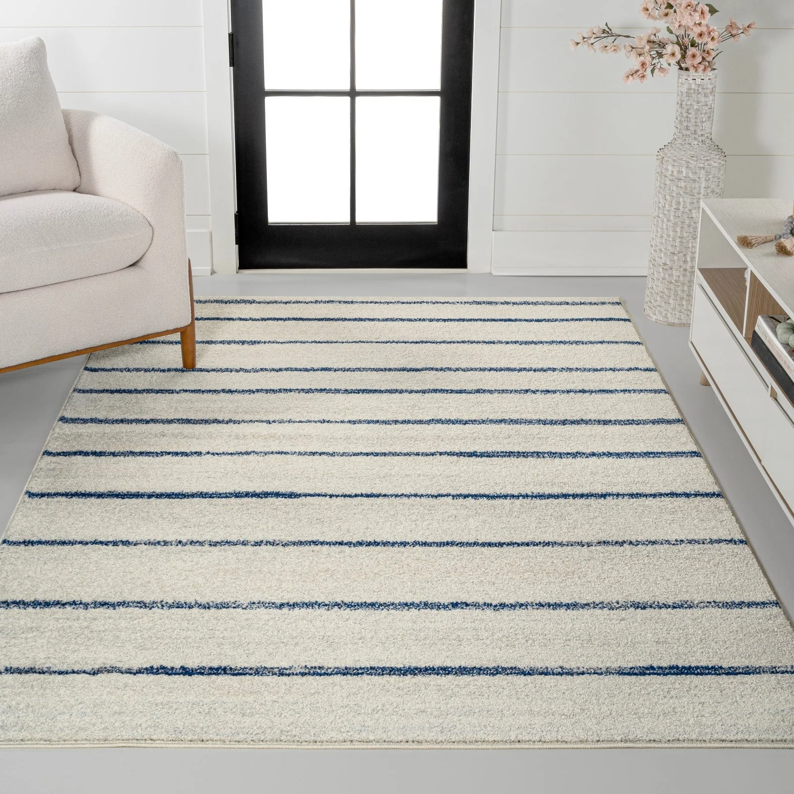 Nautisk Trellis Stripe Machine-Washable Area Rug