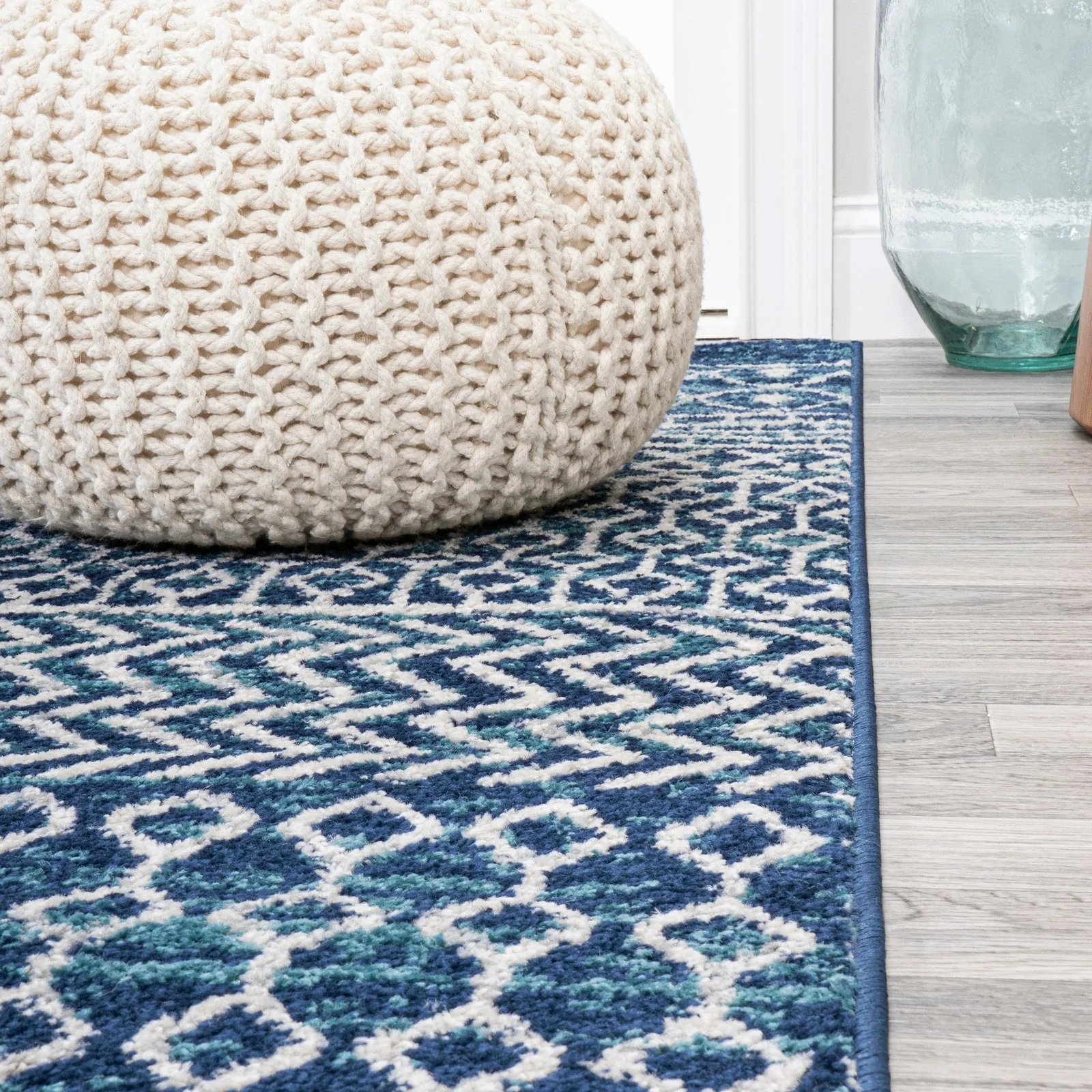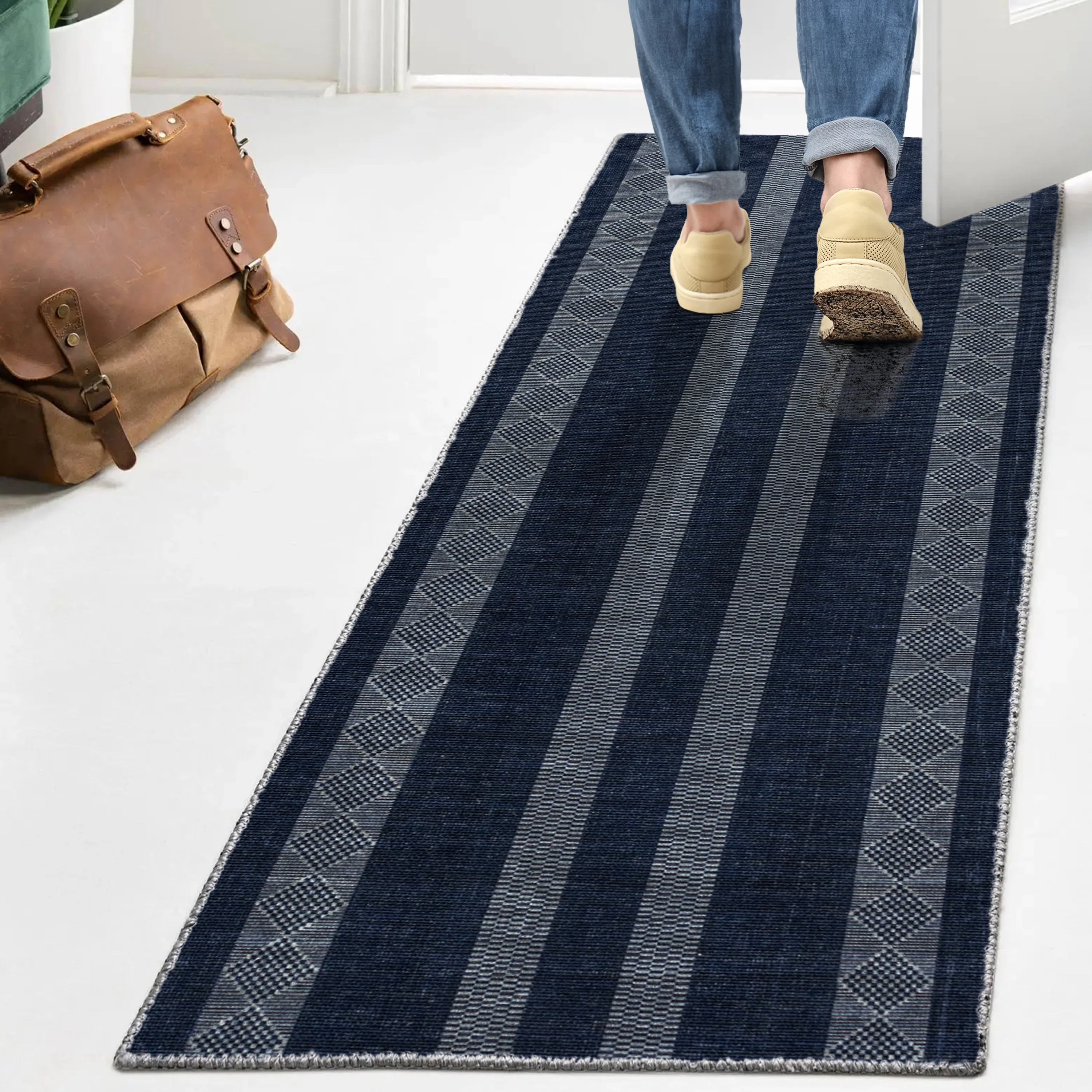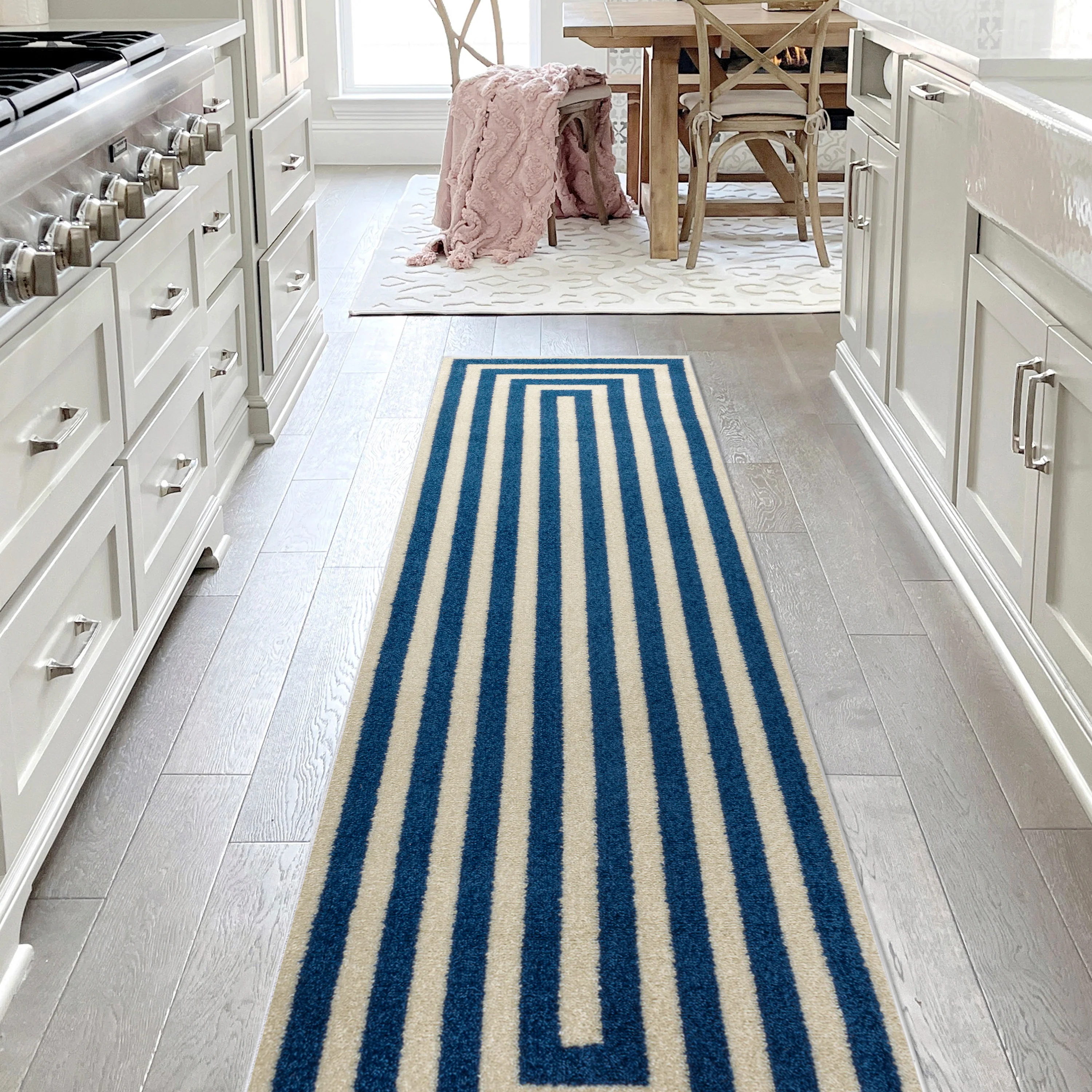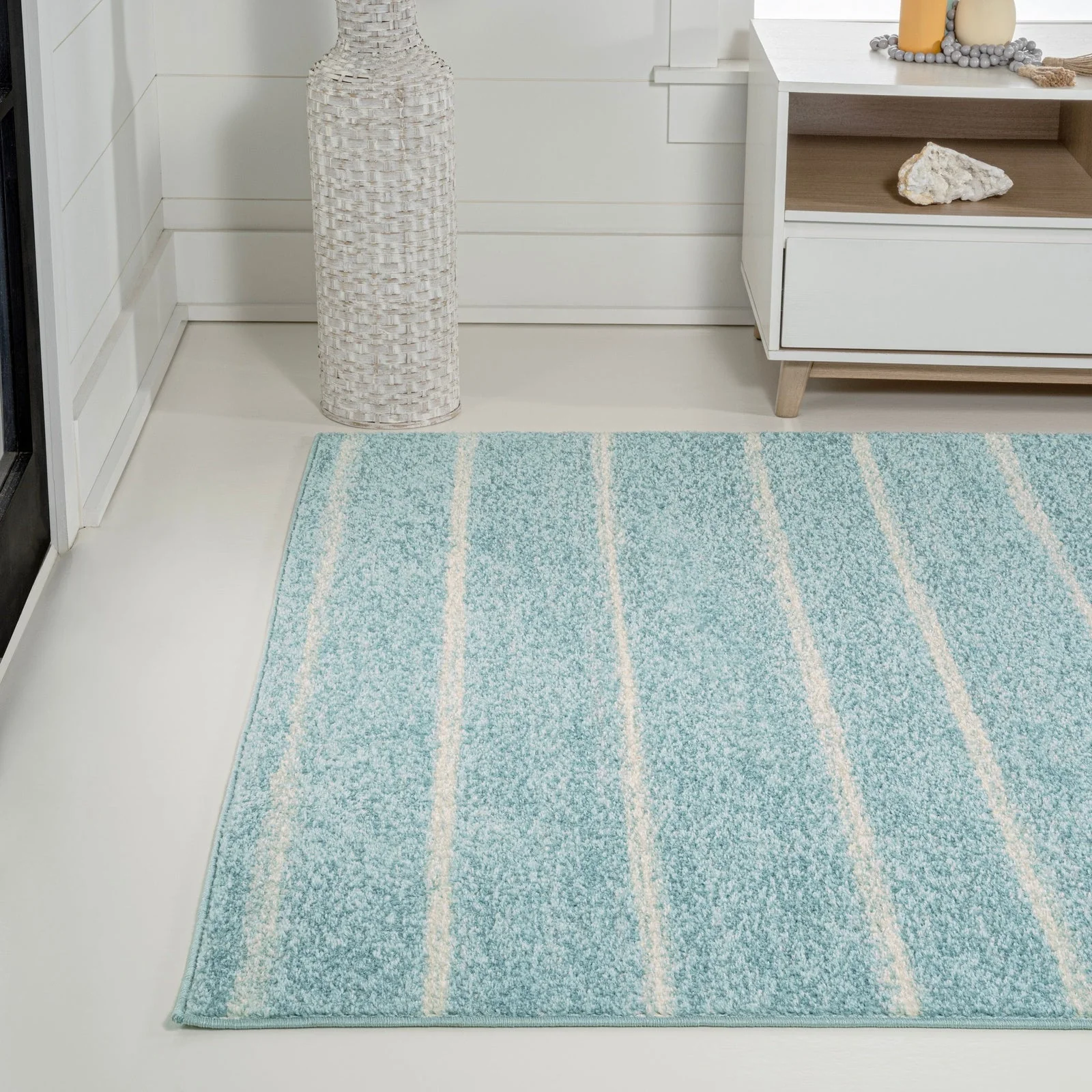 Nautisk Trellis Stripe Machine-Washable Area Rug