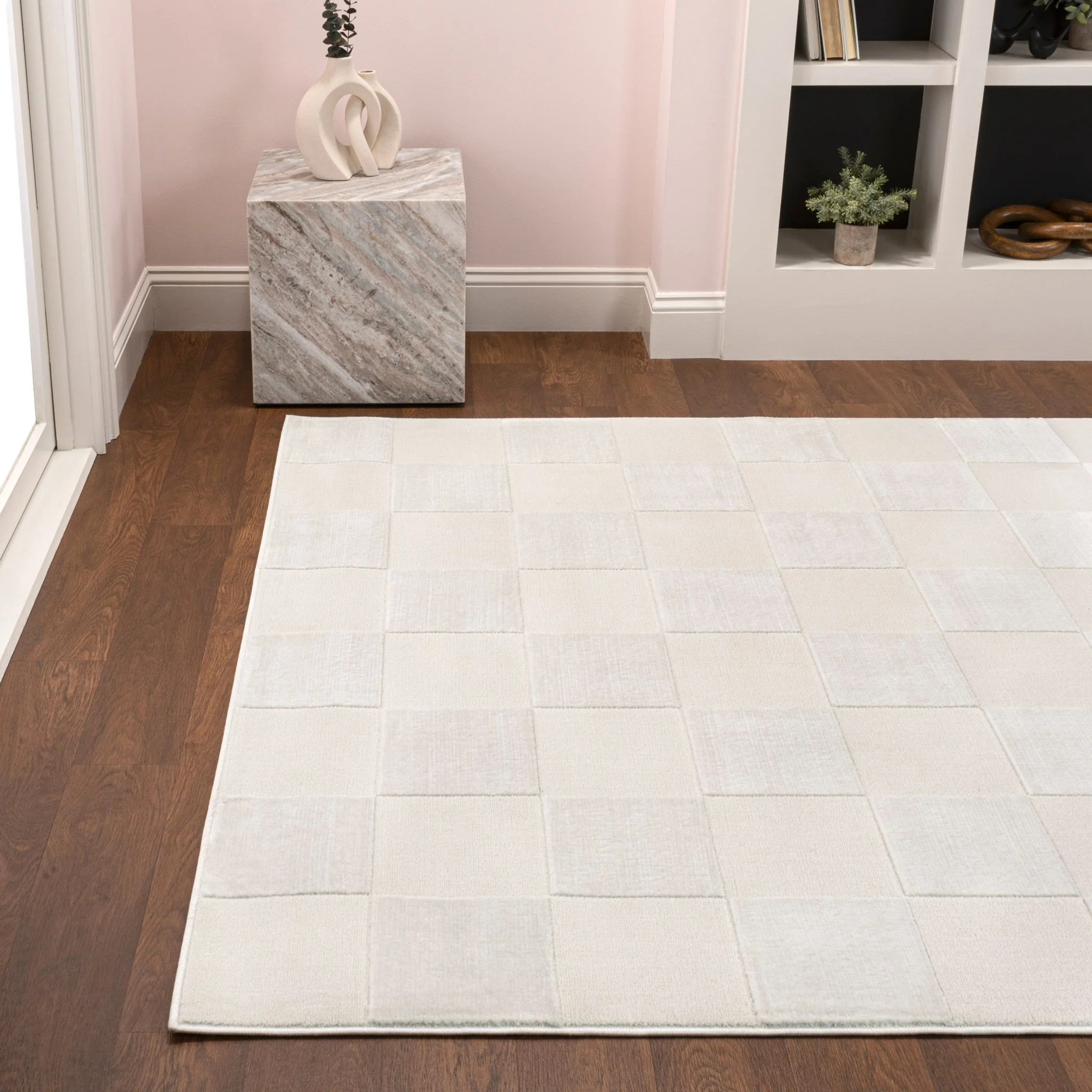Thea Modern Geometric Checkerboard High-Low Area Rug