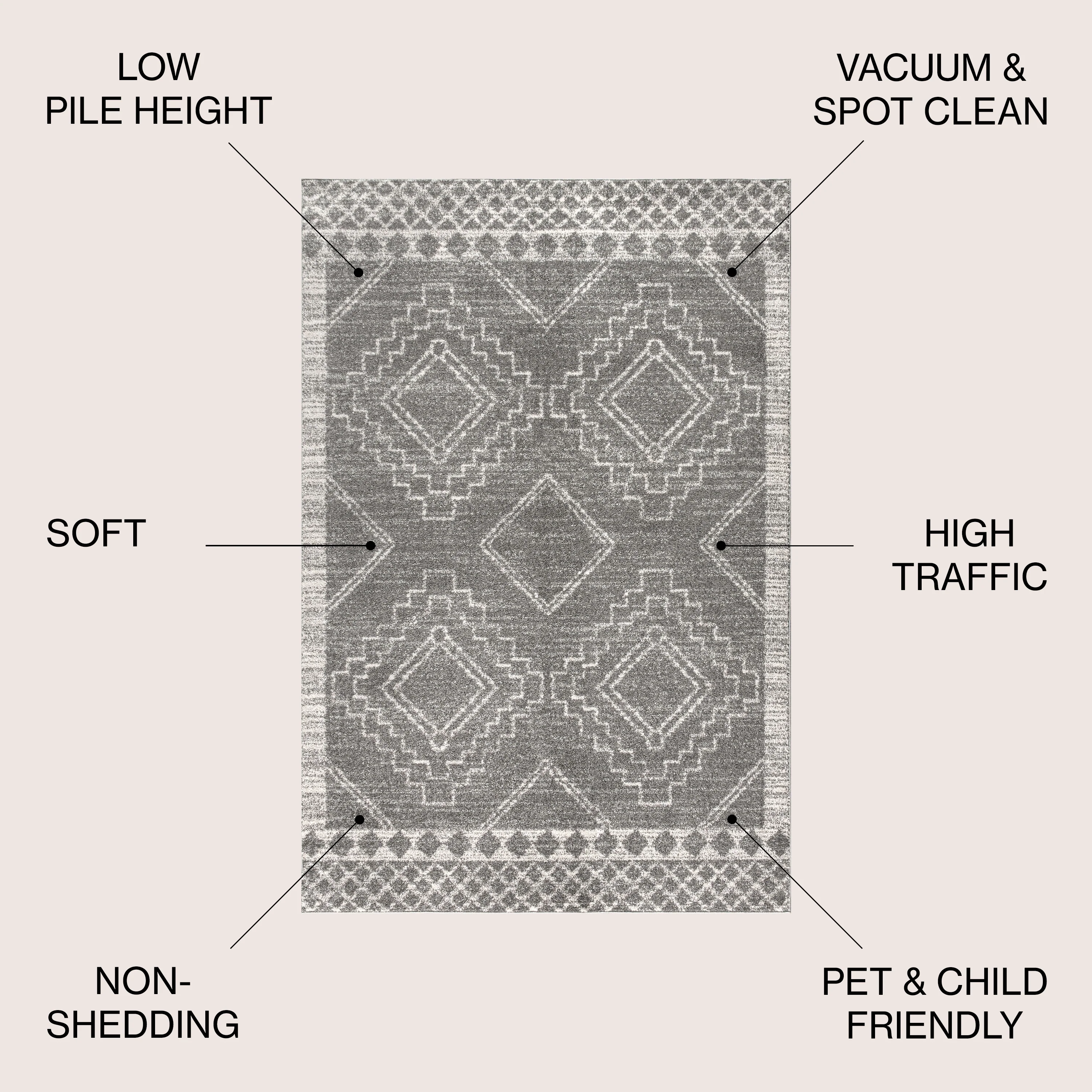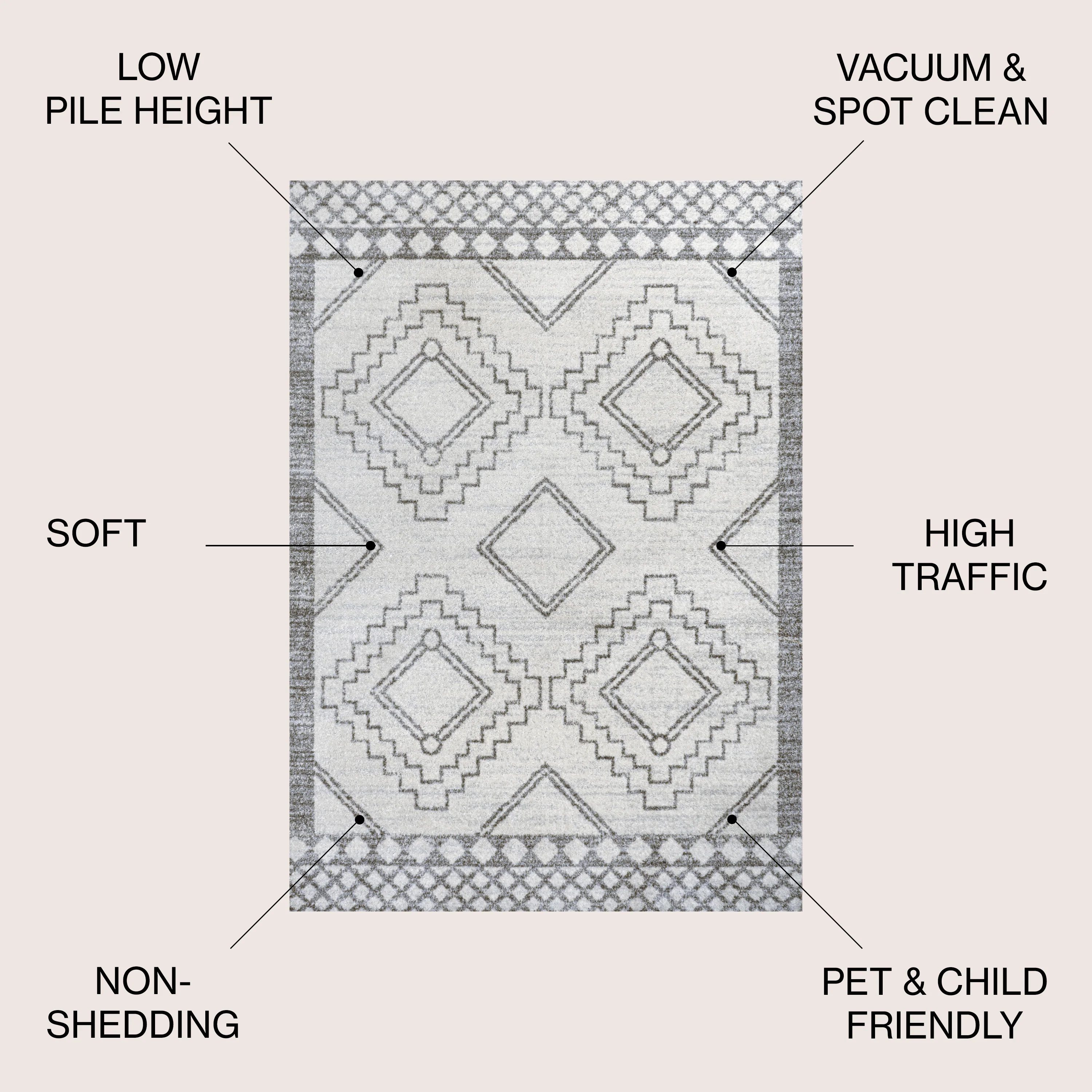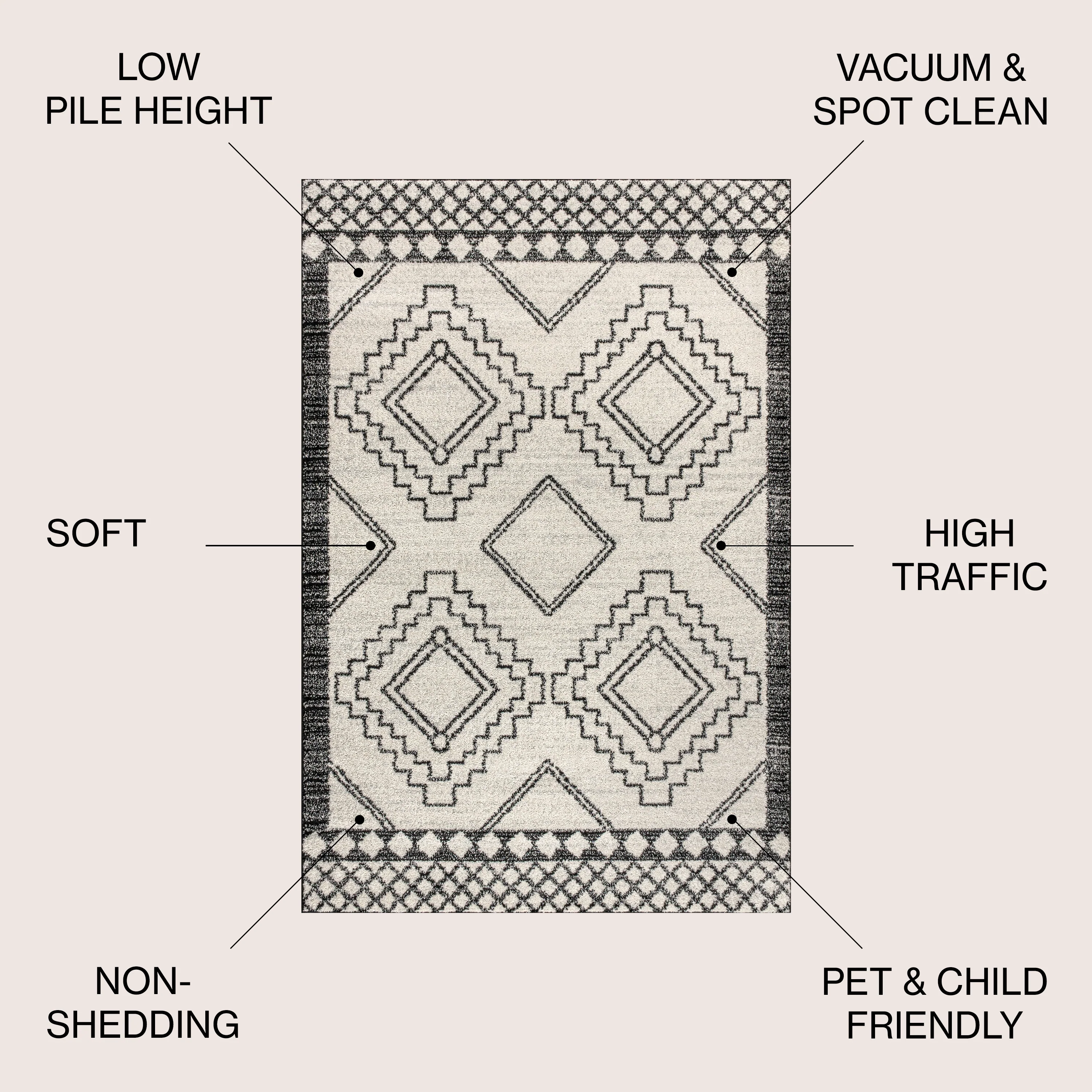 Area Rug with Sprayed Latex Reverse and Tiled Border