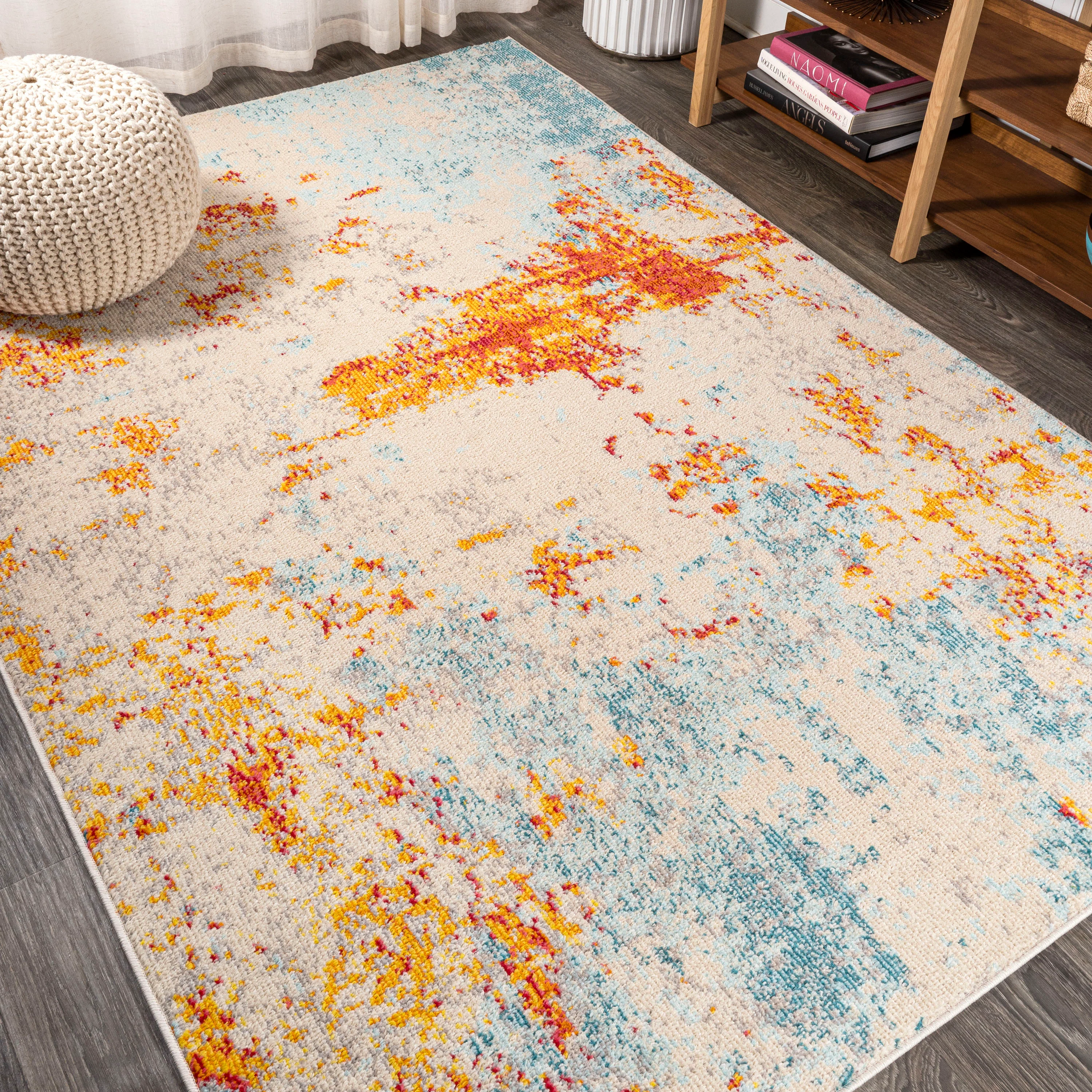 Weaver Abstract Coastal Watercolor Machine-Washable Area Rug