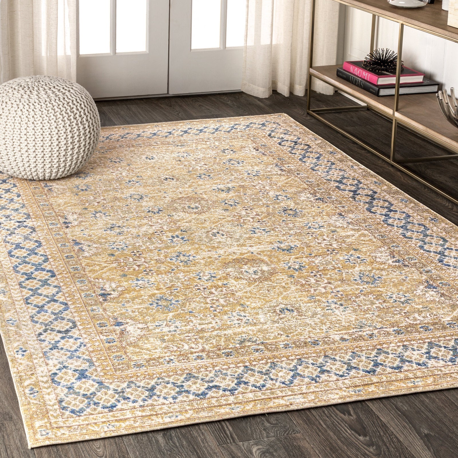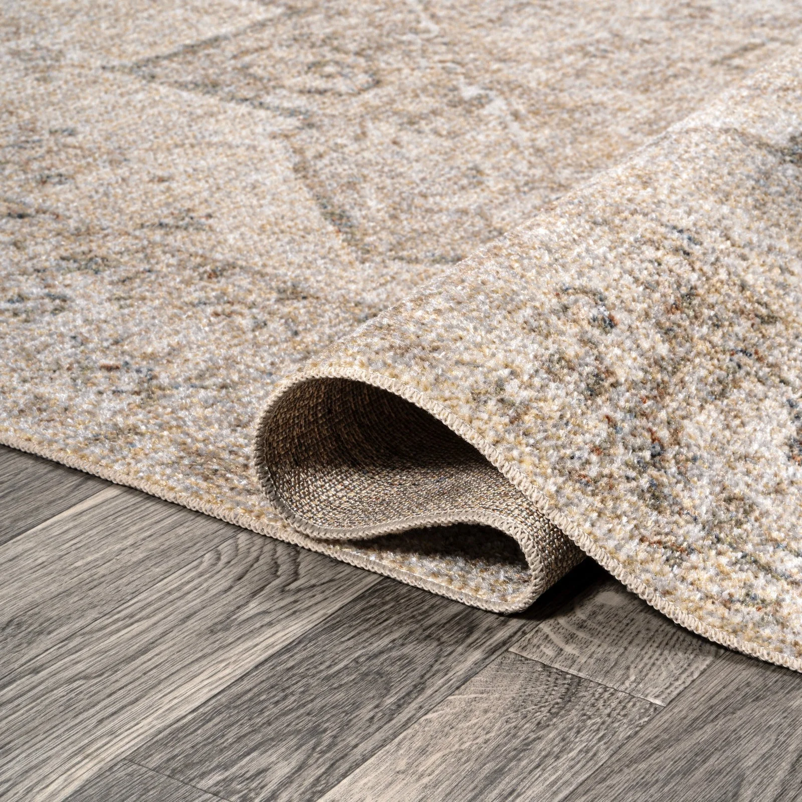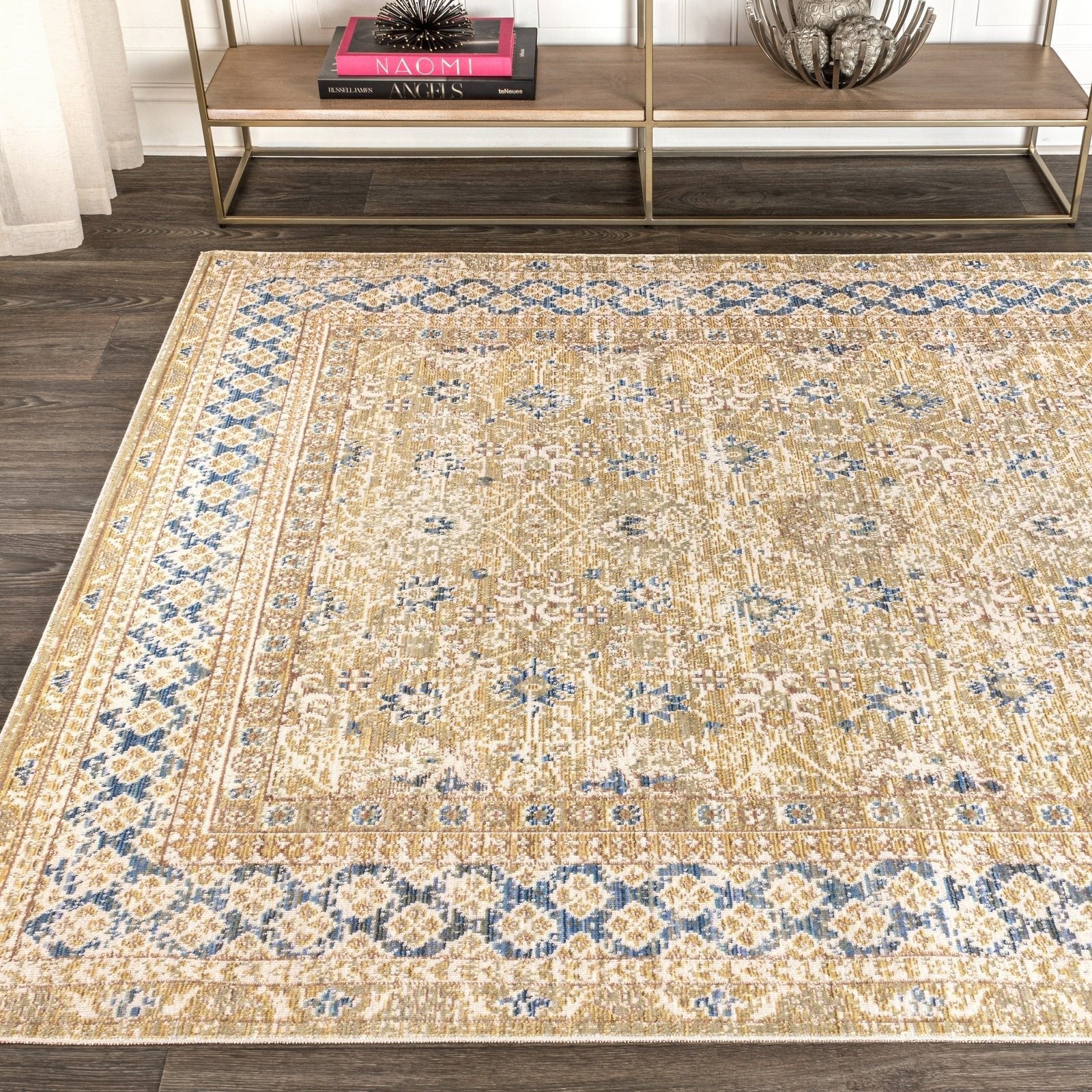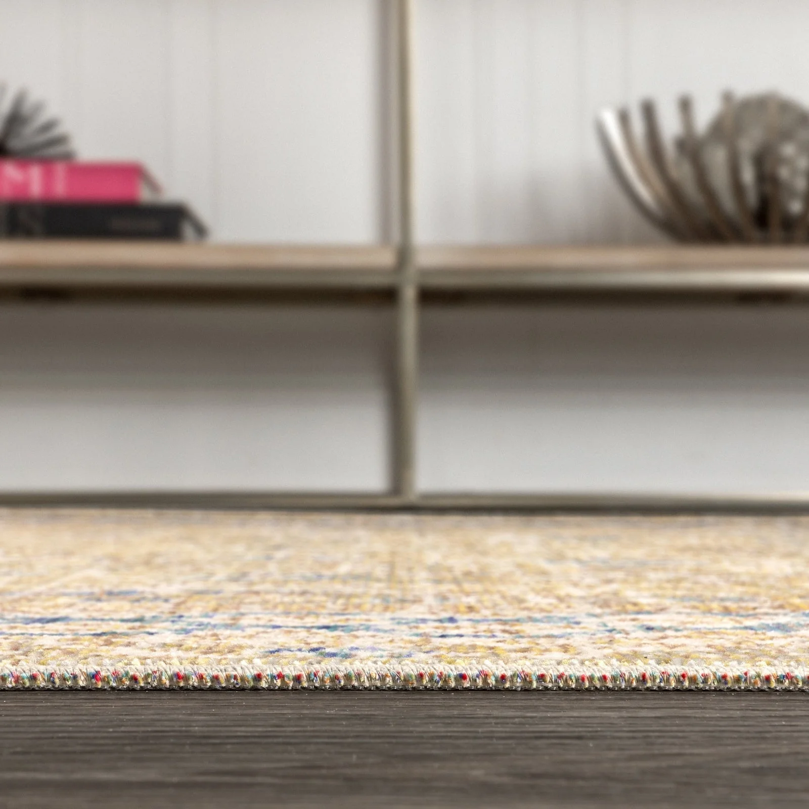 Brandy Rustic Border Low-Pile Machine-Washable Area Rug