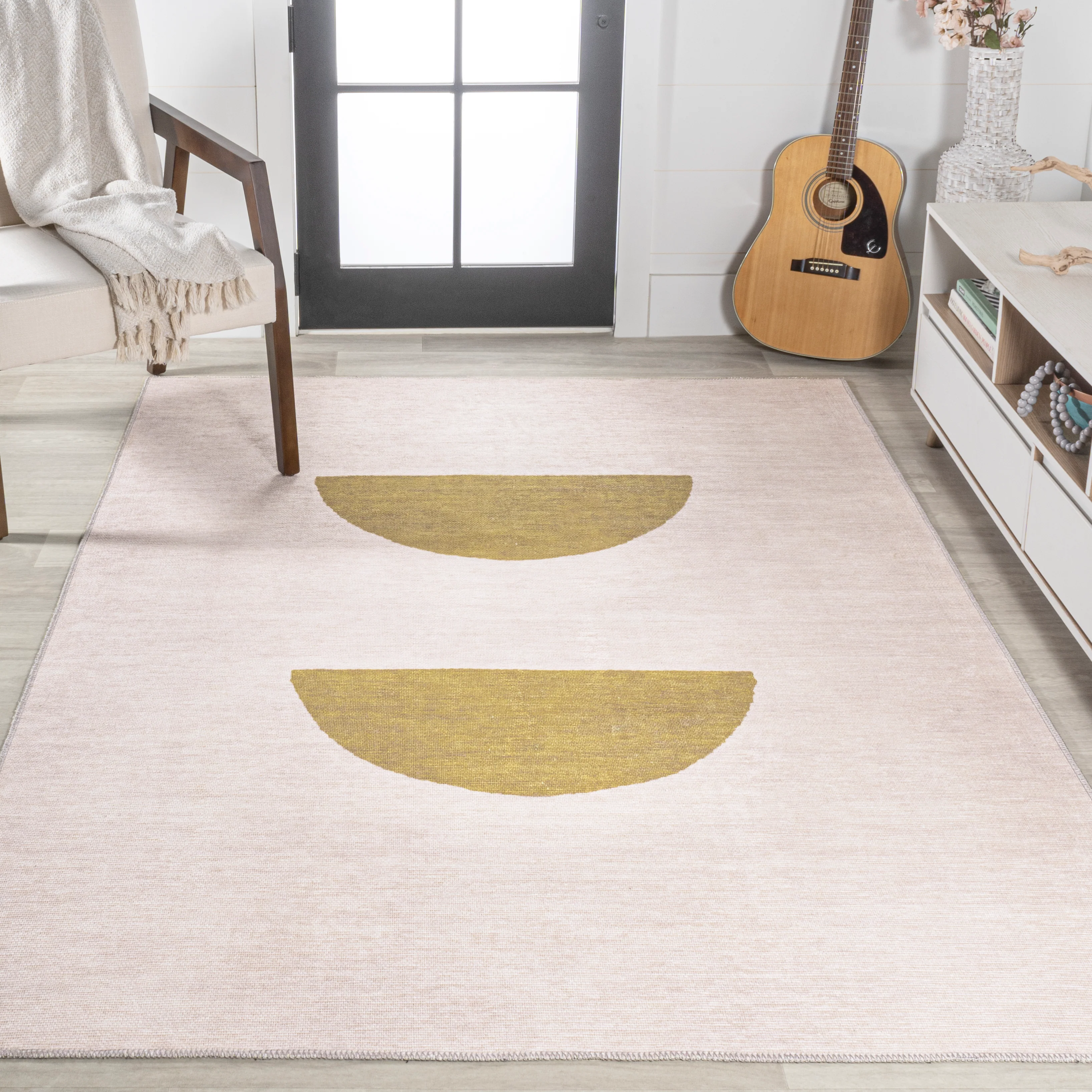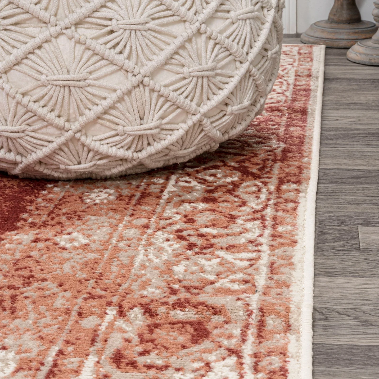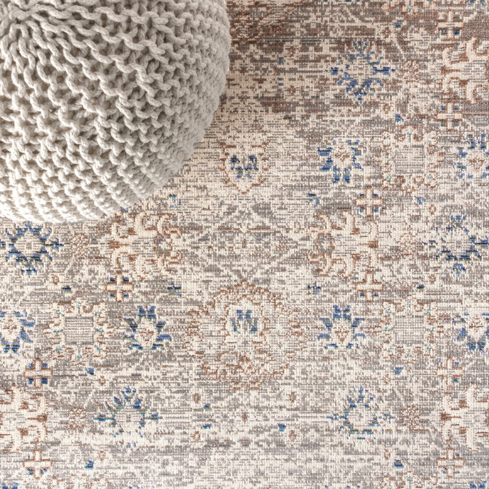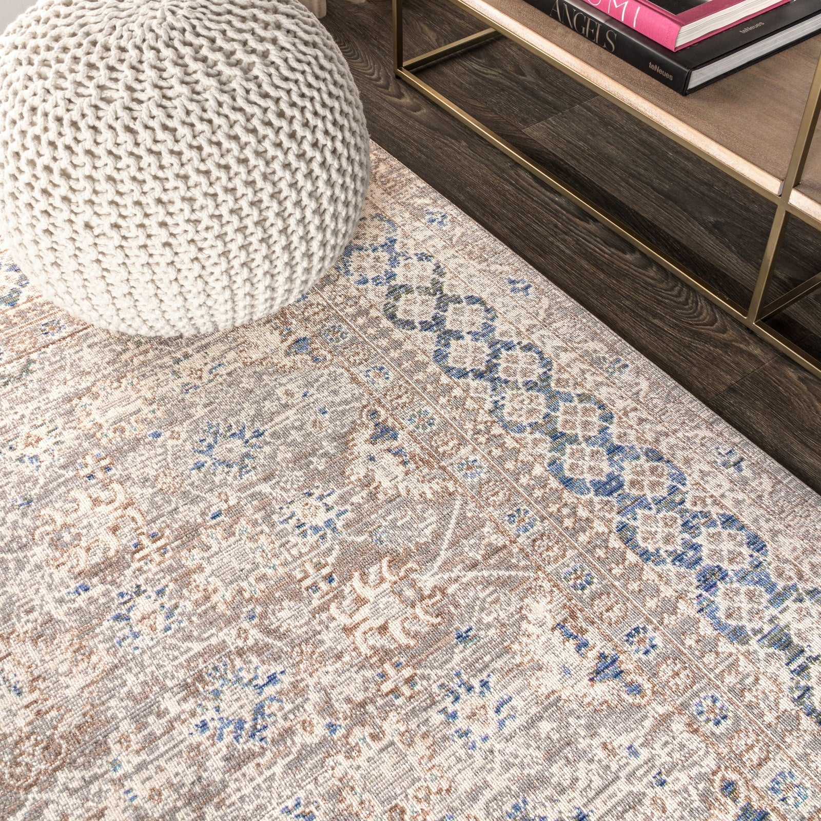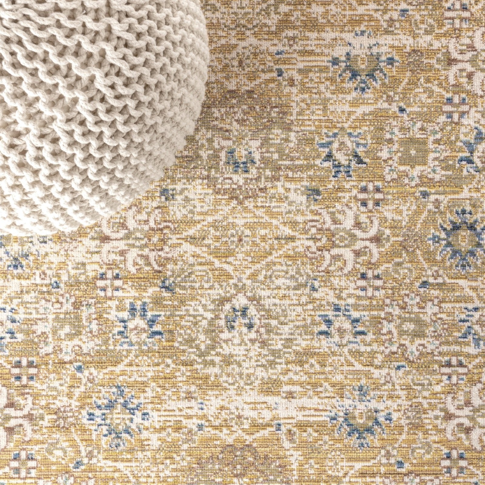 Brandy Rustic Border Low-Pile Machine-Washable Area Rug