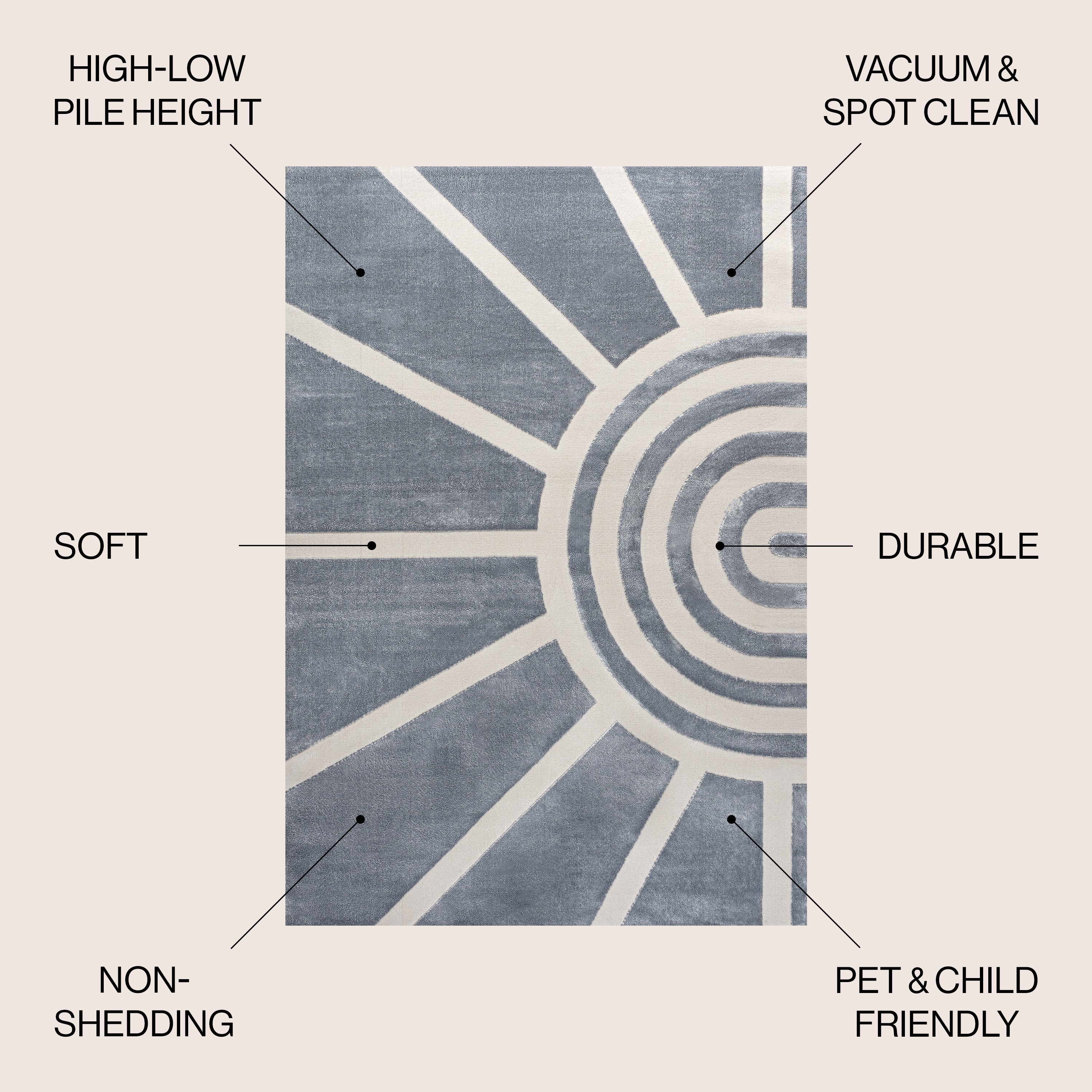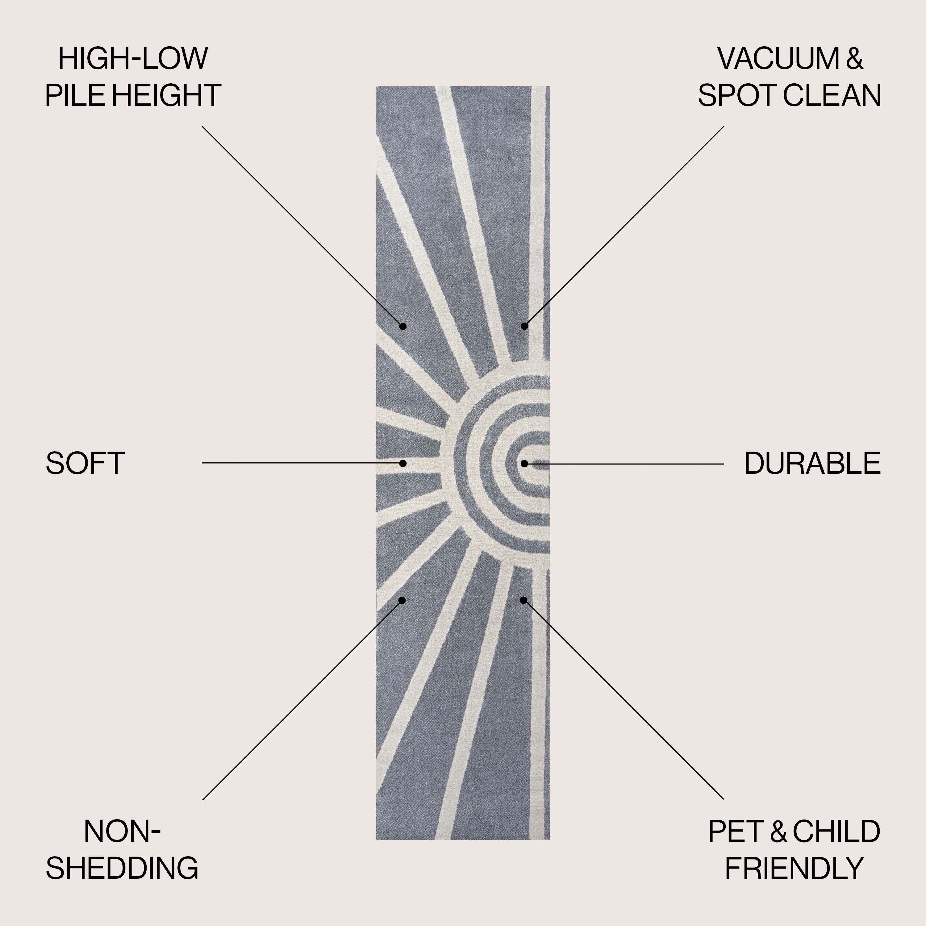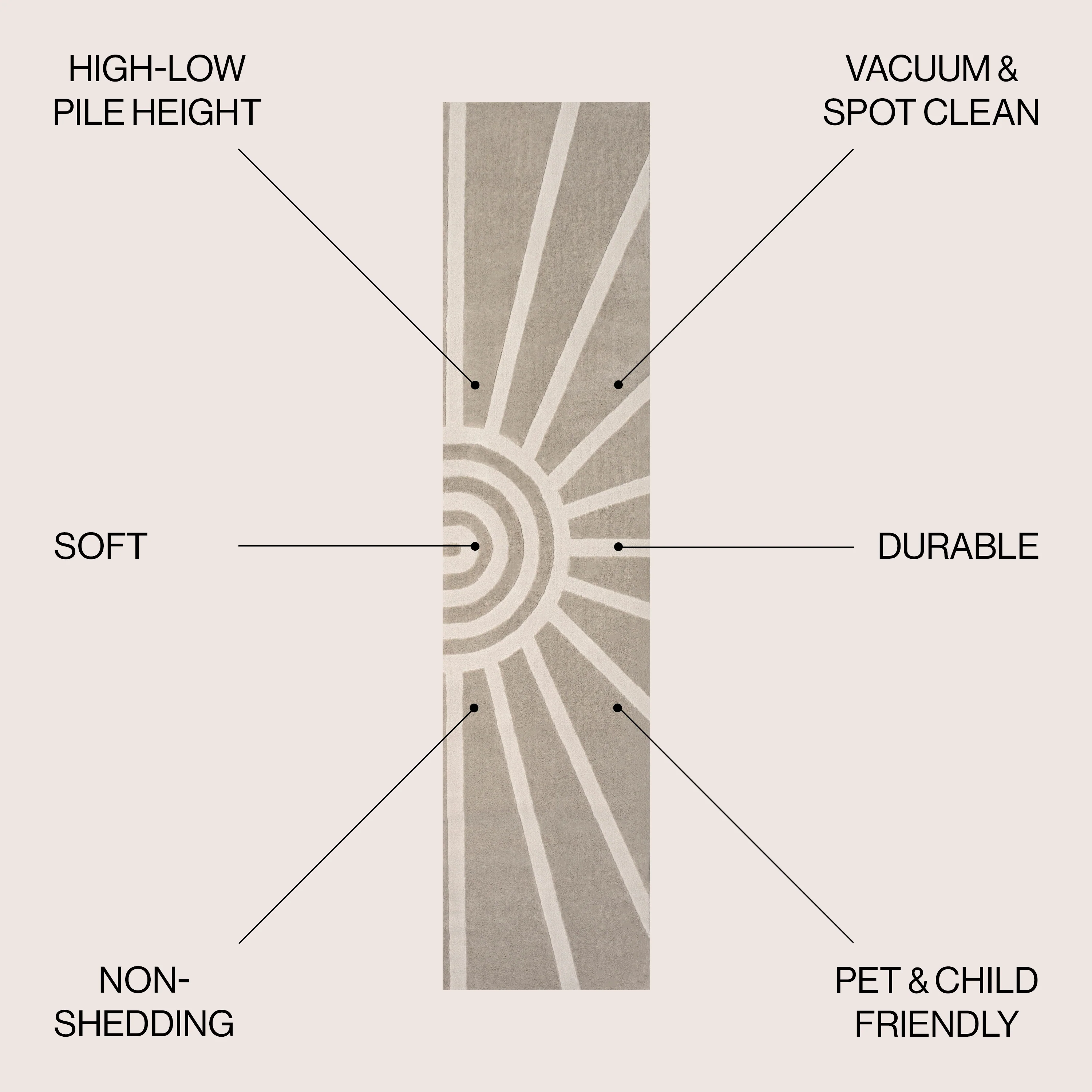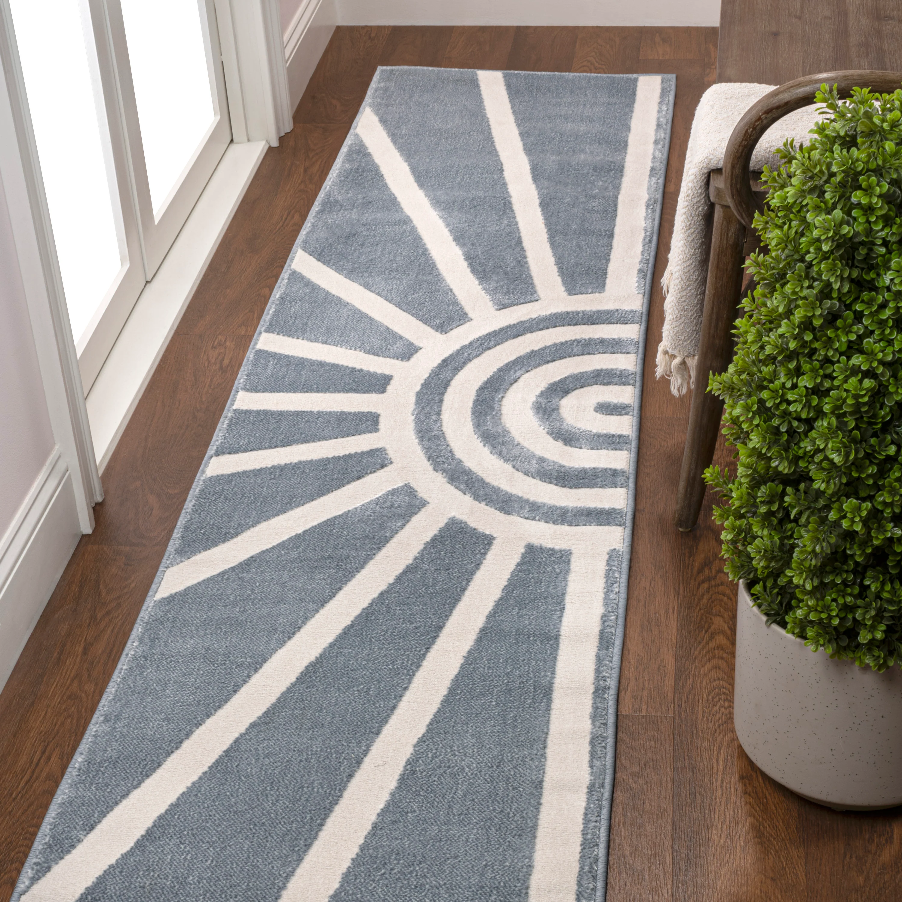 Aelius MidCentury Scandinavian Abstract Sun Two-Tone High-Low Runner Rug