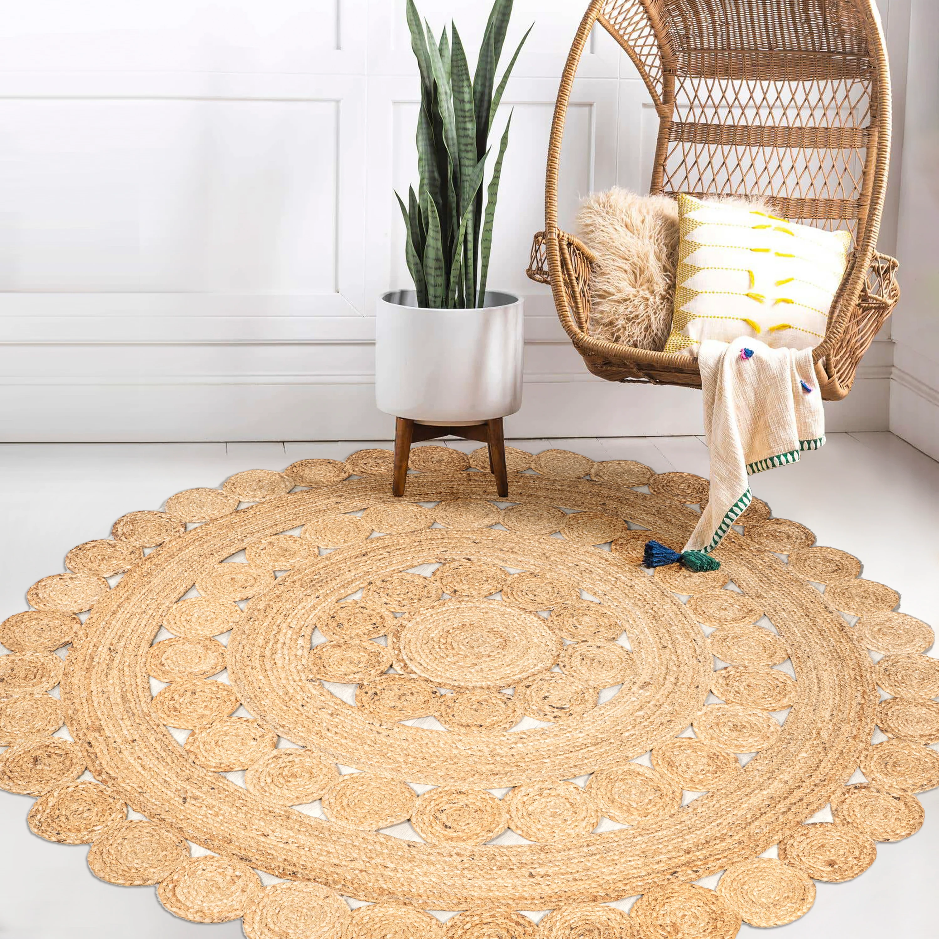 Daisy Hippy Jute Medallion Circle Round Area Rug
