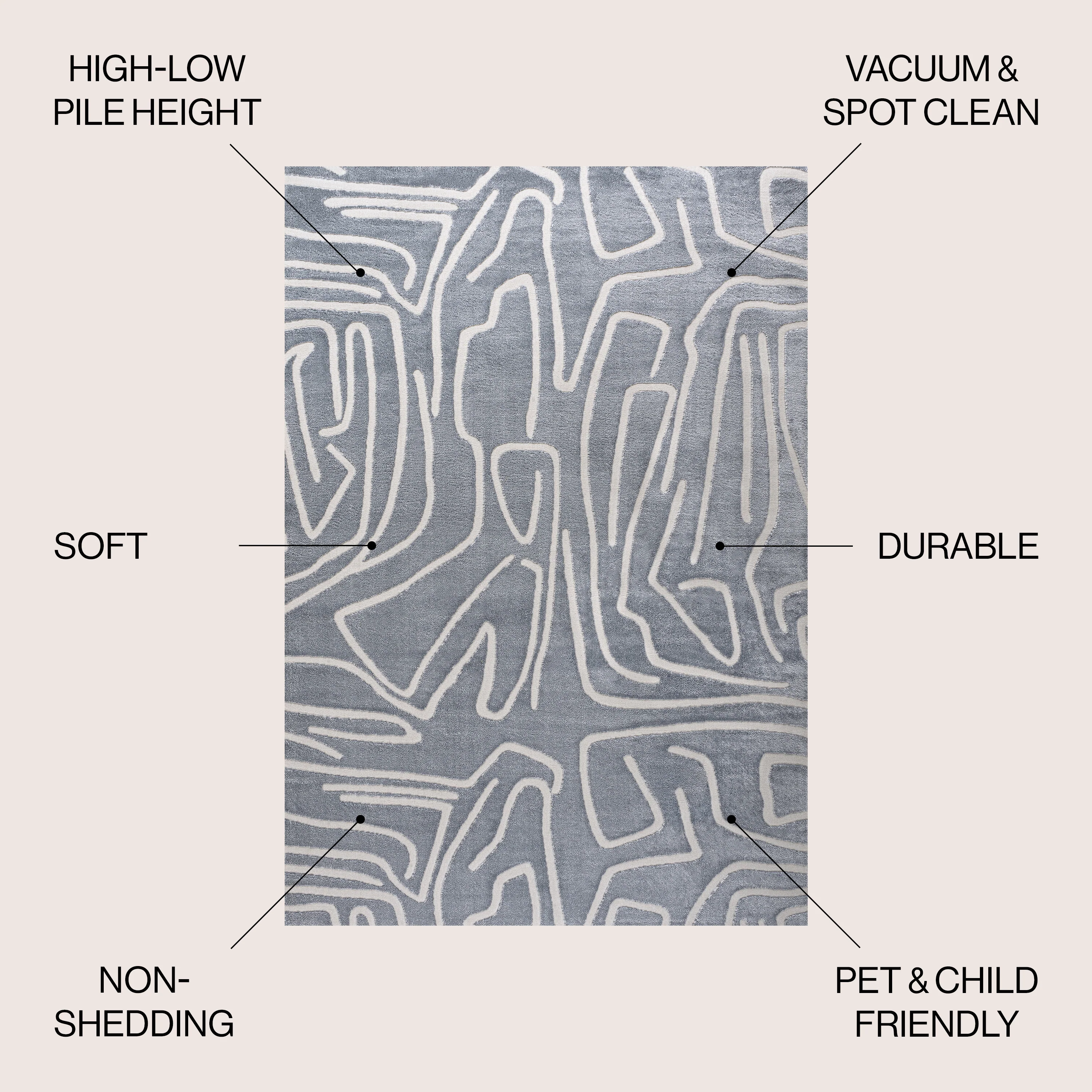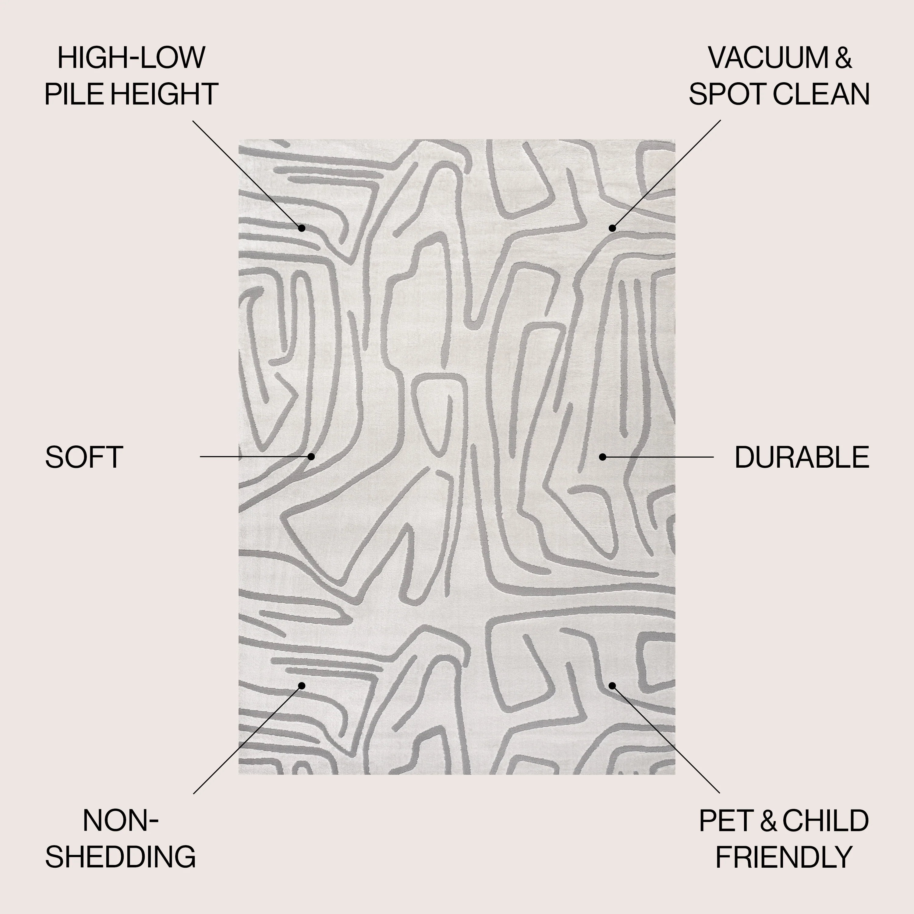 Alcina Modern Scandinavian Graphic Lines High-Low Area Rug