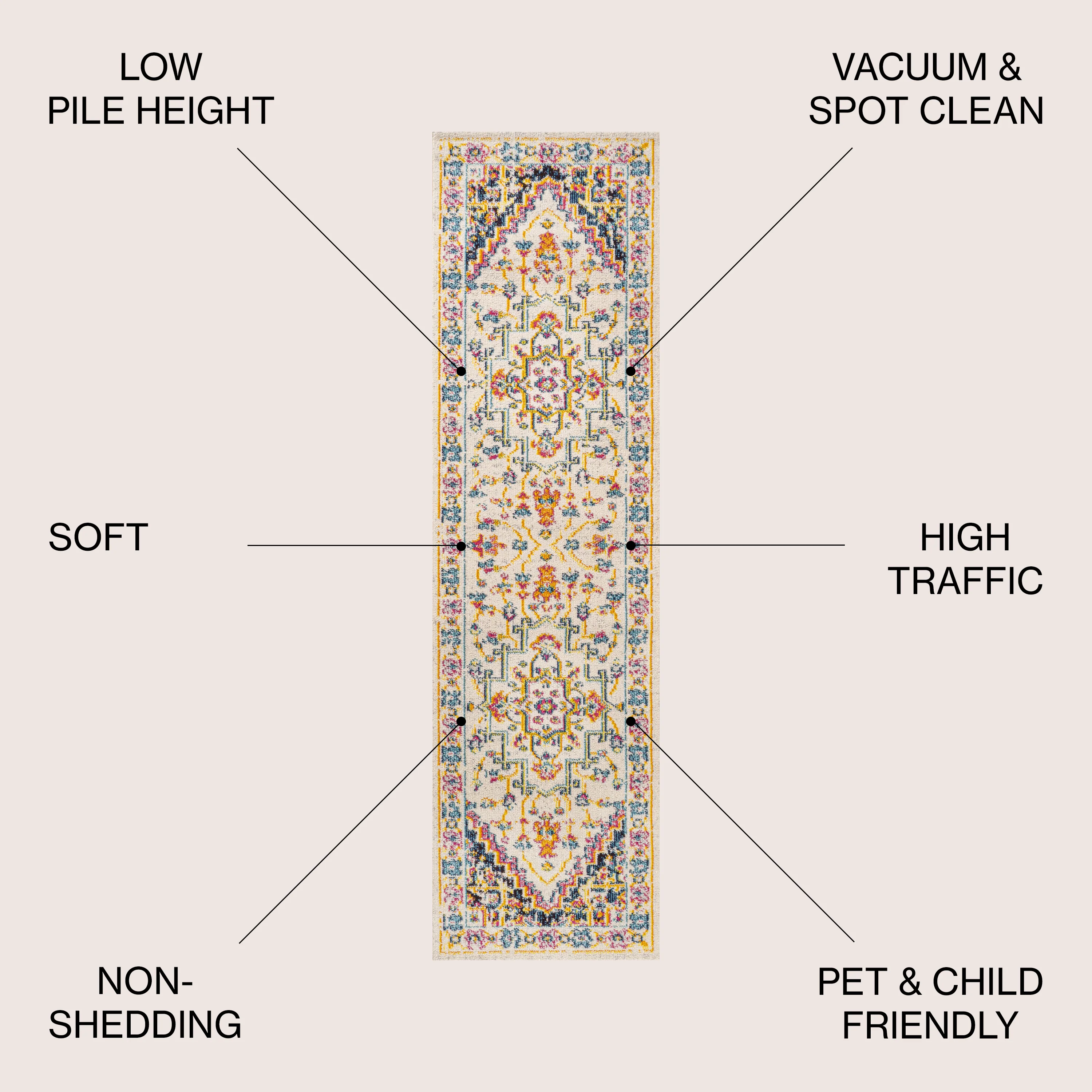 Hiero Persian Border Low-Pile Machine-Washable Area Rug