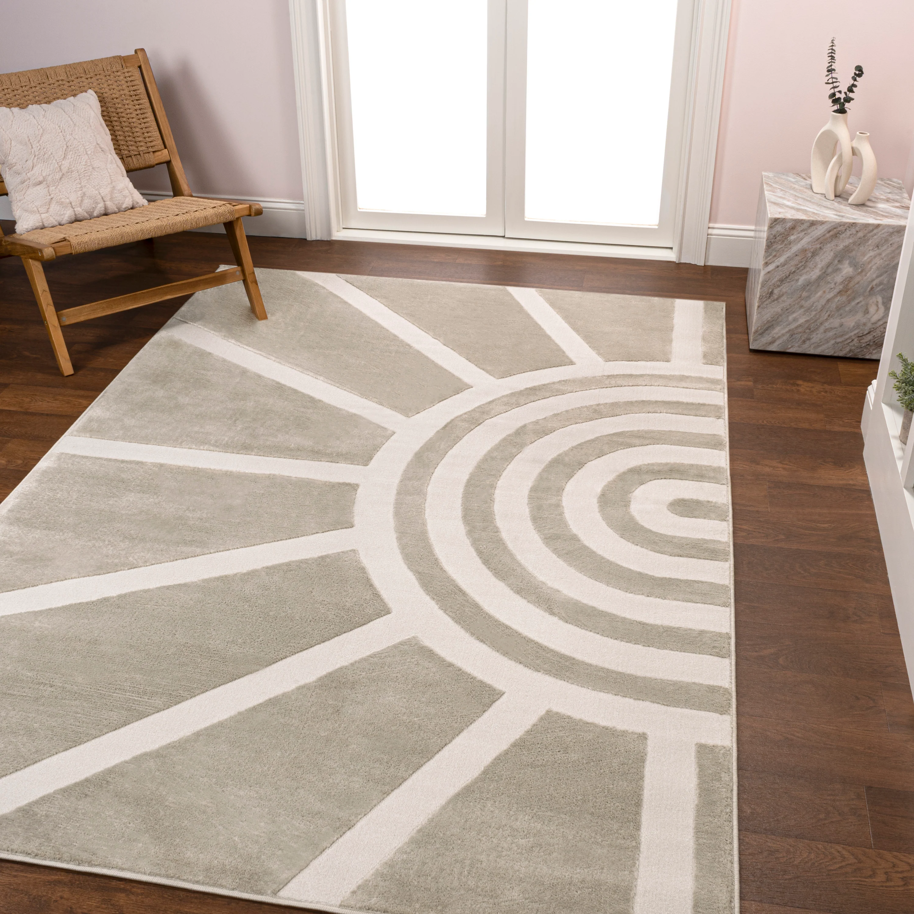 Porter Geometric Art Deco Fan Pattern High-Low Area Rug