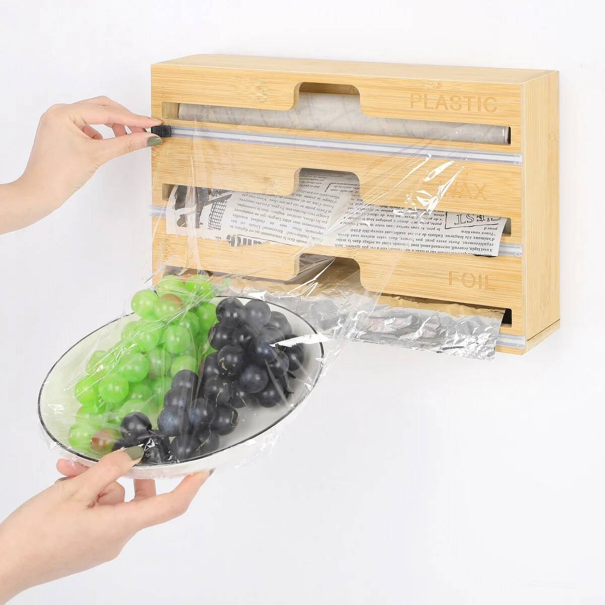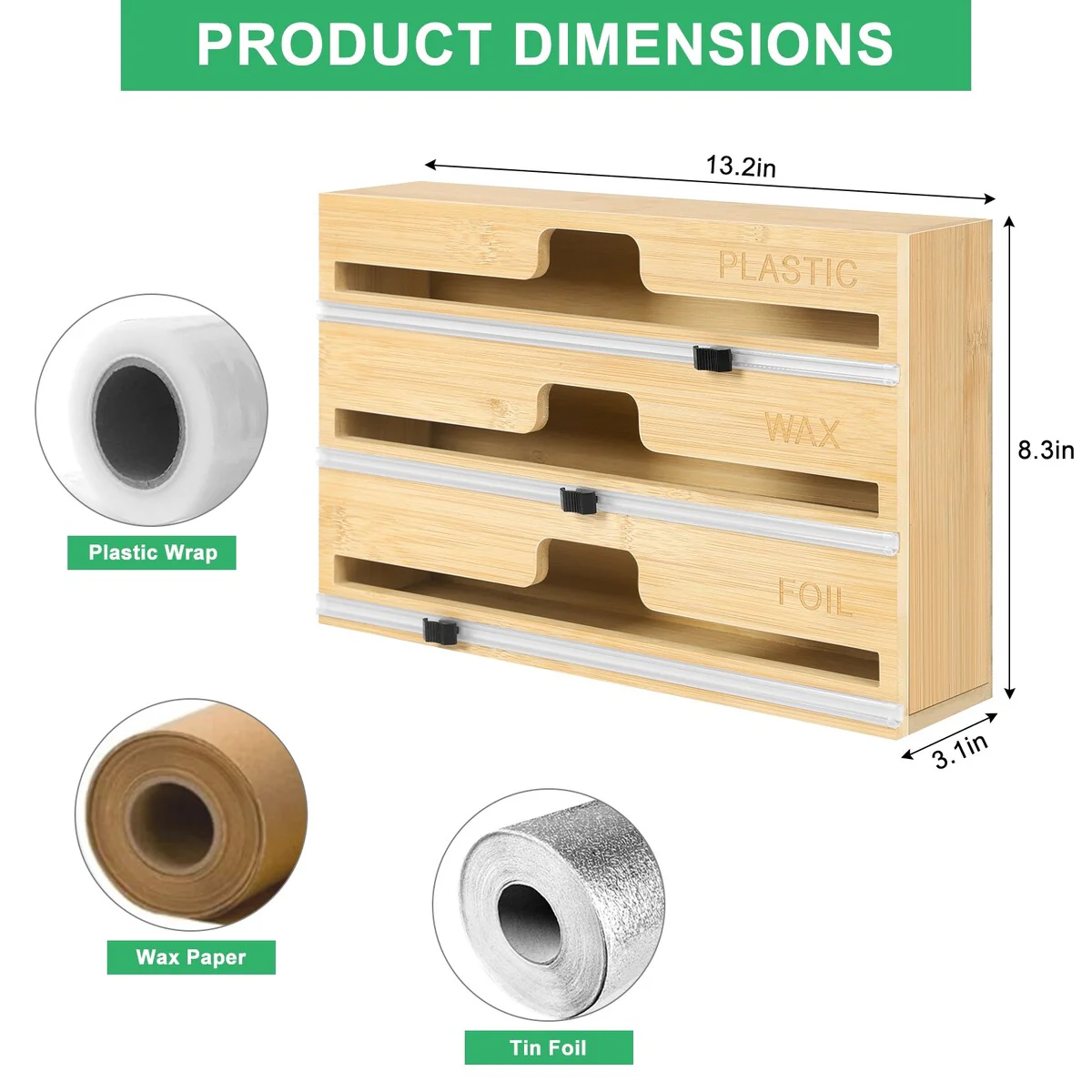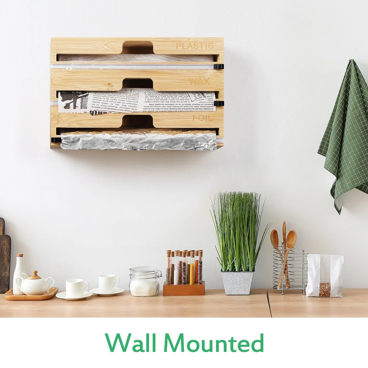Plastic Wrap, Aluminum Foil and Wax Bamboo Dispenser for Kitchen Storage - 1PCS