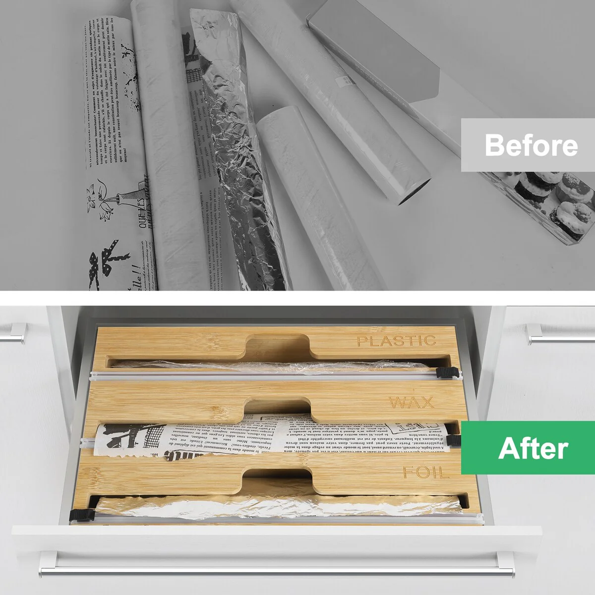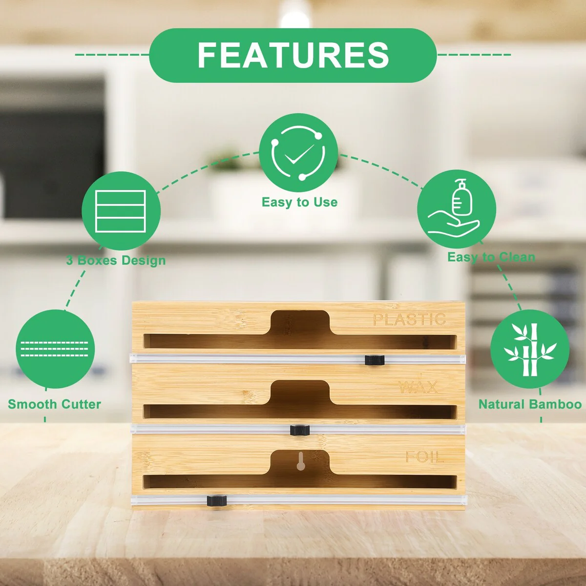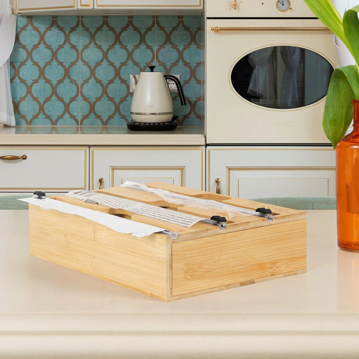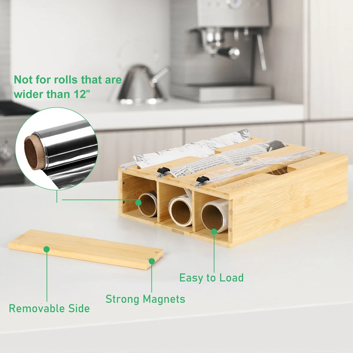 Plastic Wrap, Aluminum Foil and Wax Bamboo Dispenser for Kitchen Storage - 1PCS