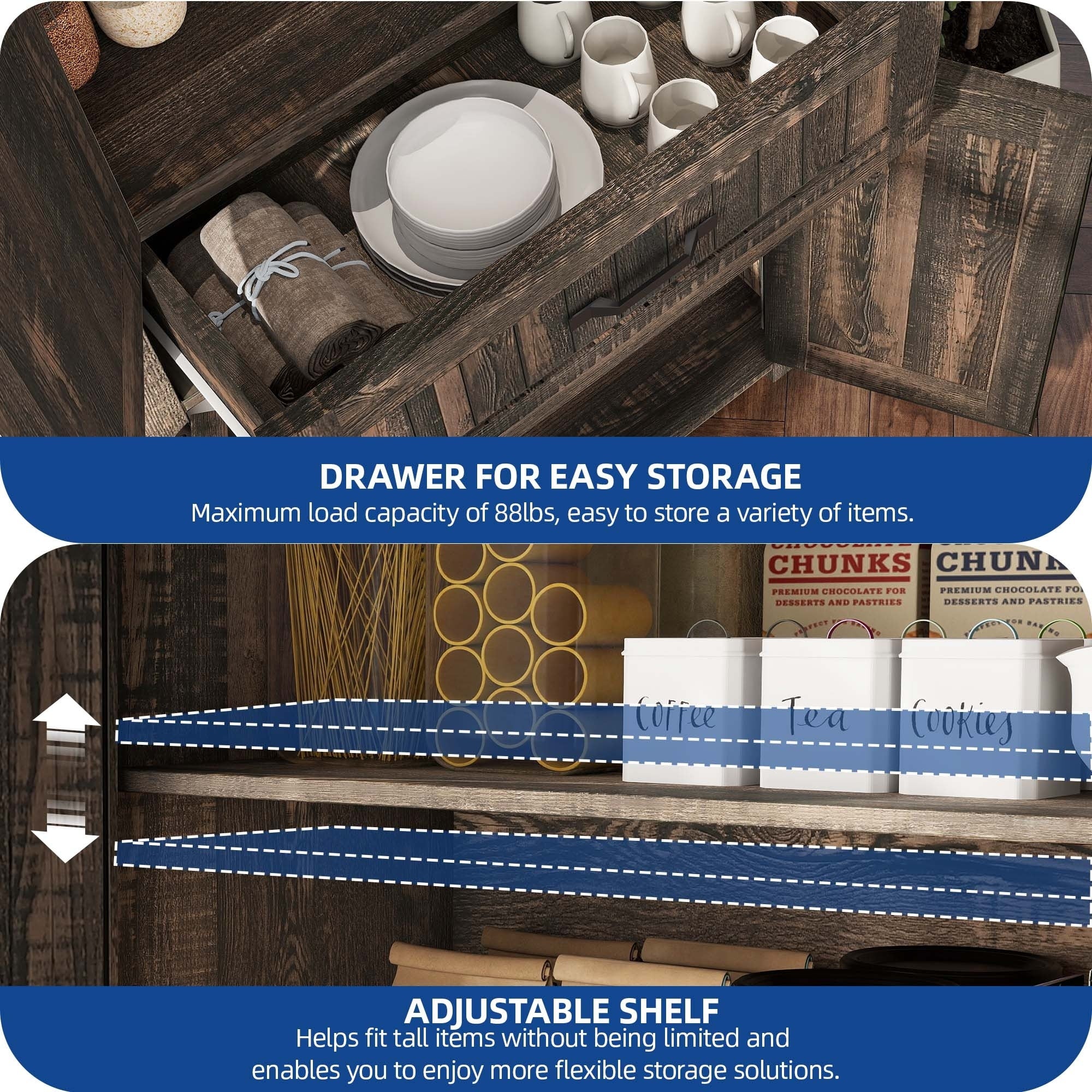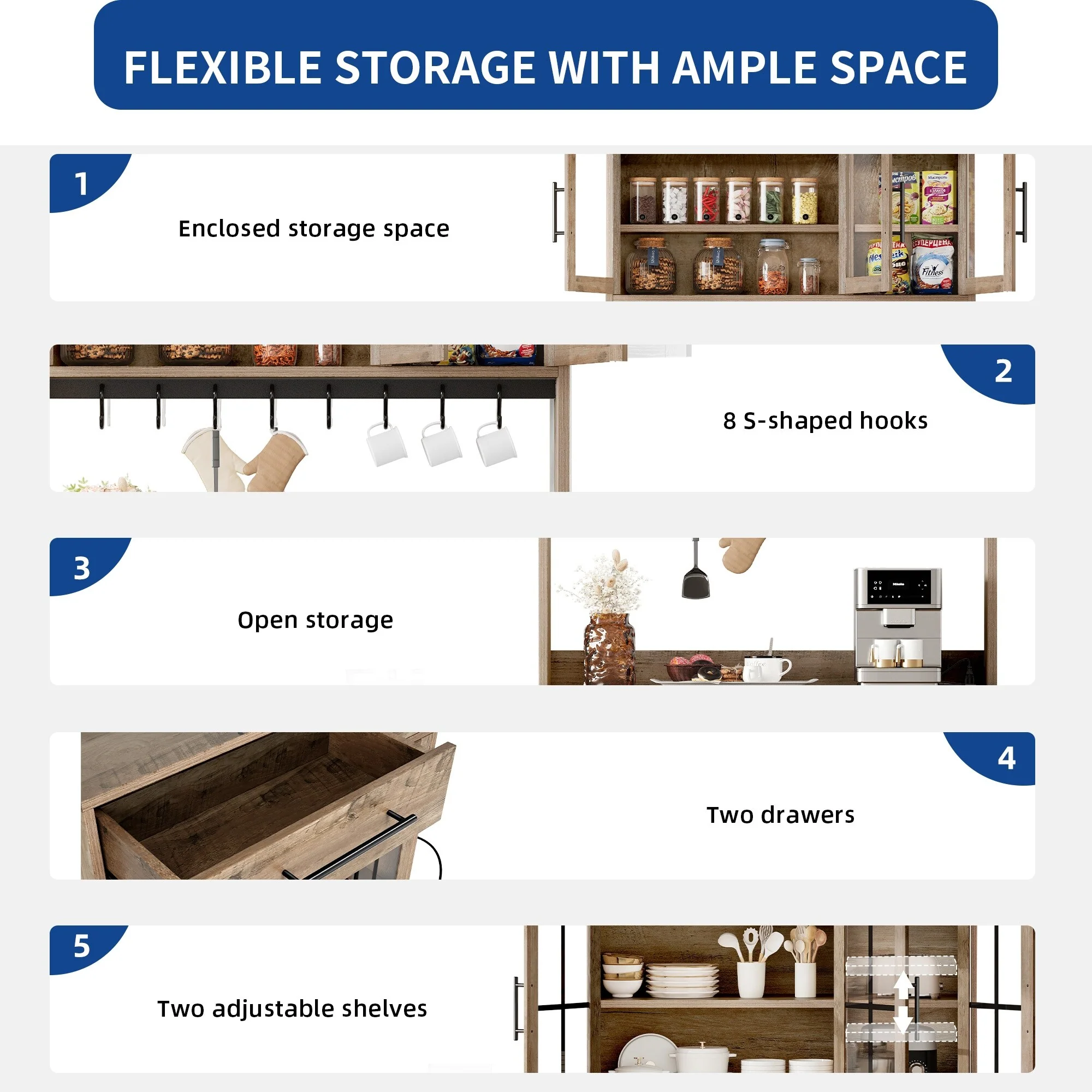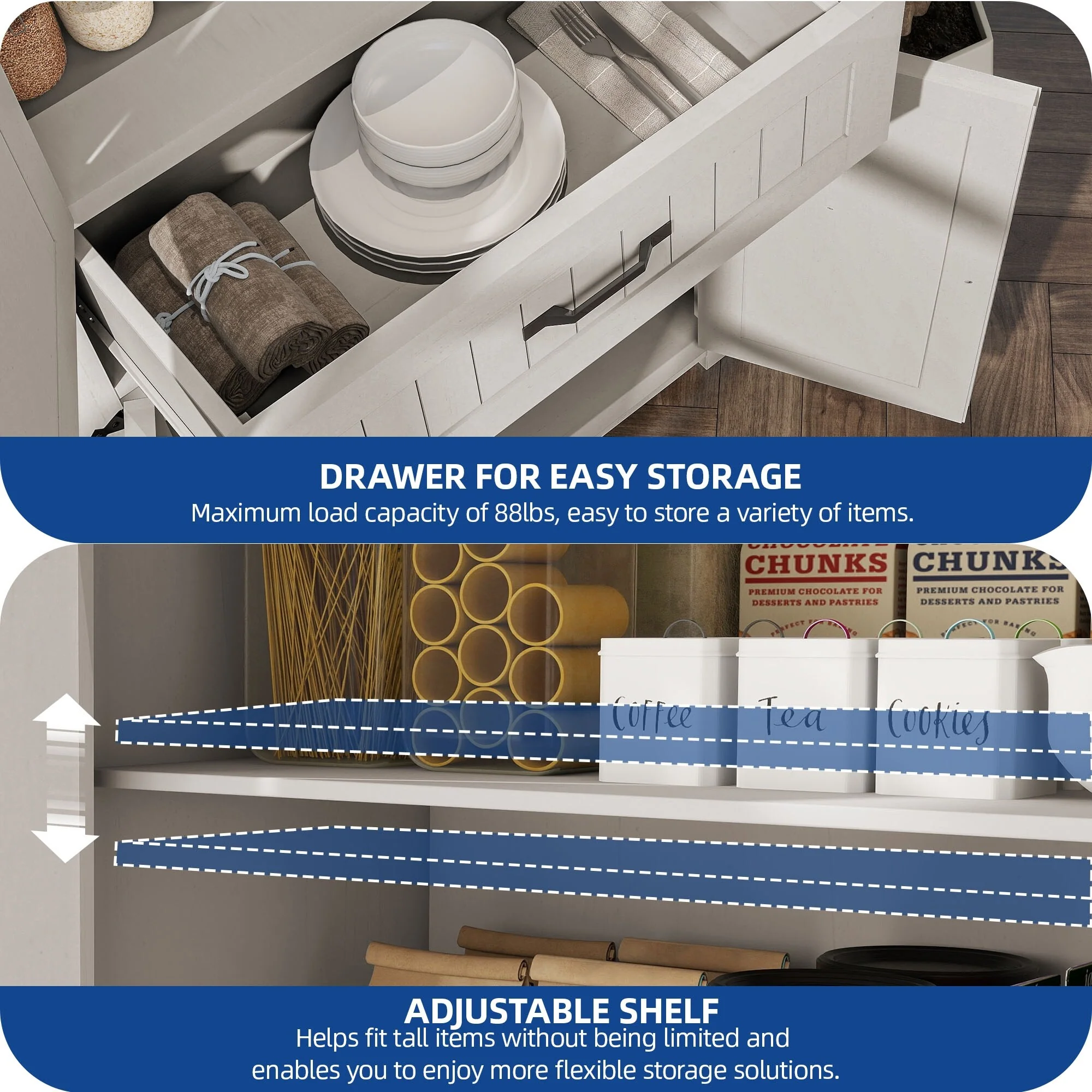 Moasis Farmhouse Traditional Freestanding Kitchen Pantry Storage Cabinet Cupboard