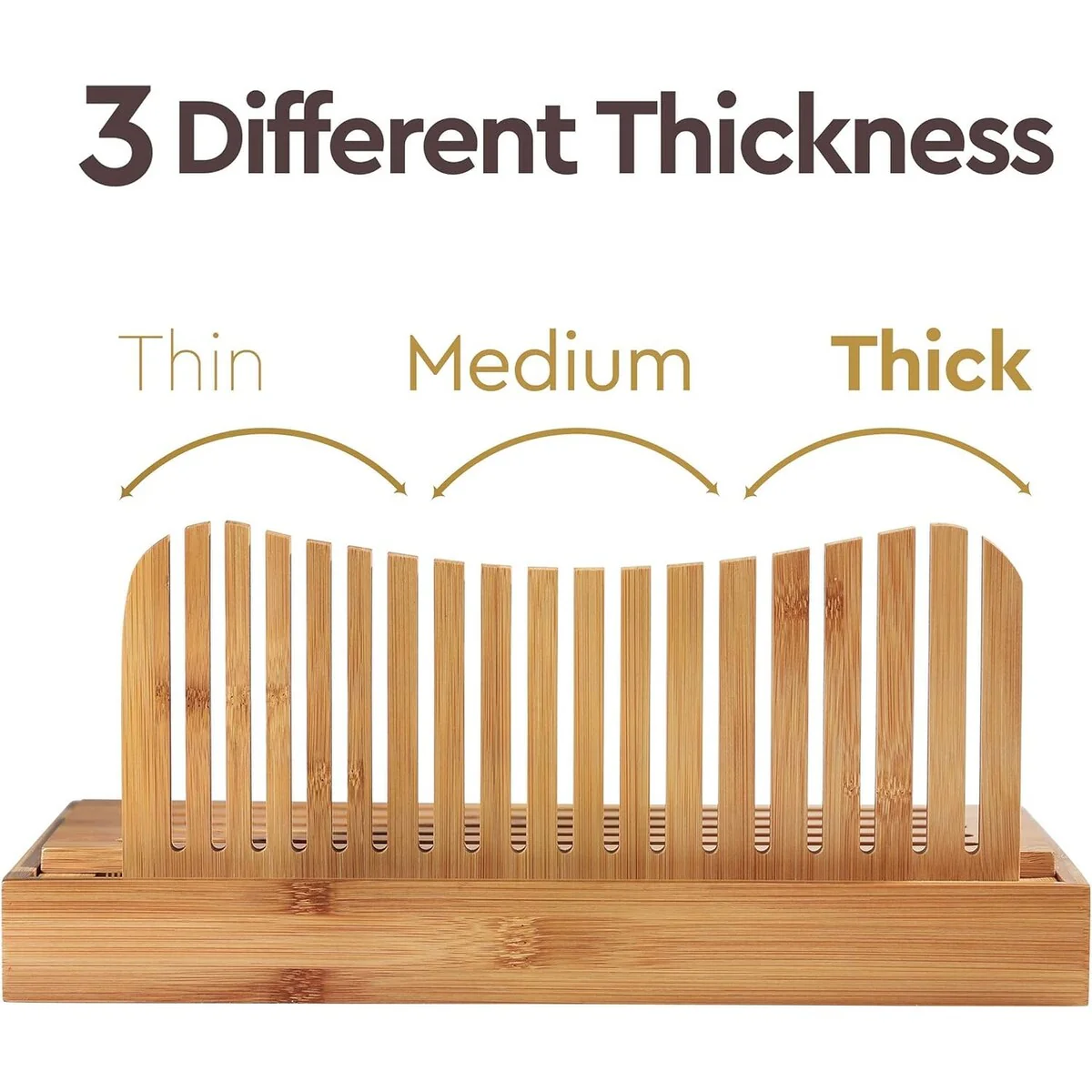 Bamboo Bread Slicer with Knife - 3 Slice Thickness, Foldable Compact Cutting Guide with Crumb Tray