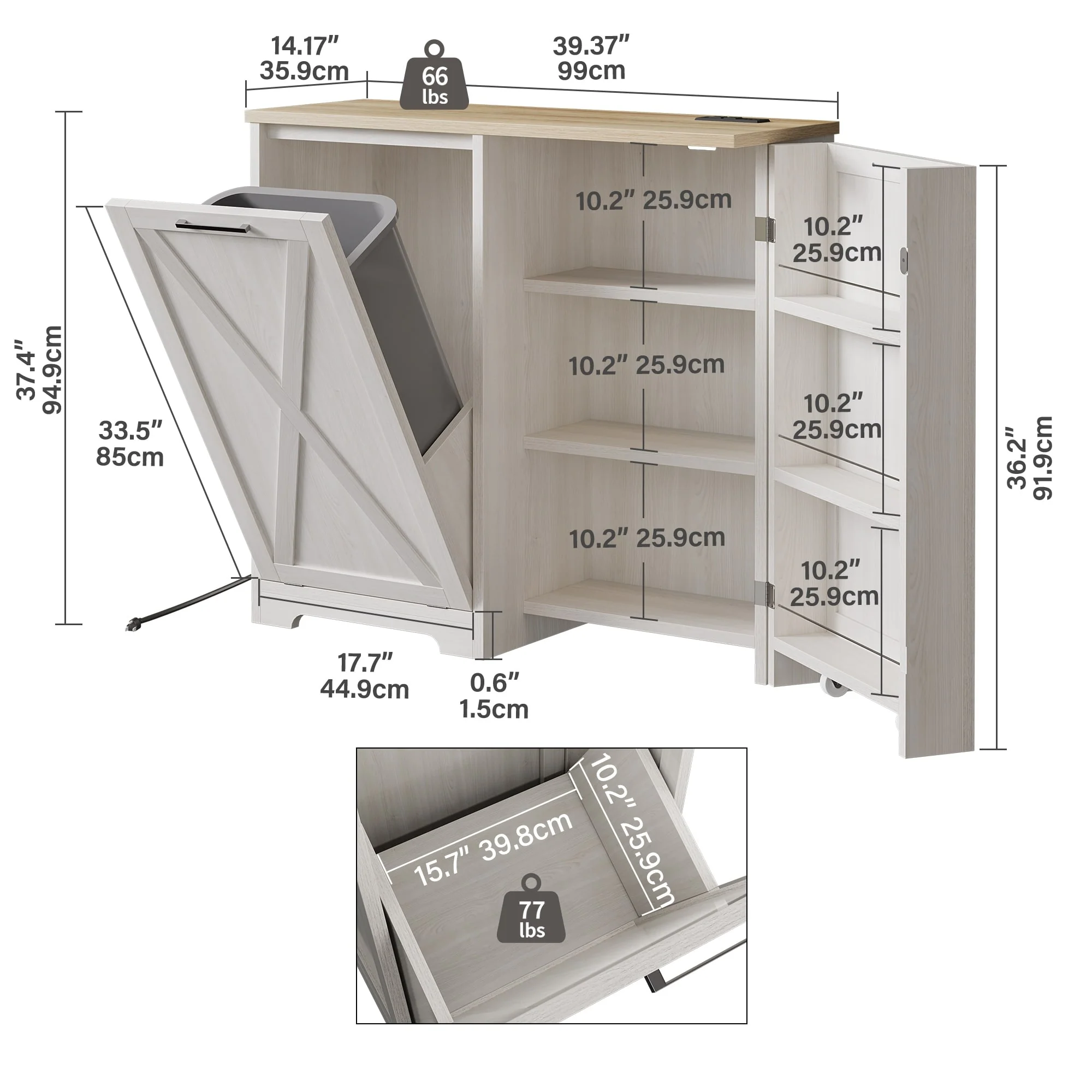 Moasis 13 Gallon Kitchen Tilt Out Trash Bin Cabinet with Power Outlet