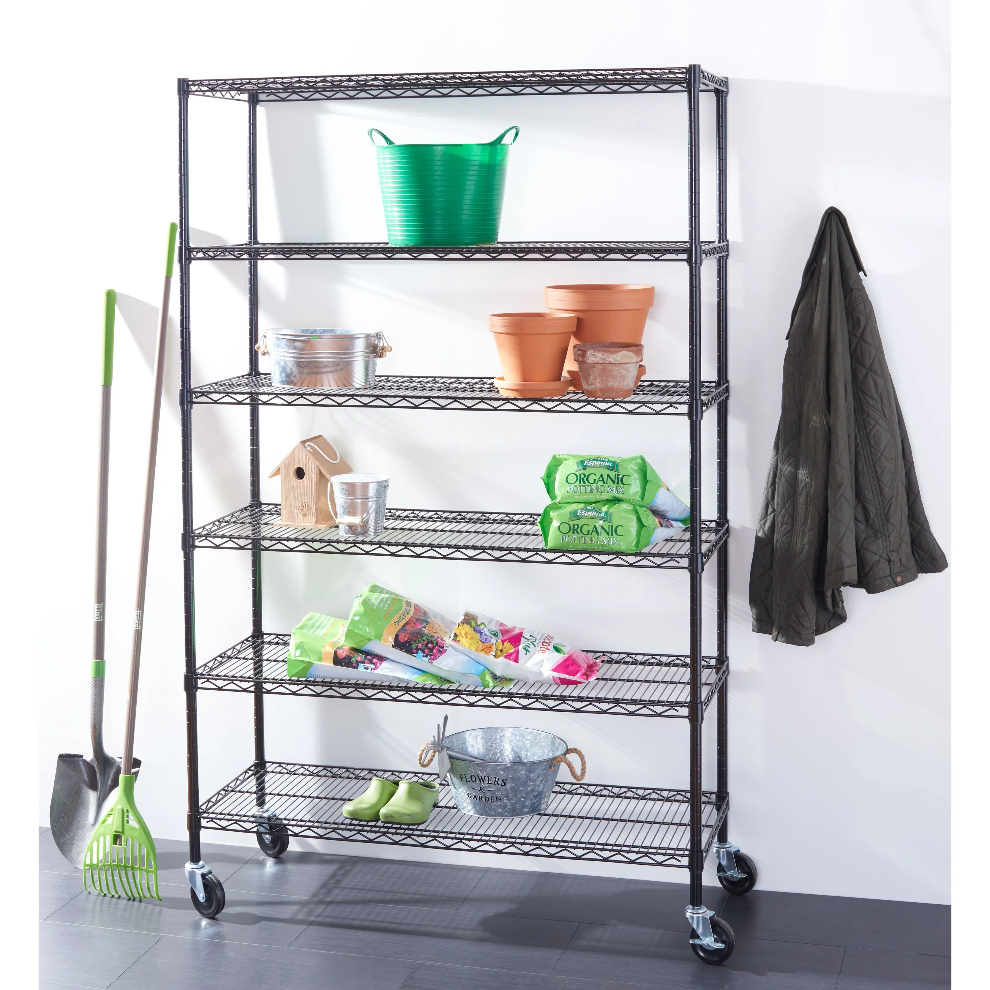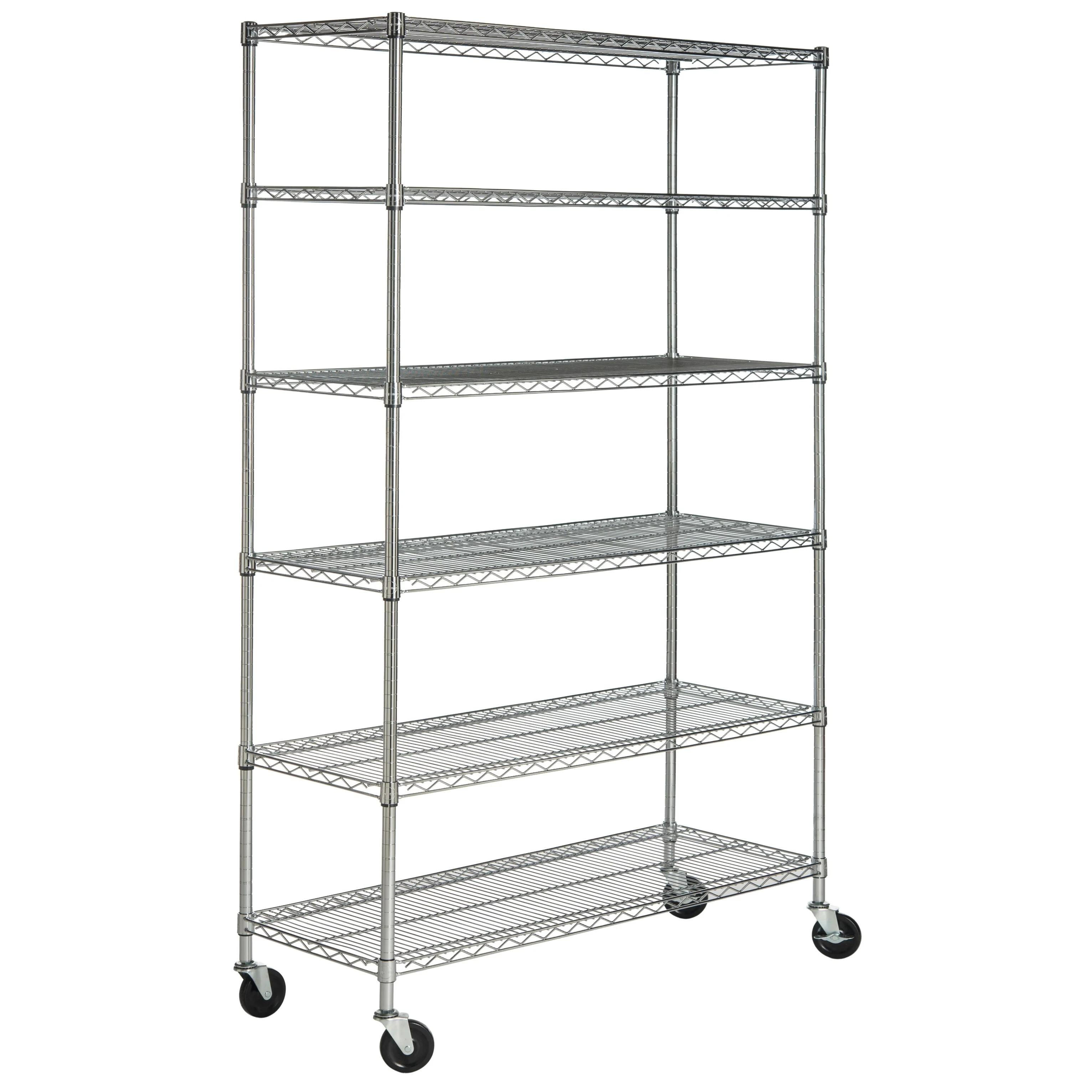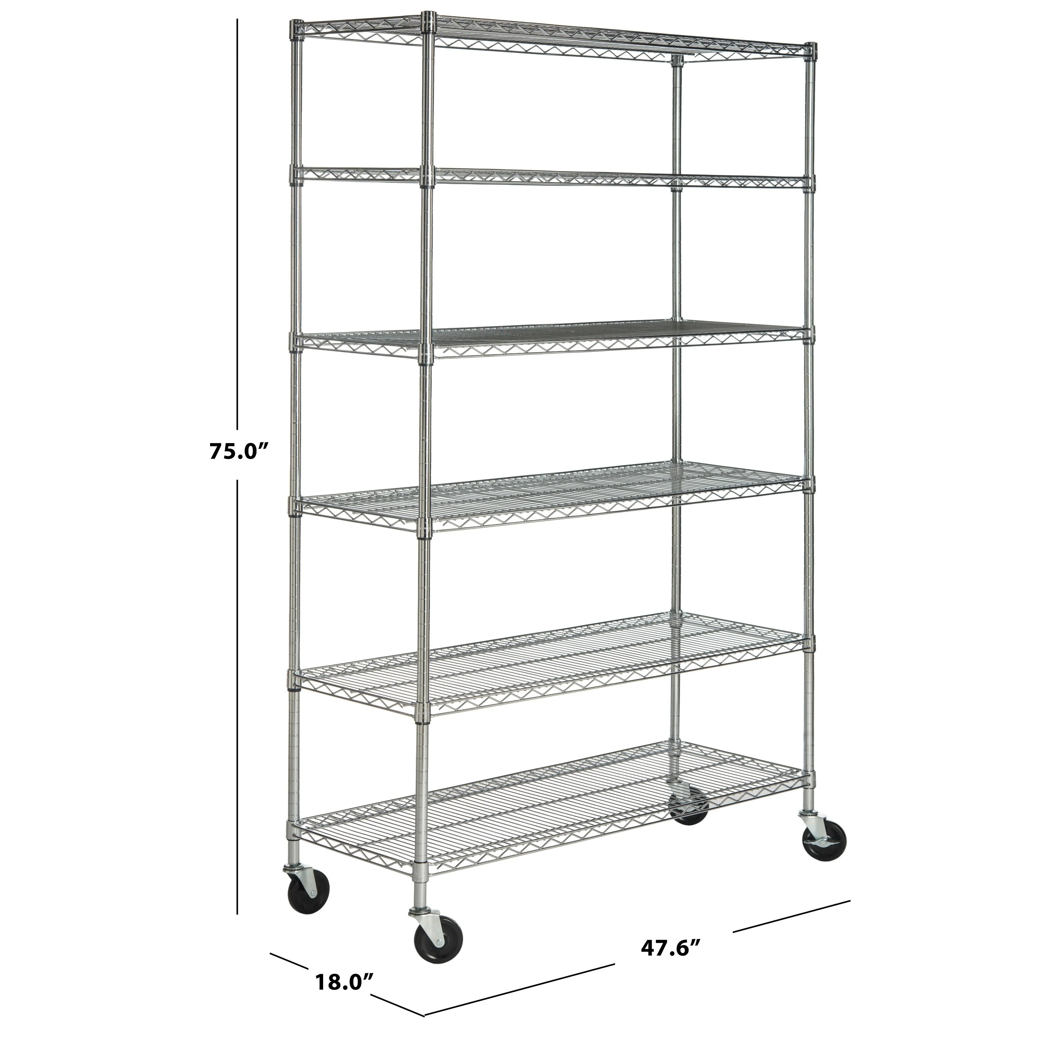 SAFAVIEH Storage Felecia 6 Tier Heavy Duty Commercial Chrome Wire Shelf - 47.6" W x 18" L x 75" H - 48Wx18Dx75H