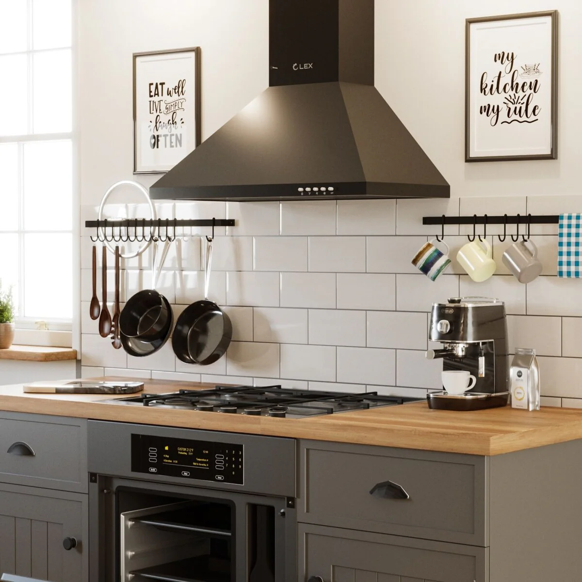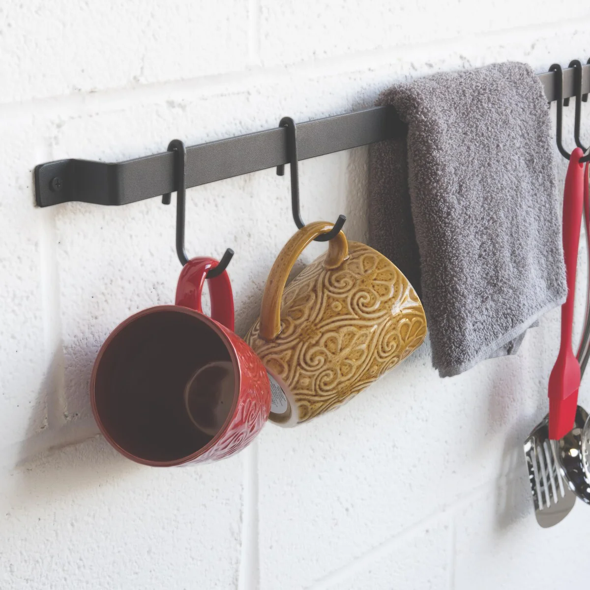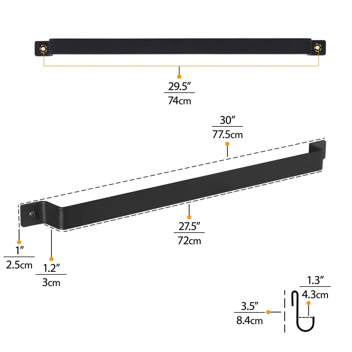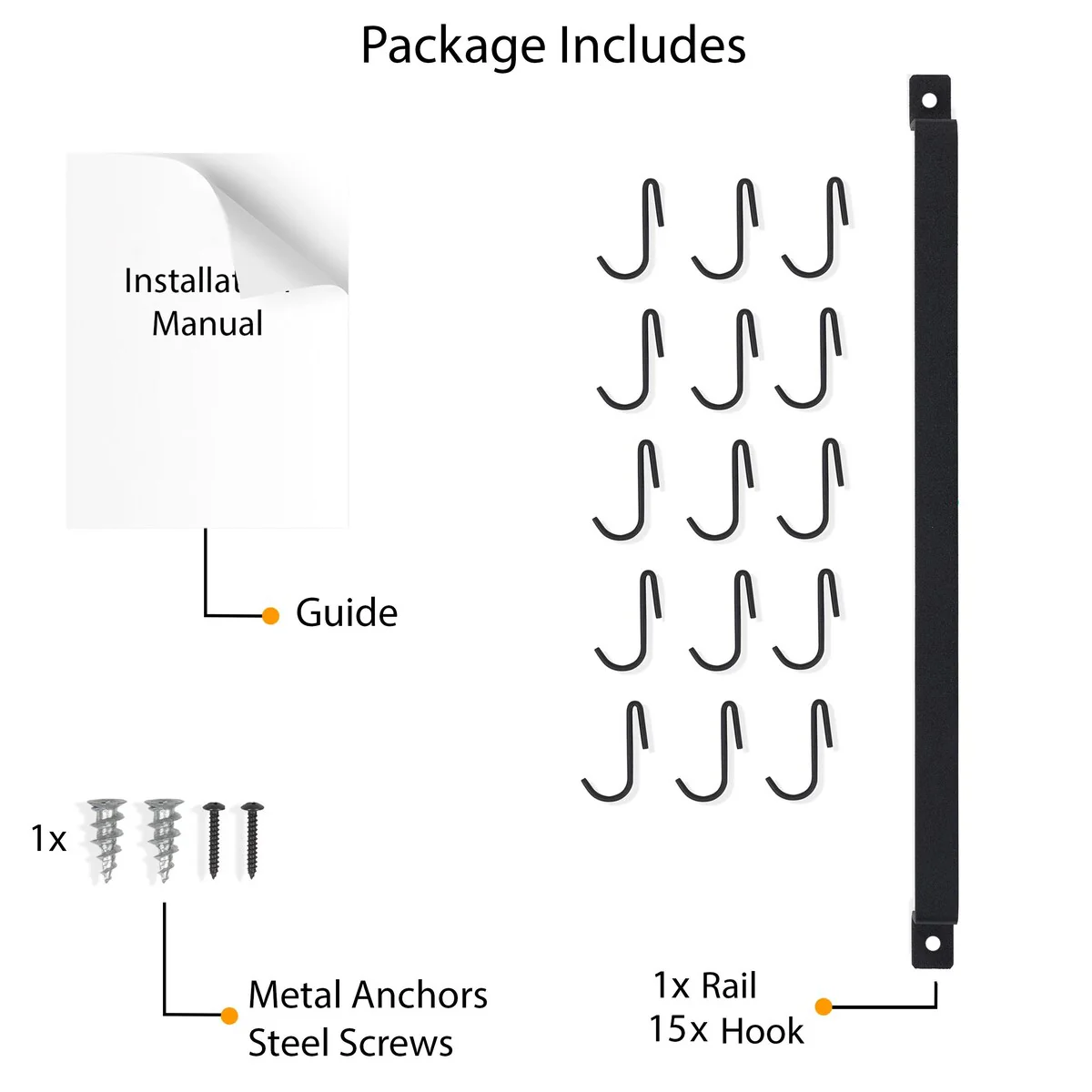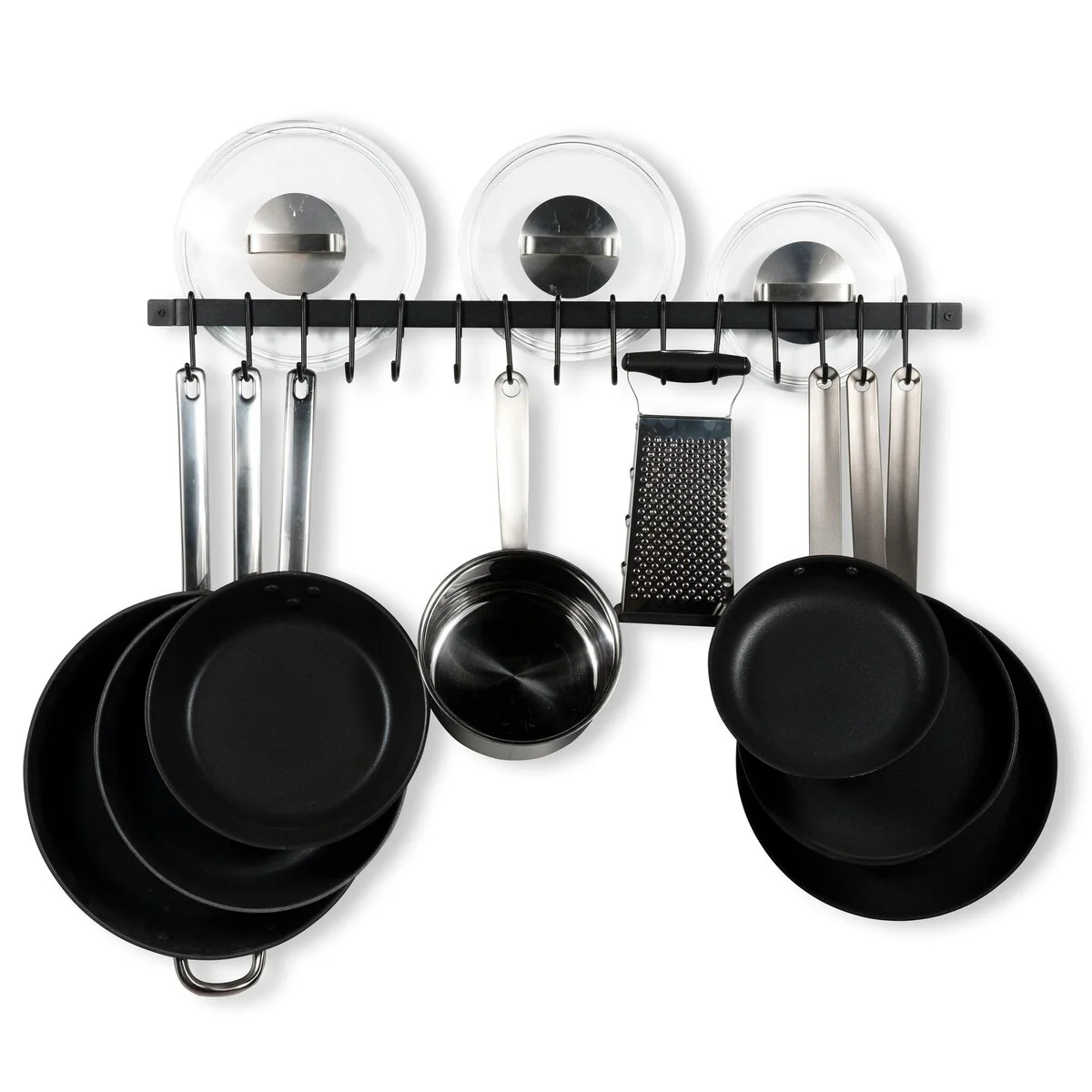 Wallniture Casto 30" Pots & Pans Holder with 15 Hooks, Steel Kitchen Rack, Black
