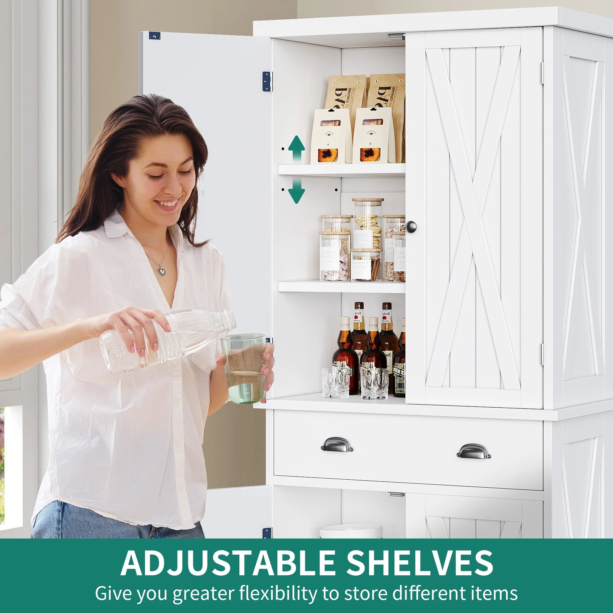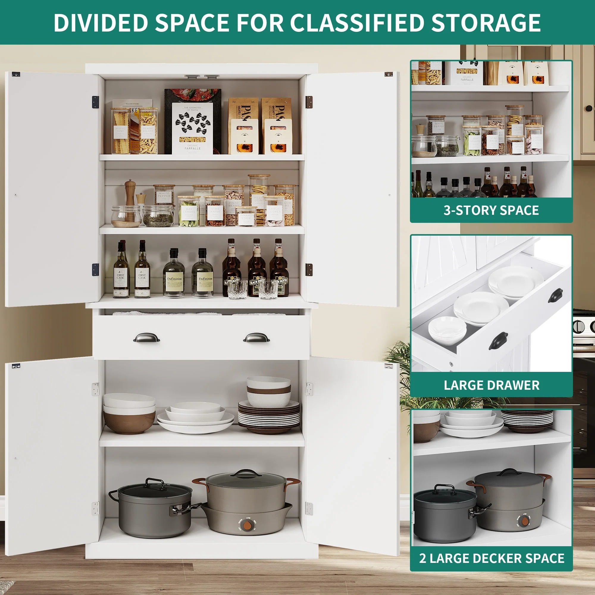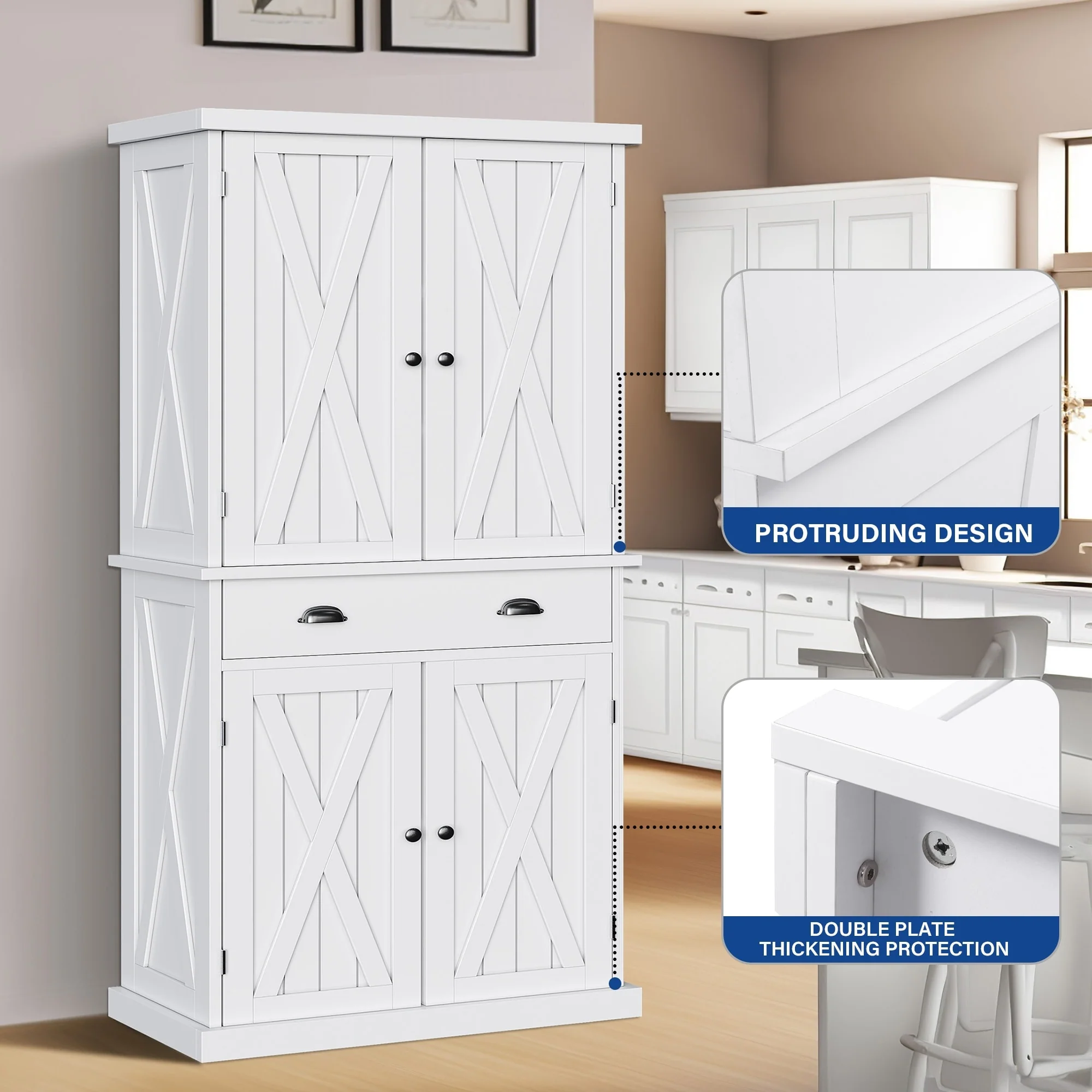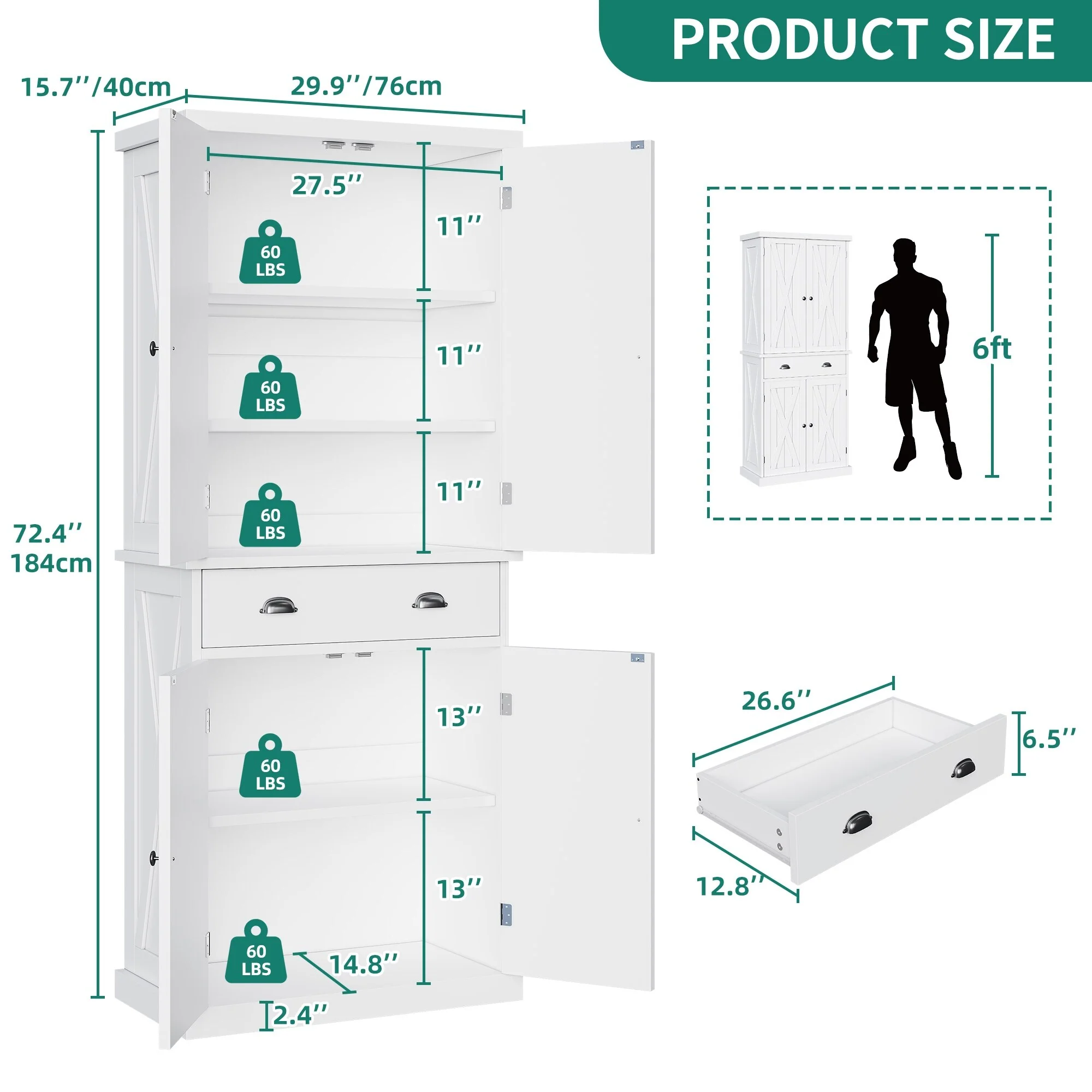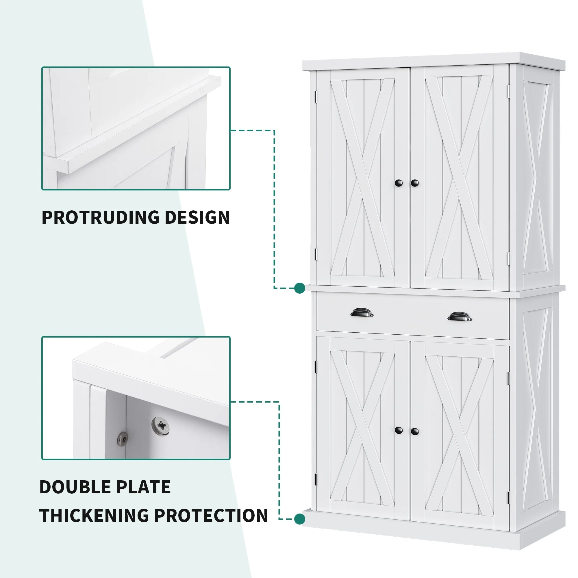 Moasis 72" Tall Farmhouse Kitchen Pantry Storage Cabinet with Drawer and Adjustable Shelves