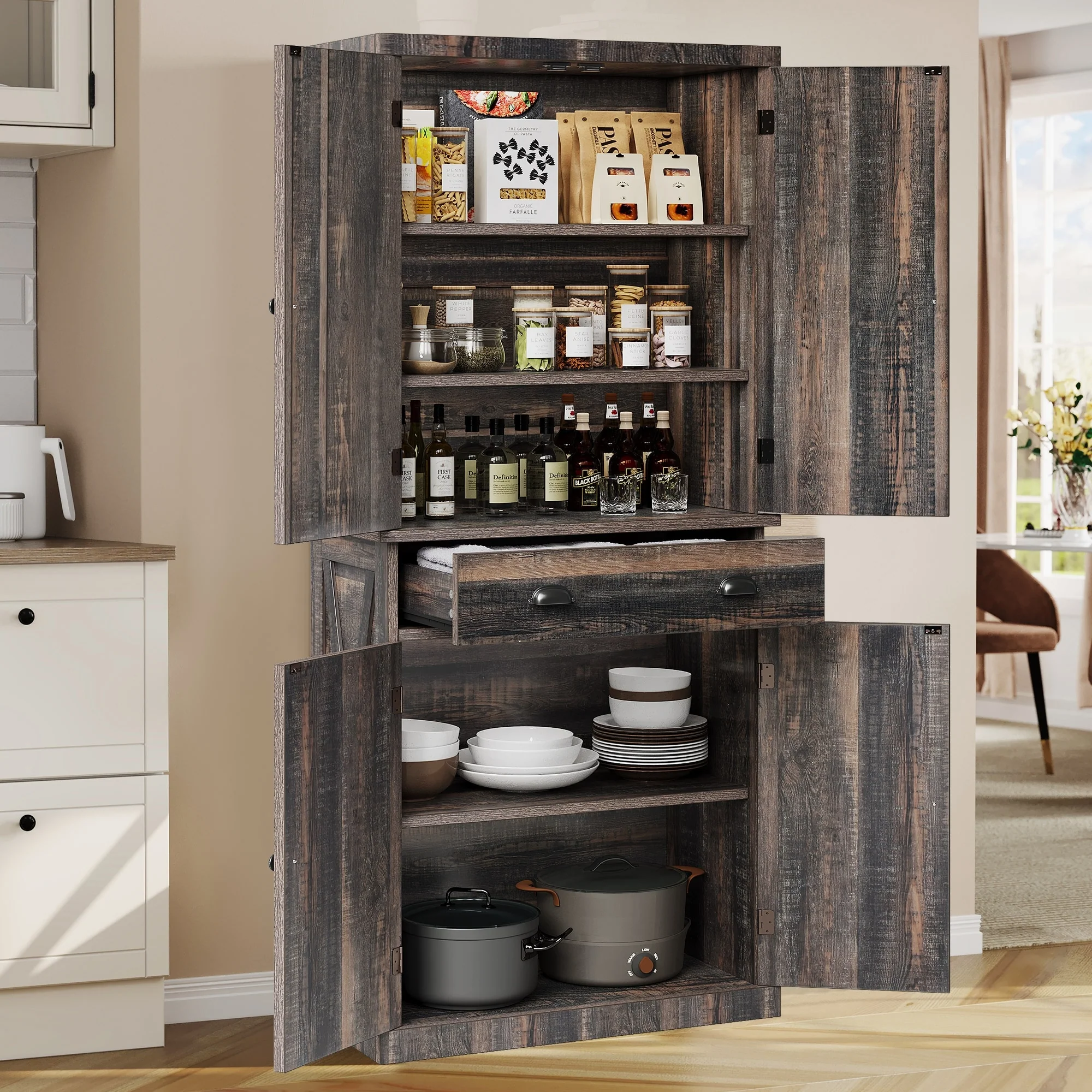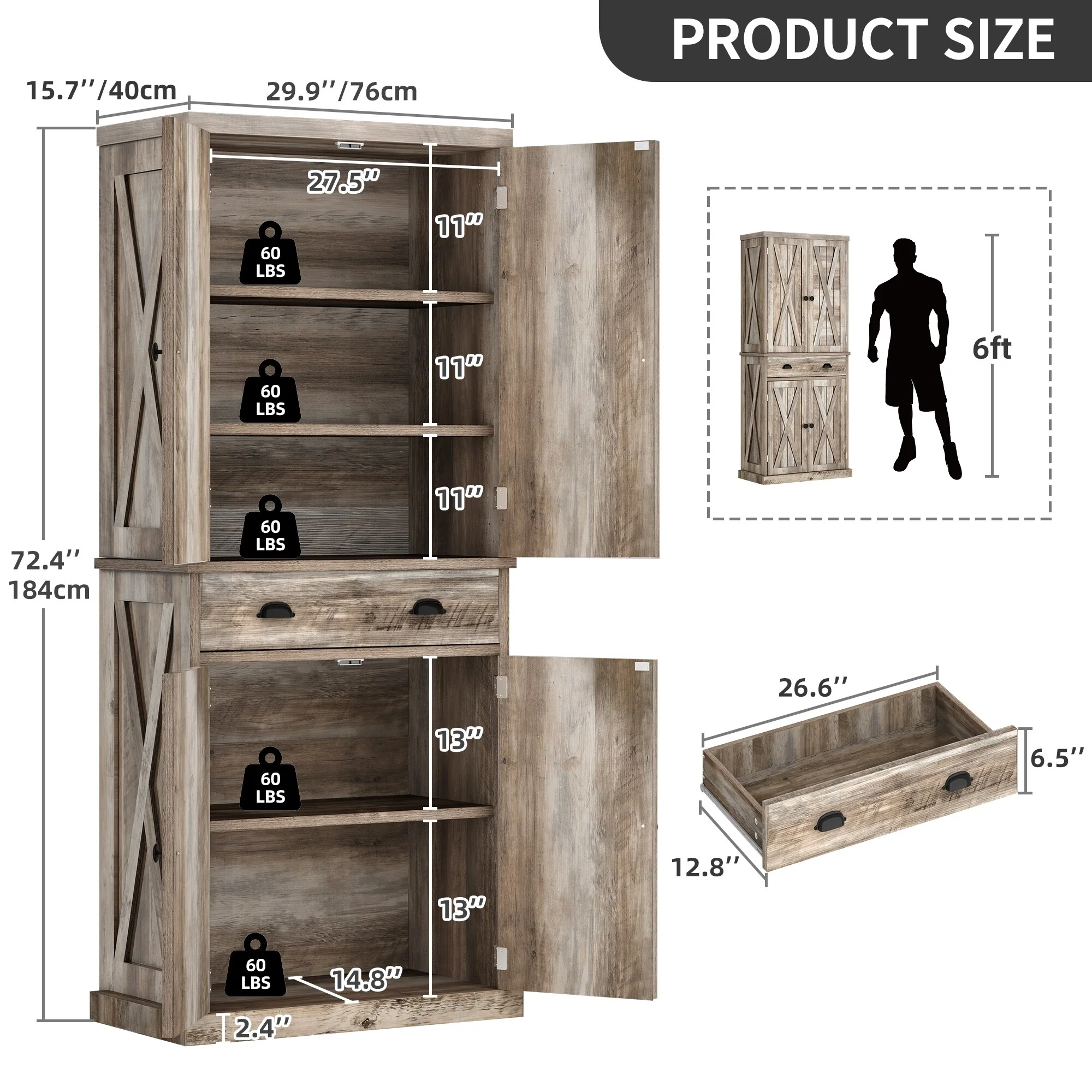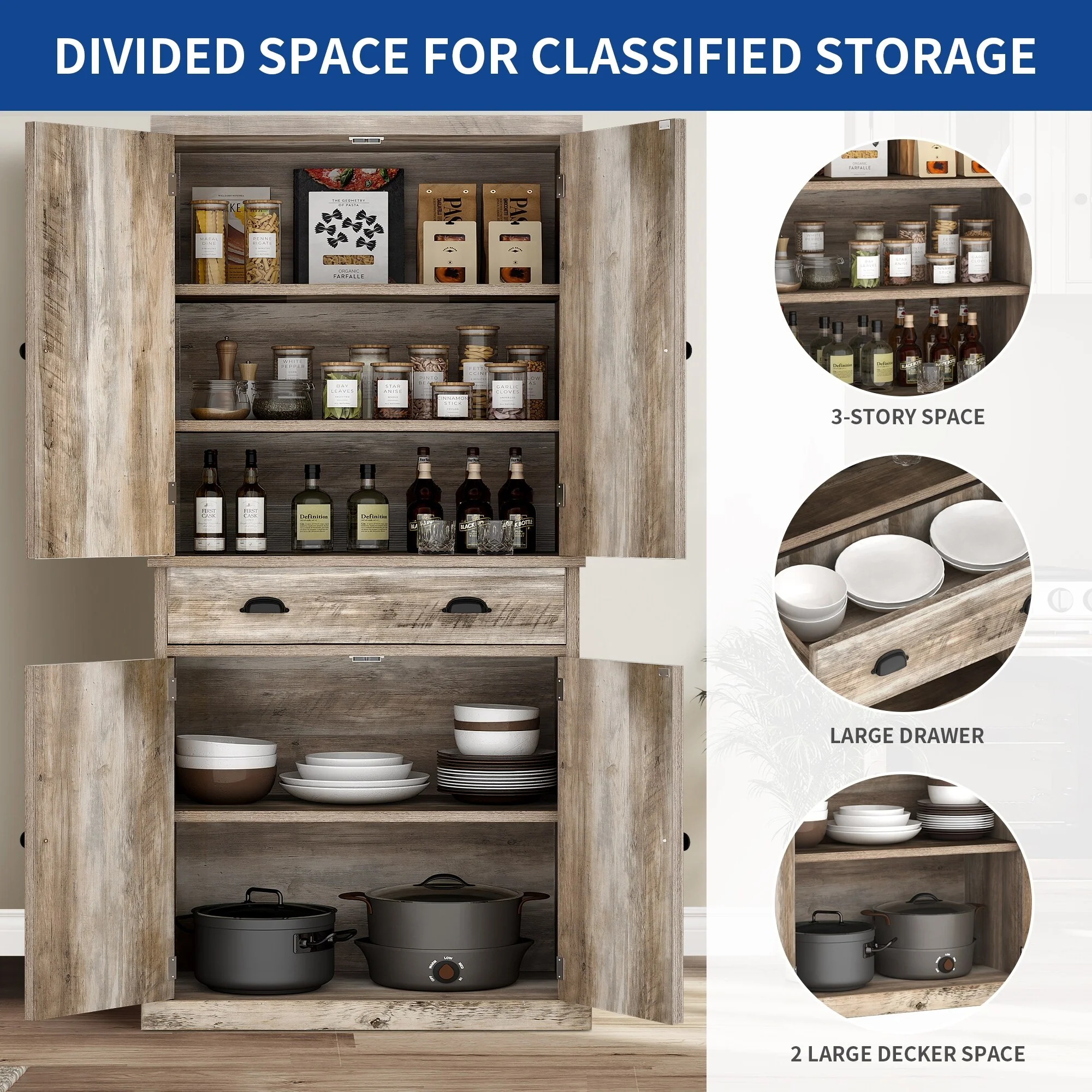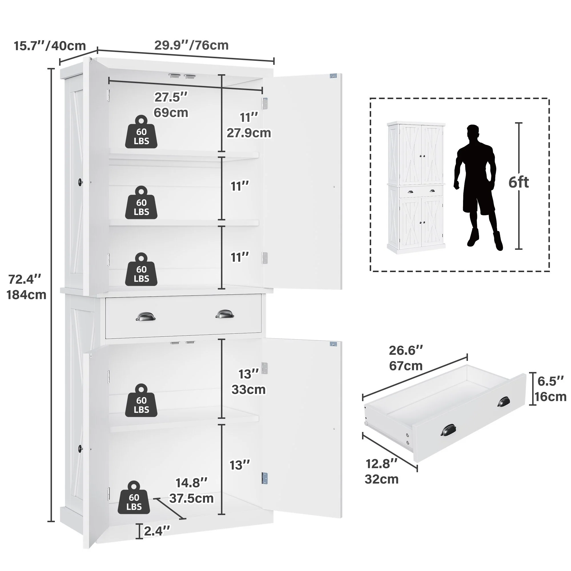 Moasis 72" Tall Farmhouse Kitchen Pantry Storage Cabinet with Drawer and Adjustable Shelves