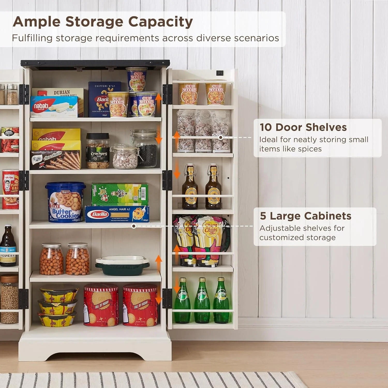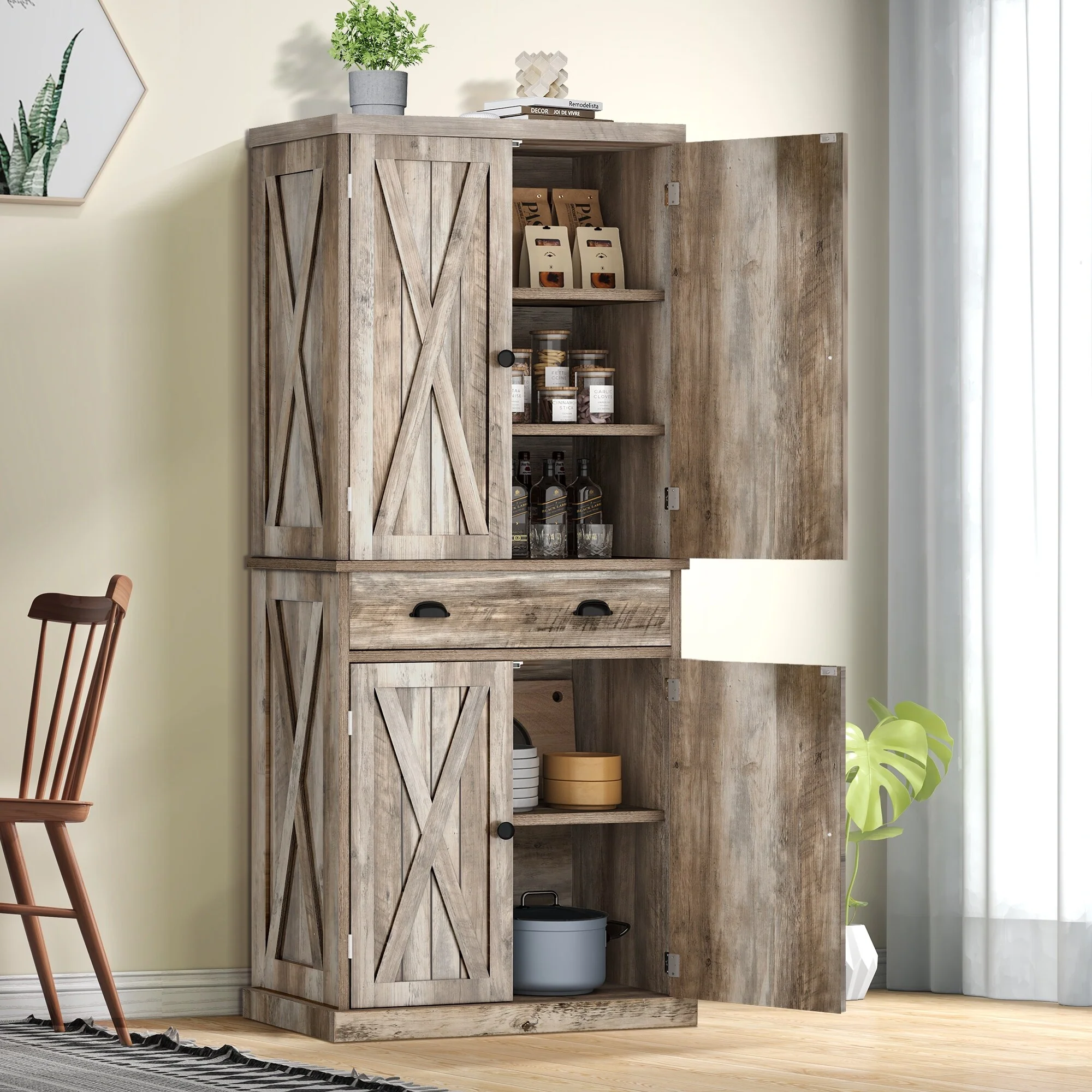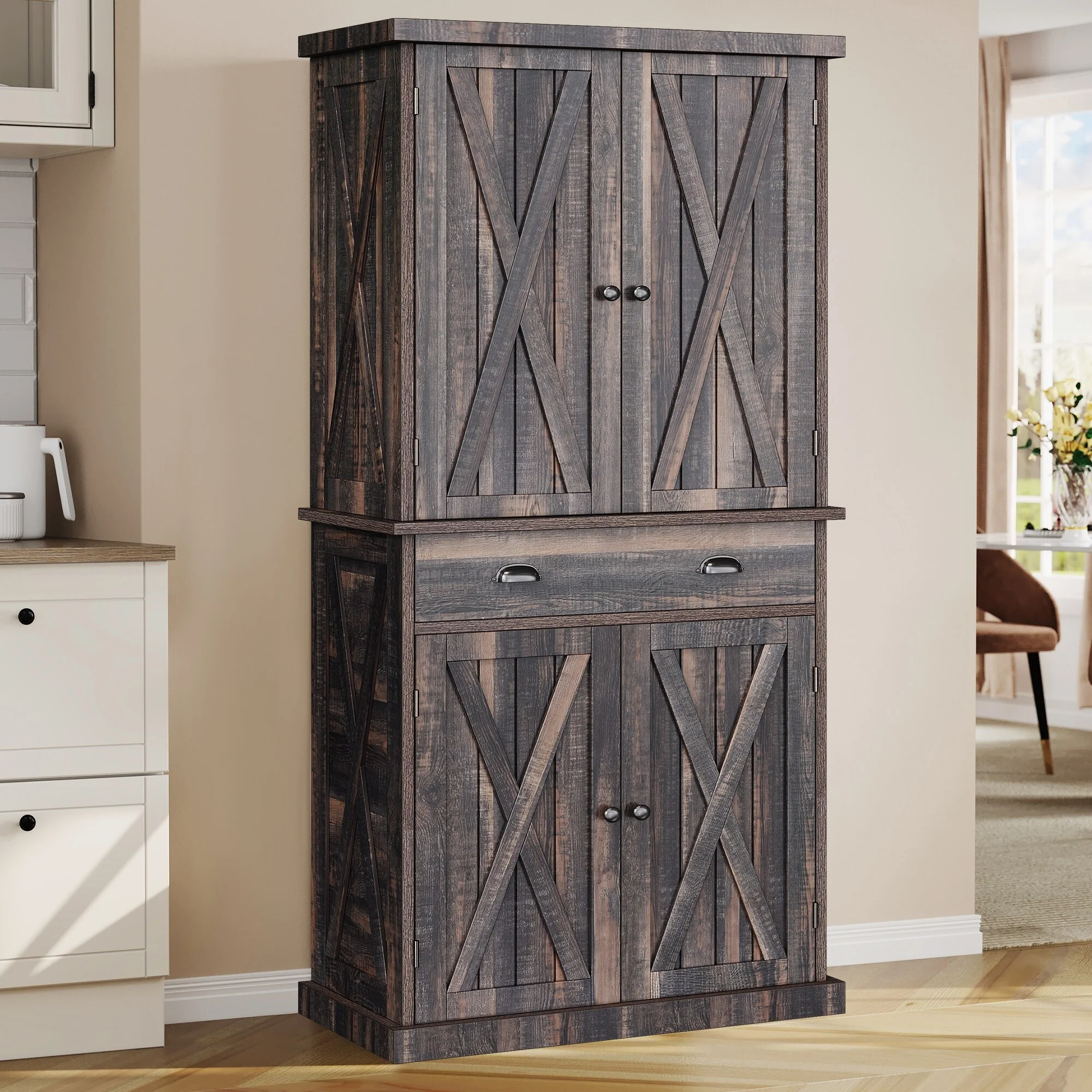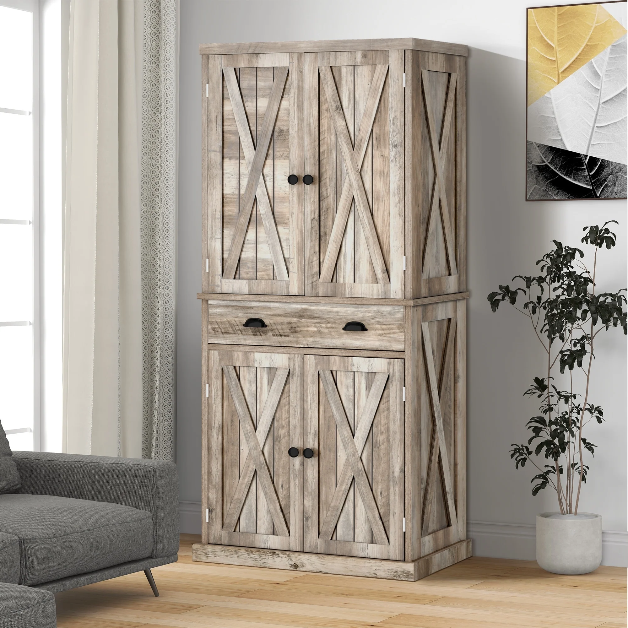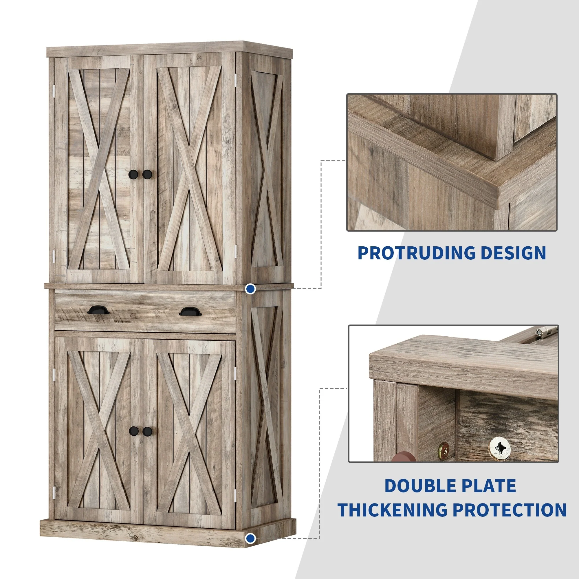 Moasis 72" Tall Farmhouse Kitchen Pantry Storage Cabinet with Drawer and Adjustable Shelves