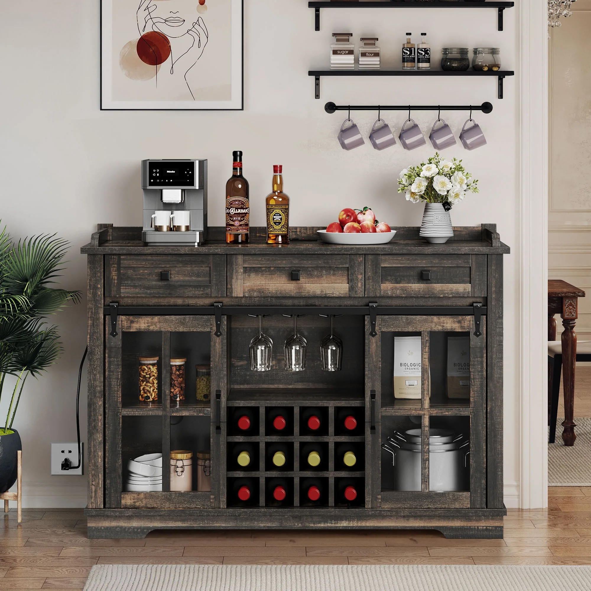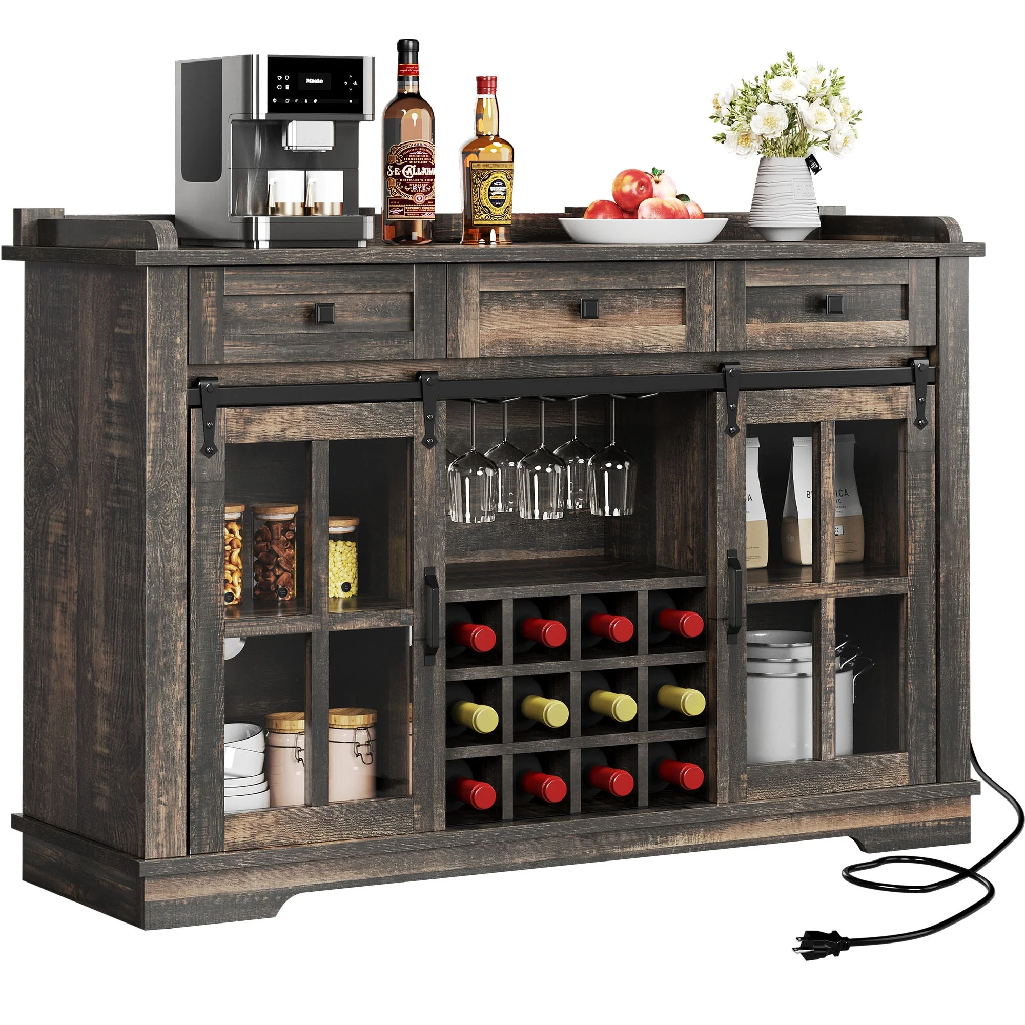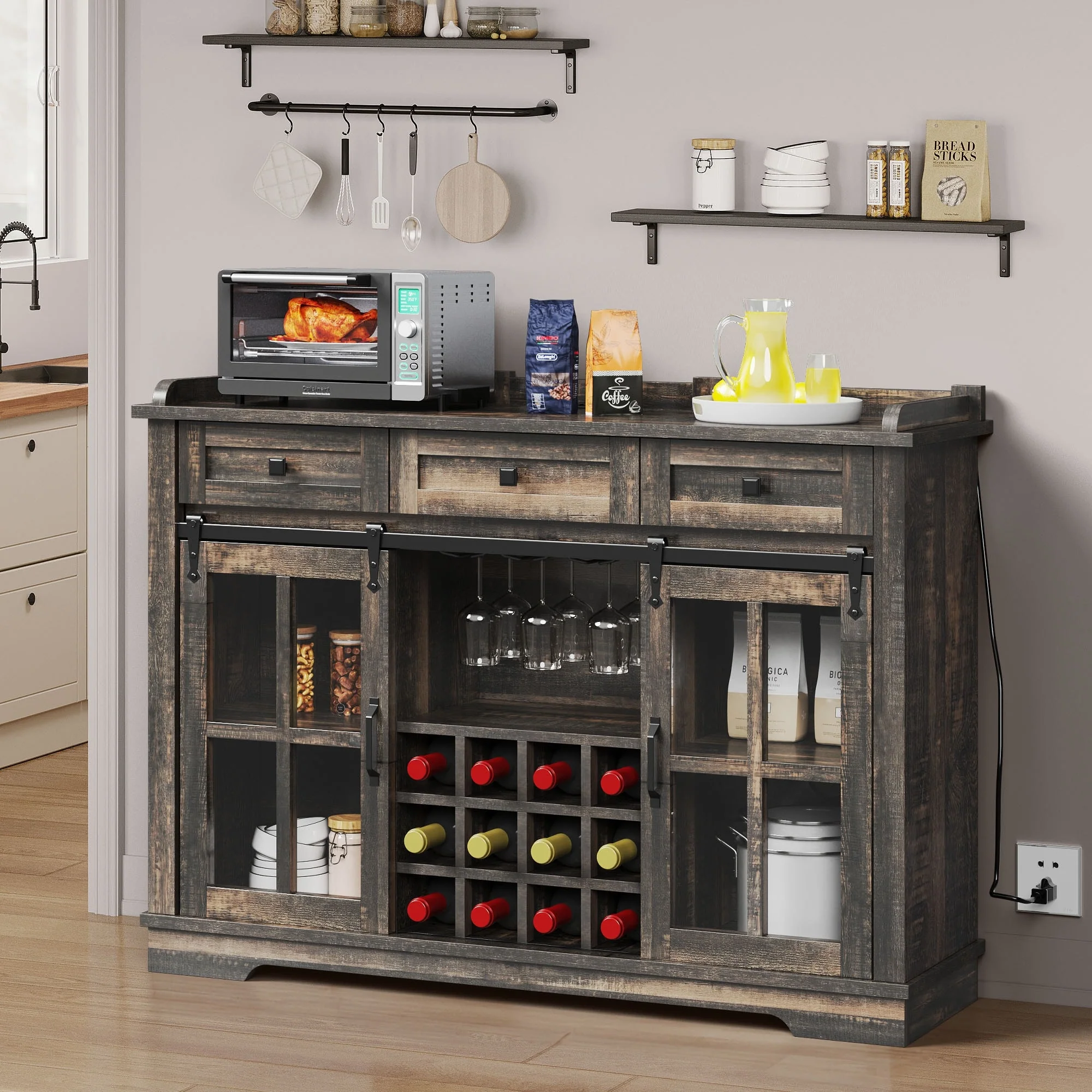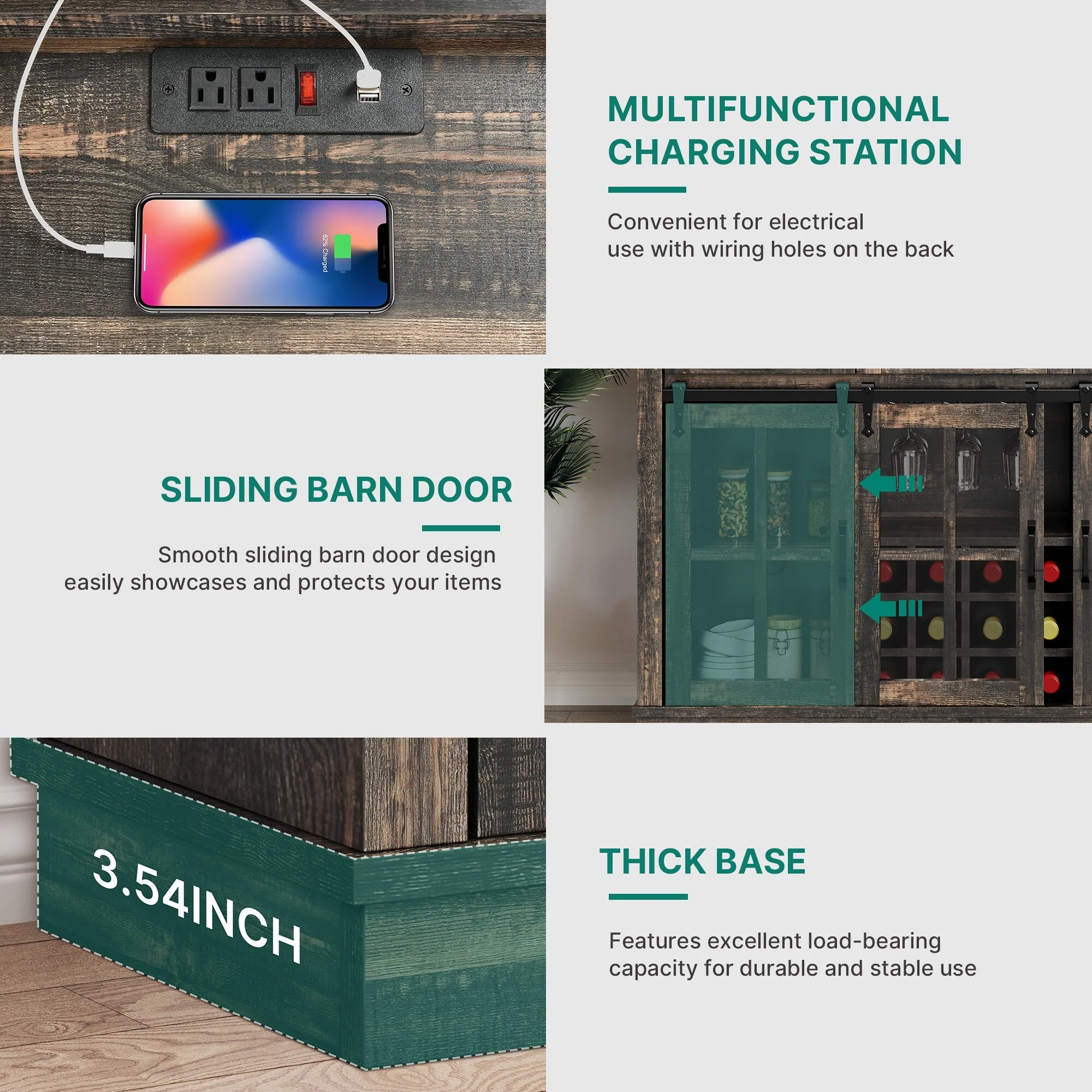 Moasis Sliding Barn Door Wine Bottle Storage with USB Ports and Outlets