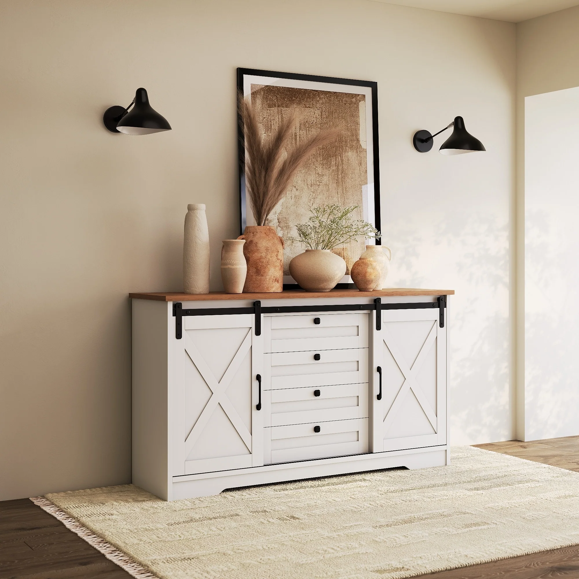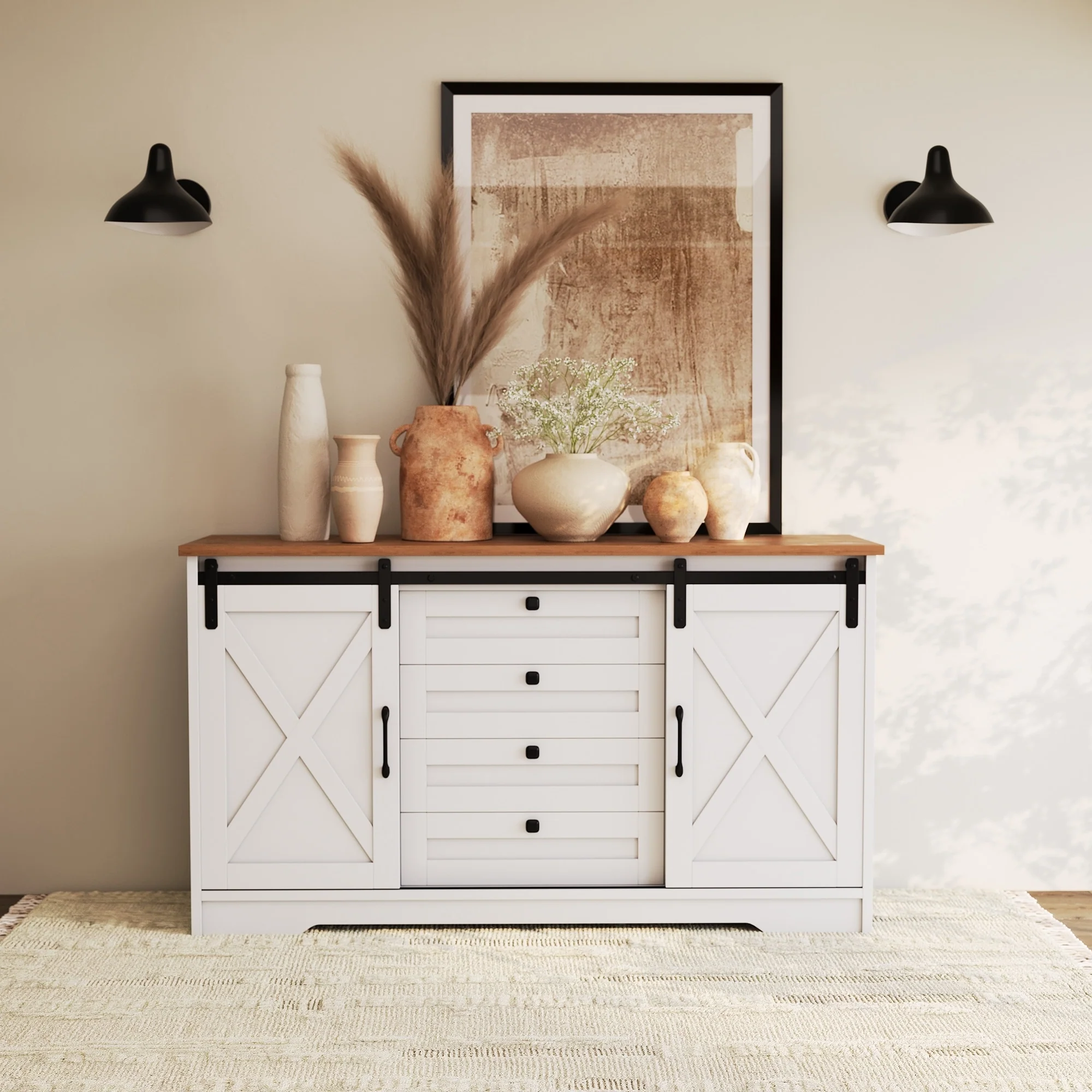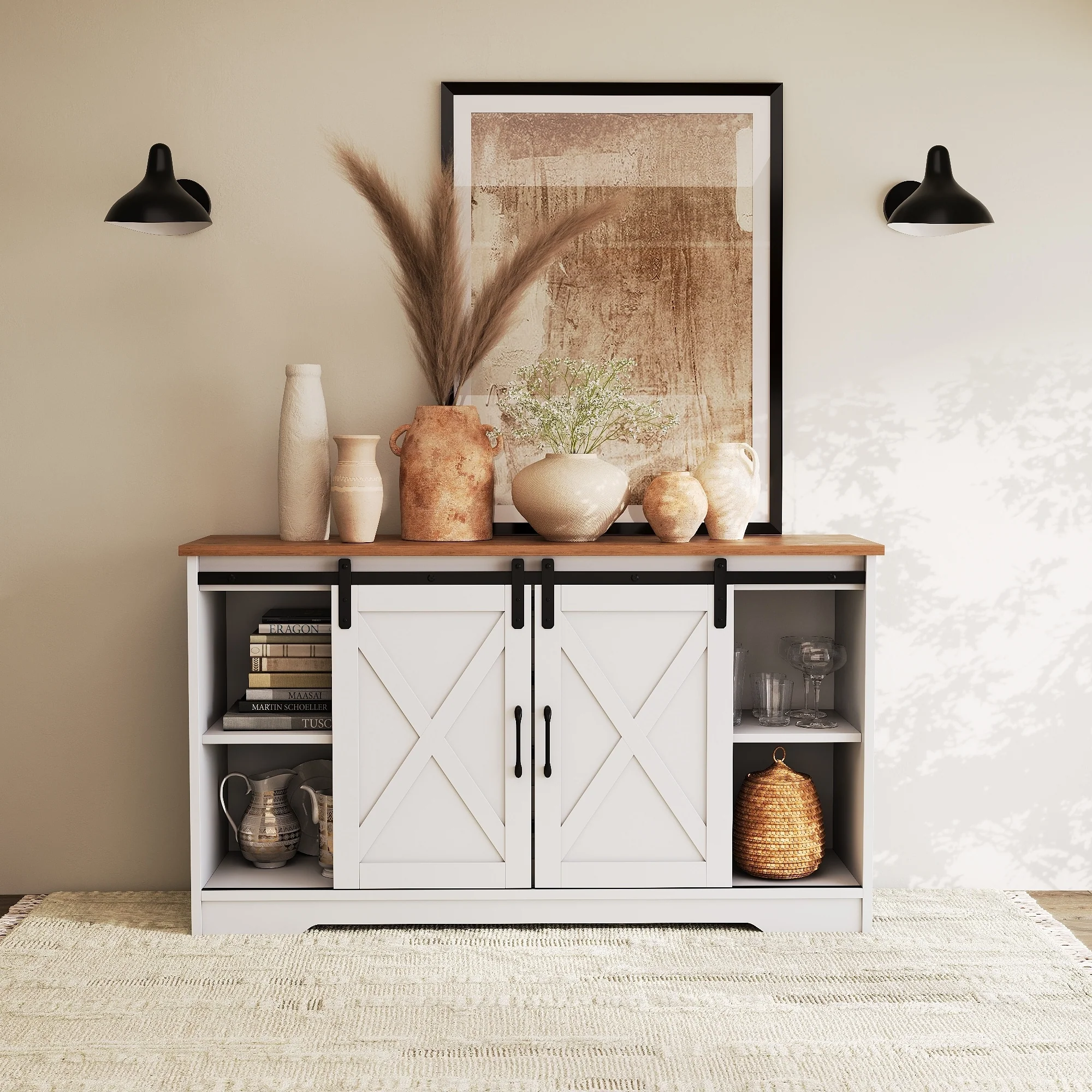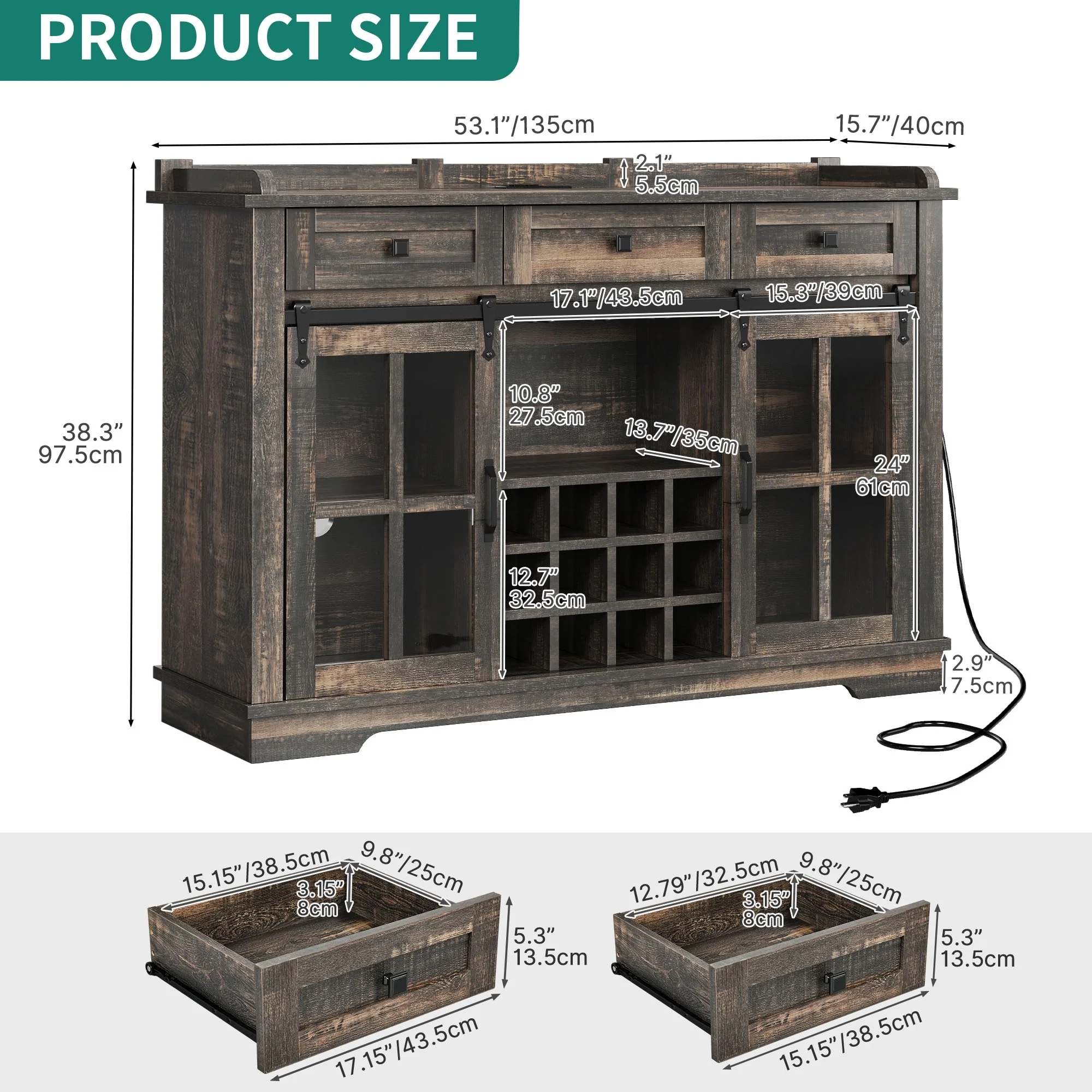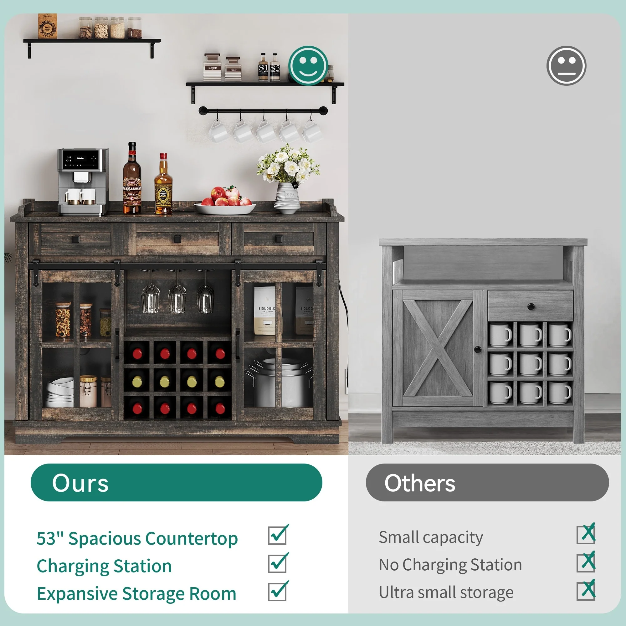 Moasis Sliding Barn Door Wine Bottle Storage with USB Ports and Outlets