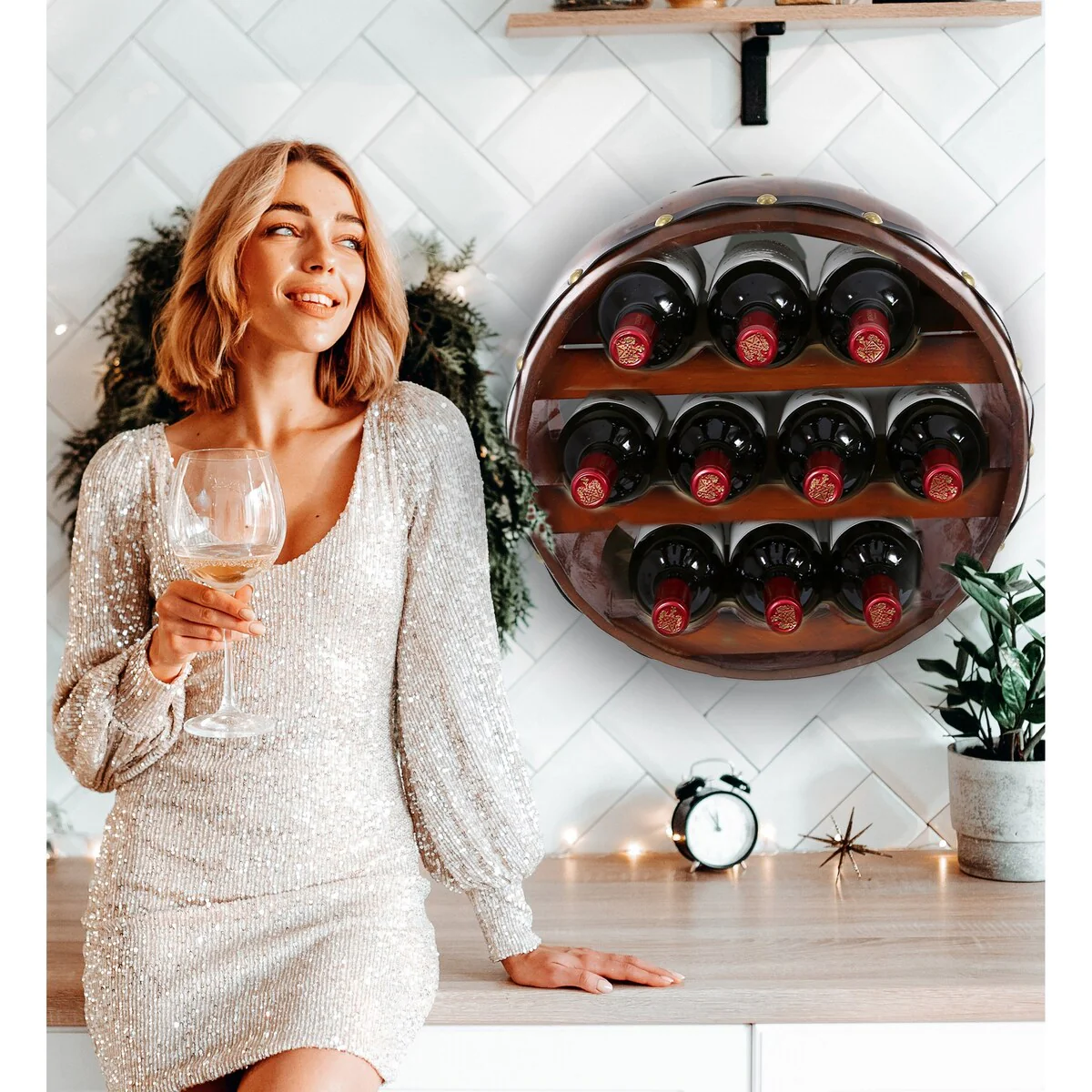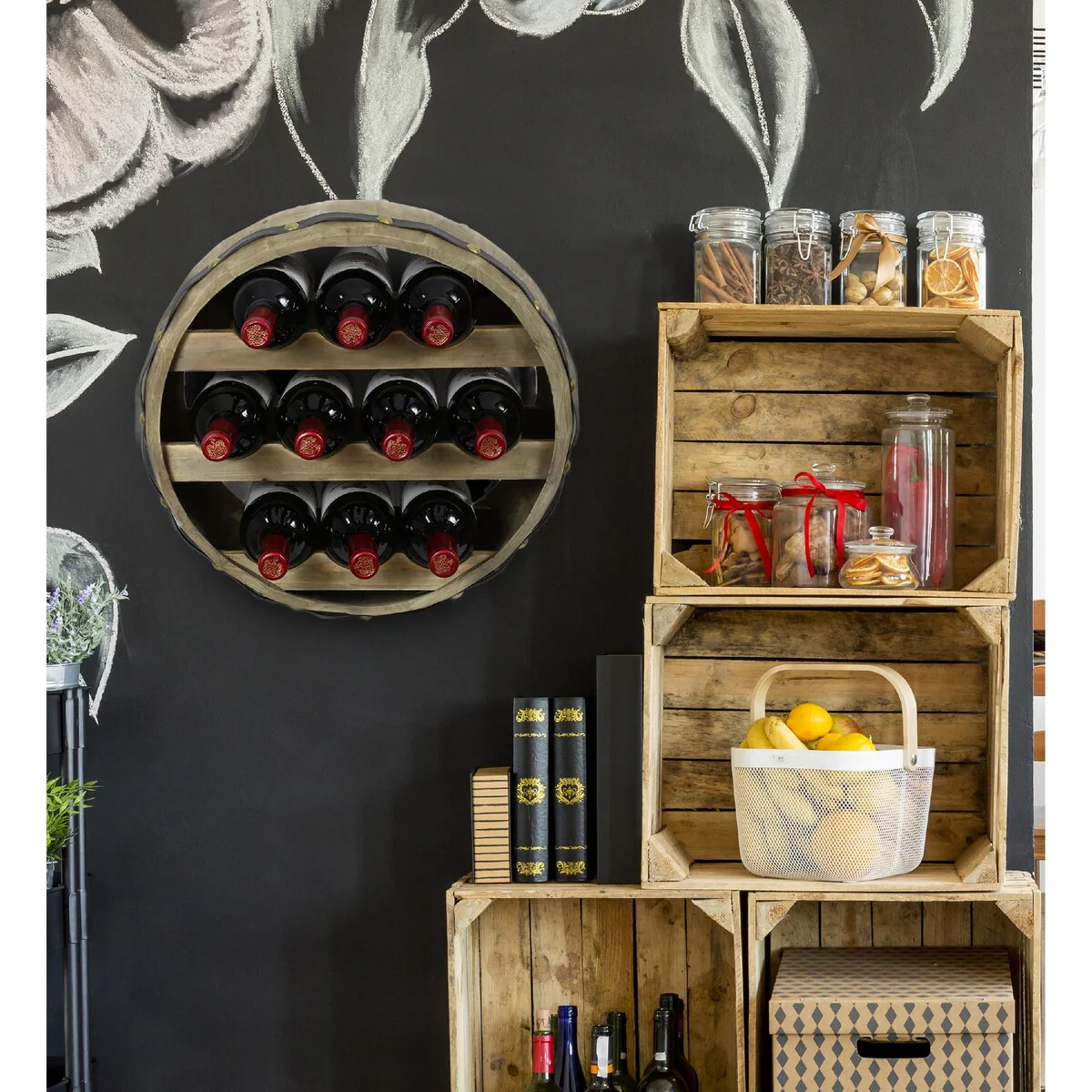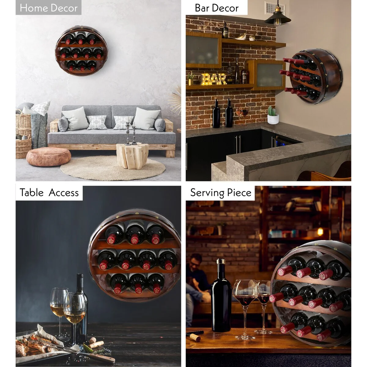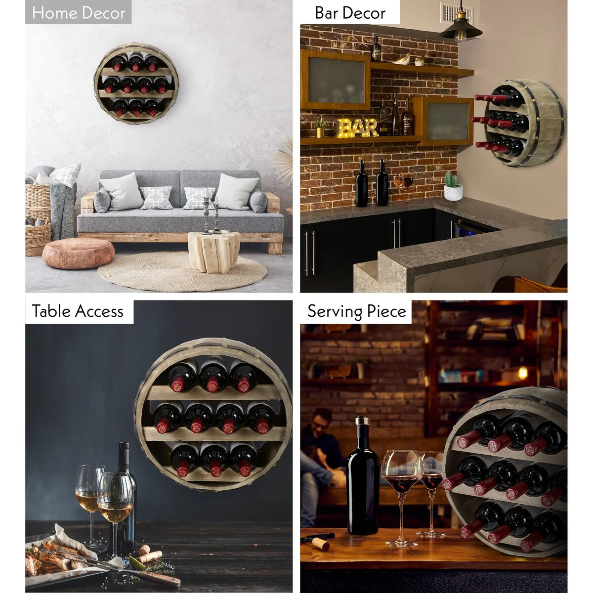 CoTa Global Barrell Wine Rack - Natural Wood Industrial Wall Mounted - 16″Lx16″Wx8″H