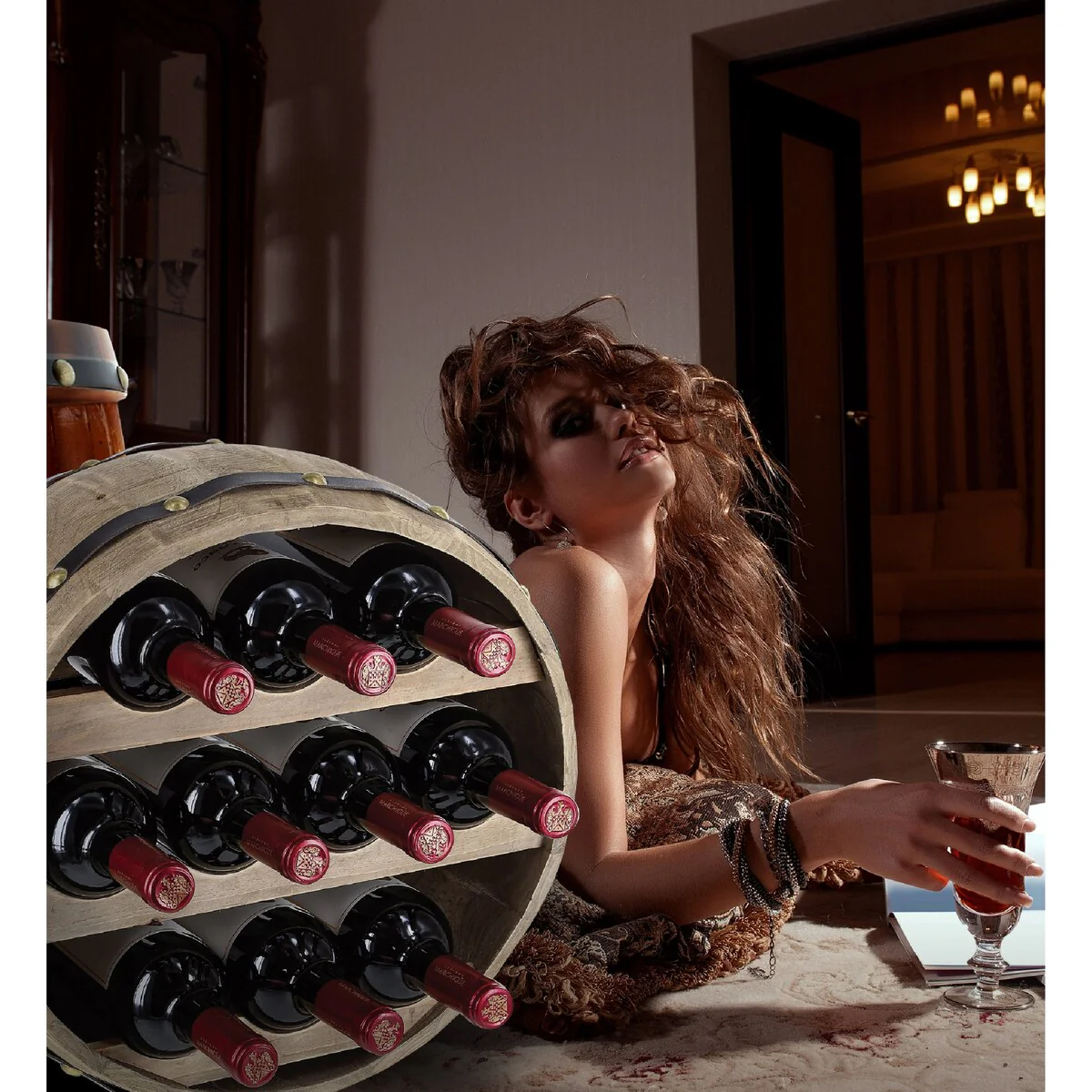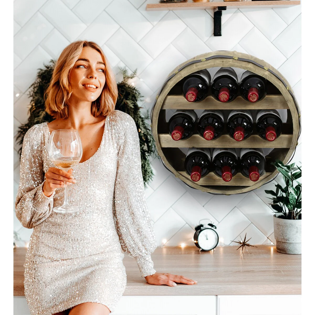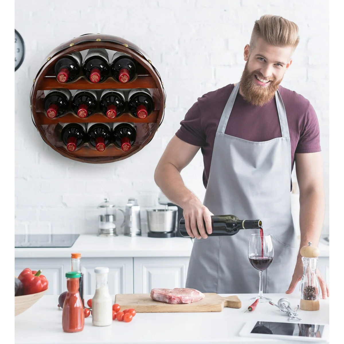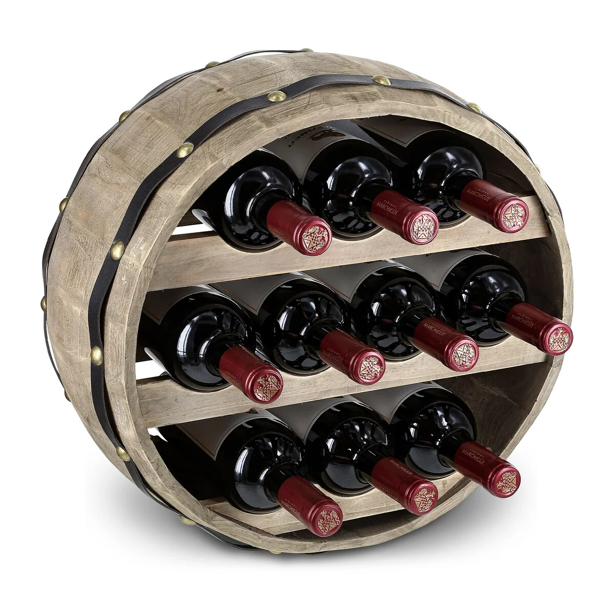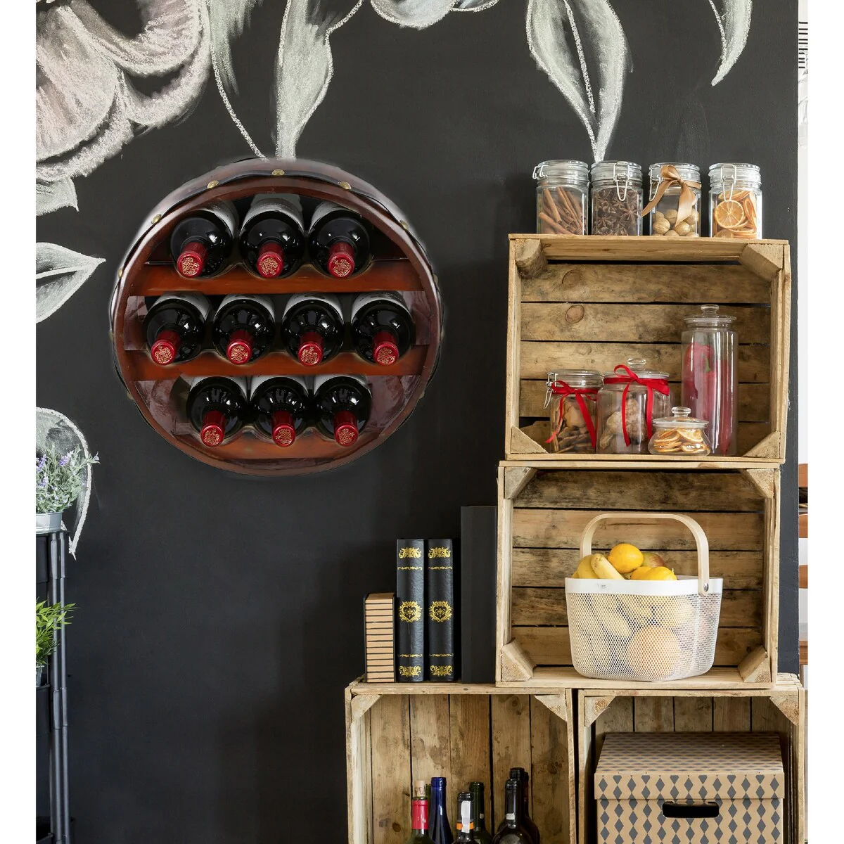 CoTa Global Barrell Wine Rack - Natural Wood Industrial Wall Mounted - 16″Lx16″Wx8″H