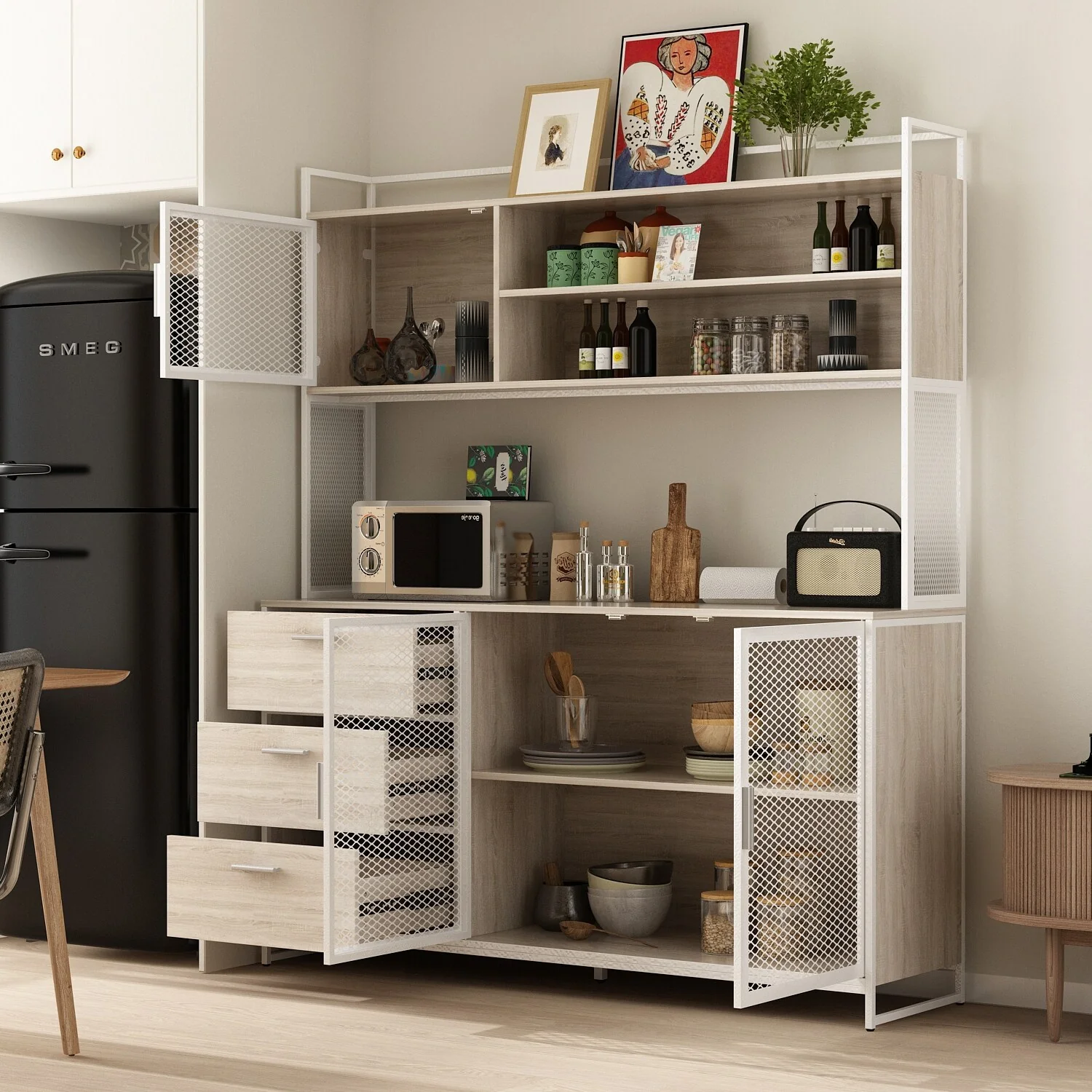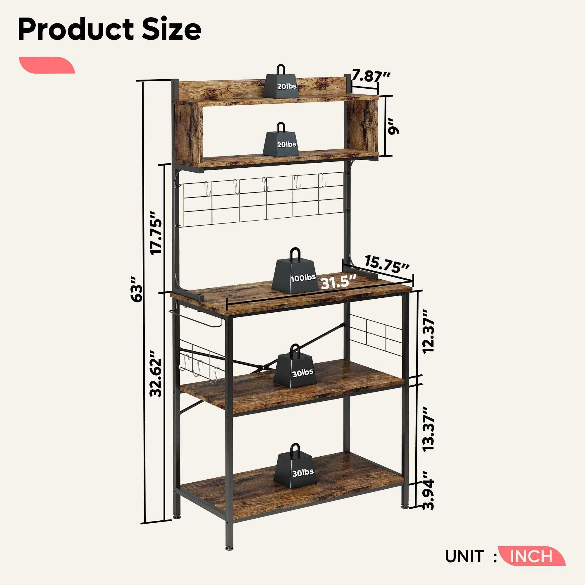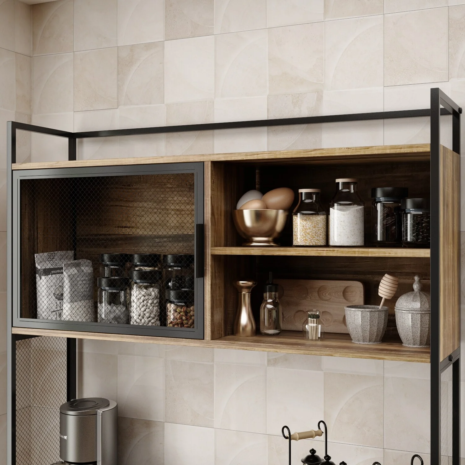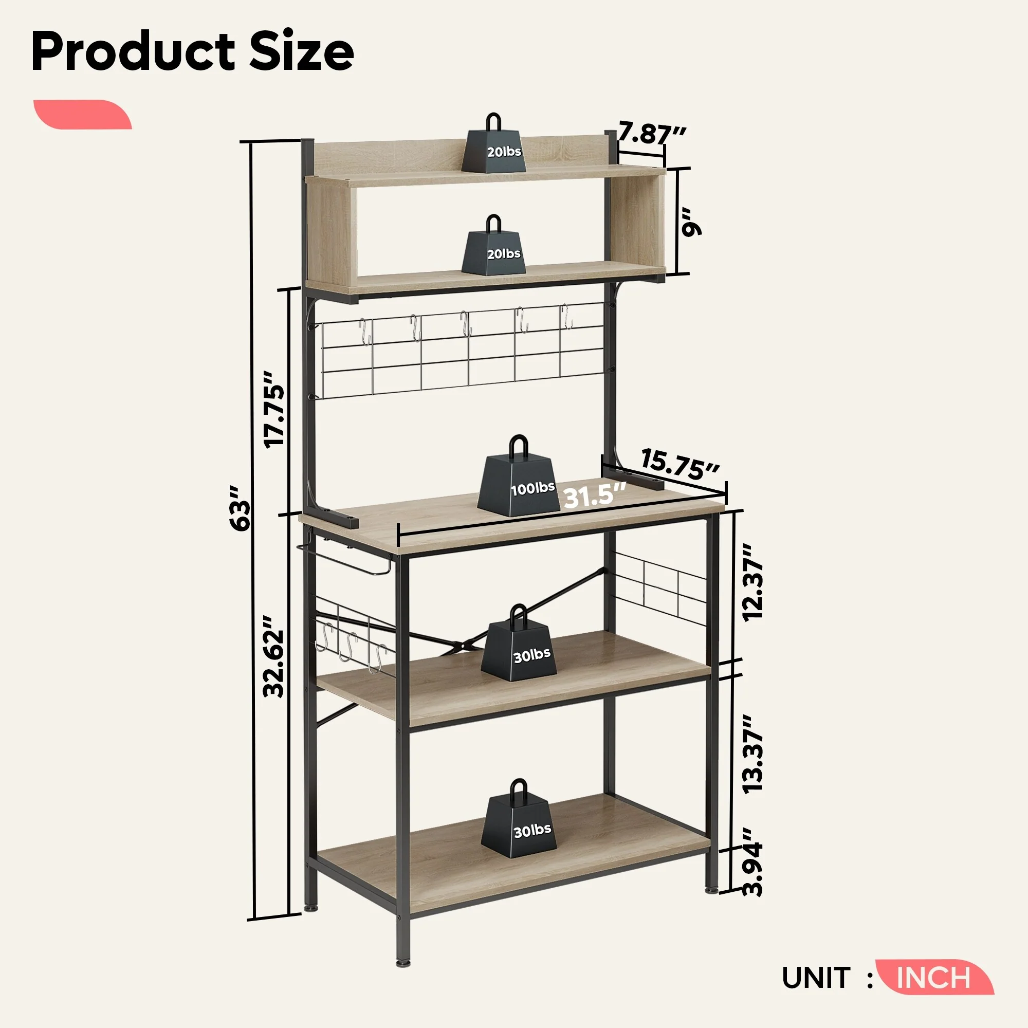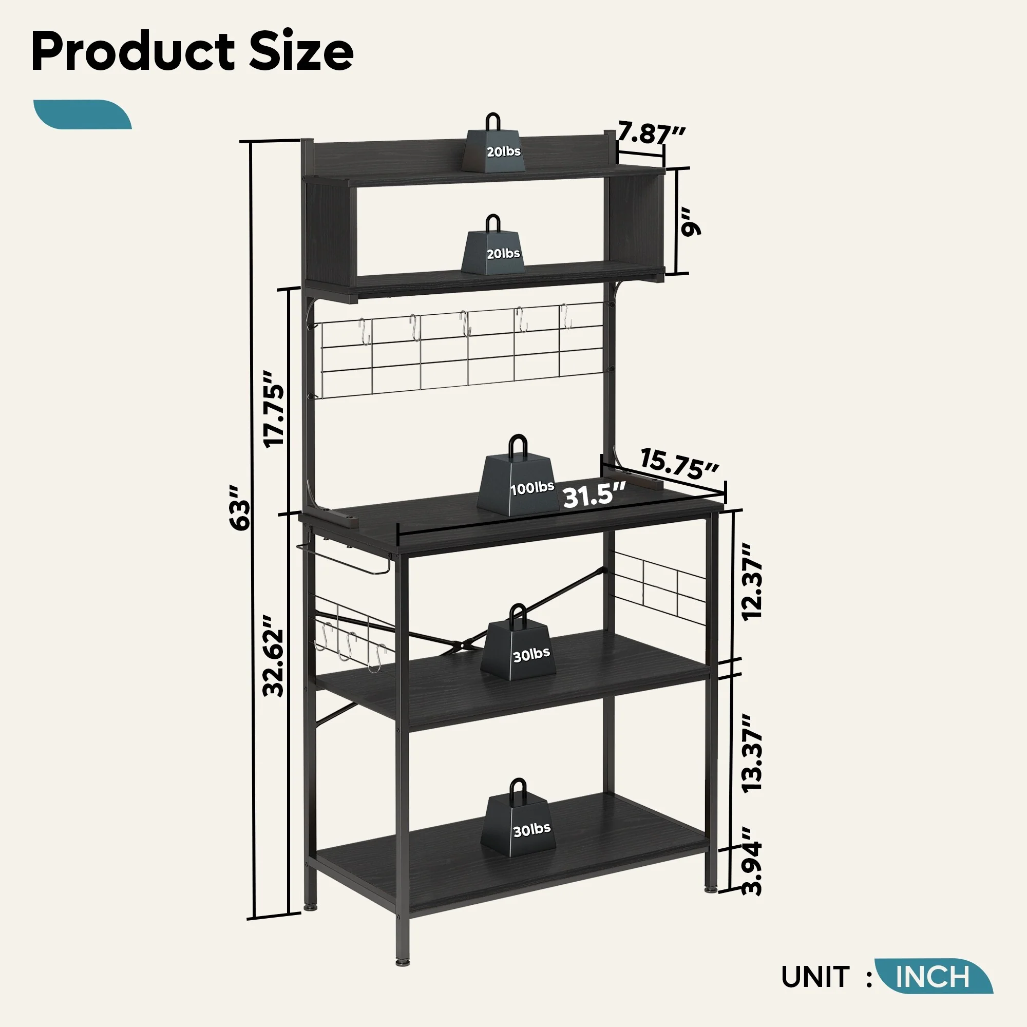 63 Inch Kitchen Baker's Rack with Hutch 8 Side Hooks