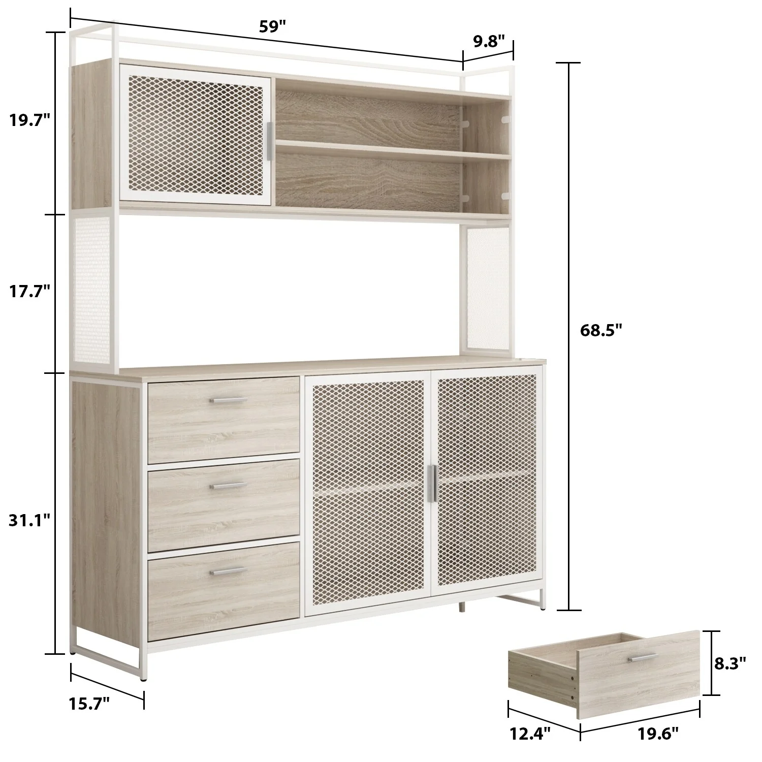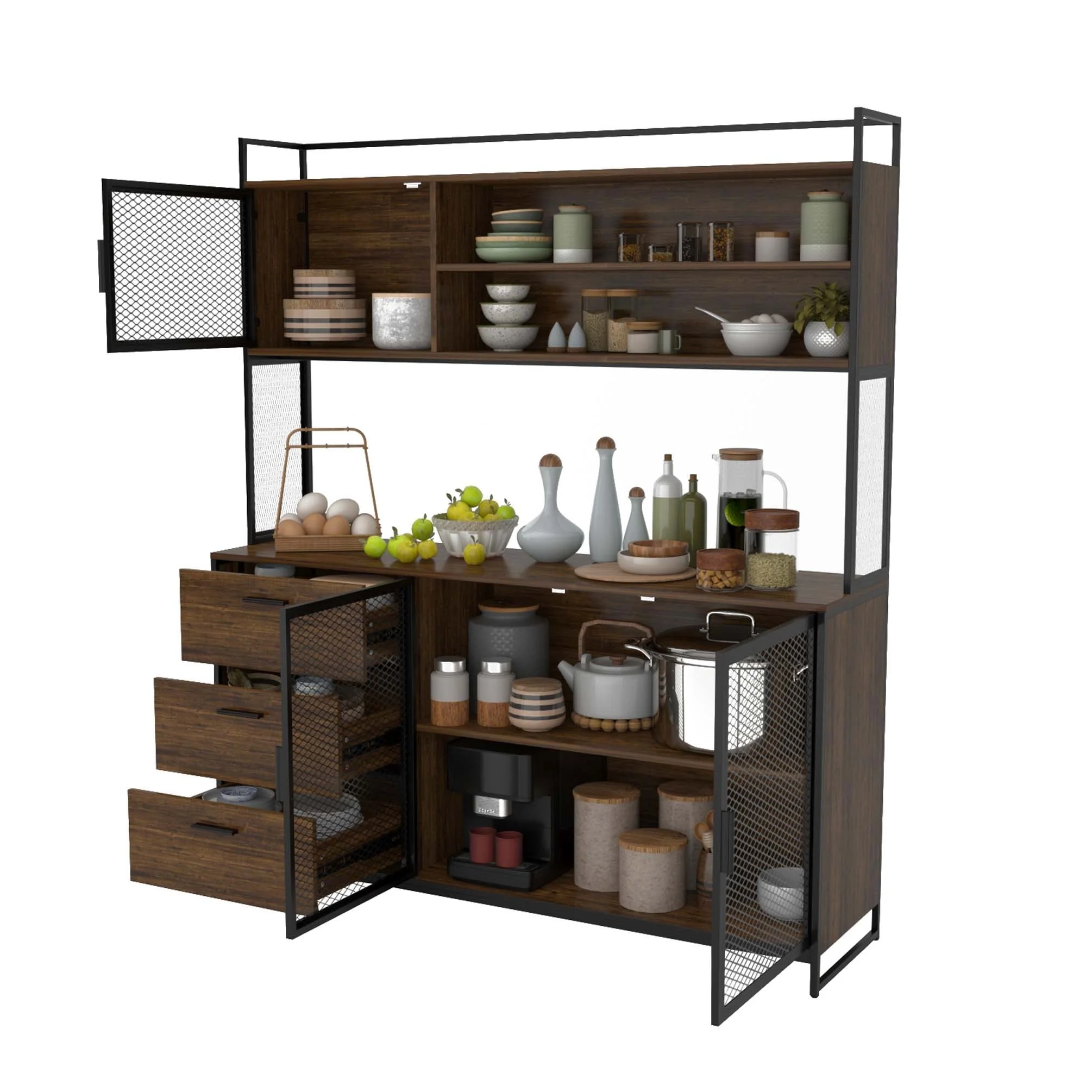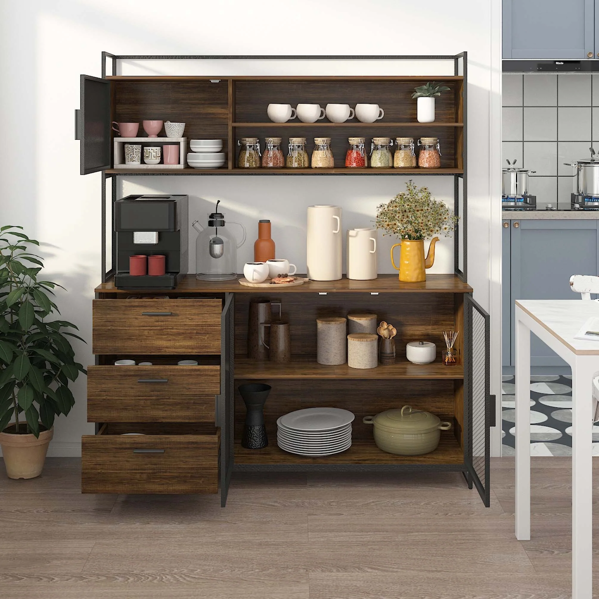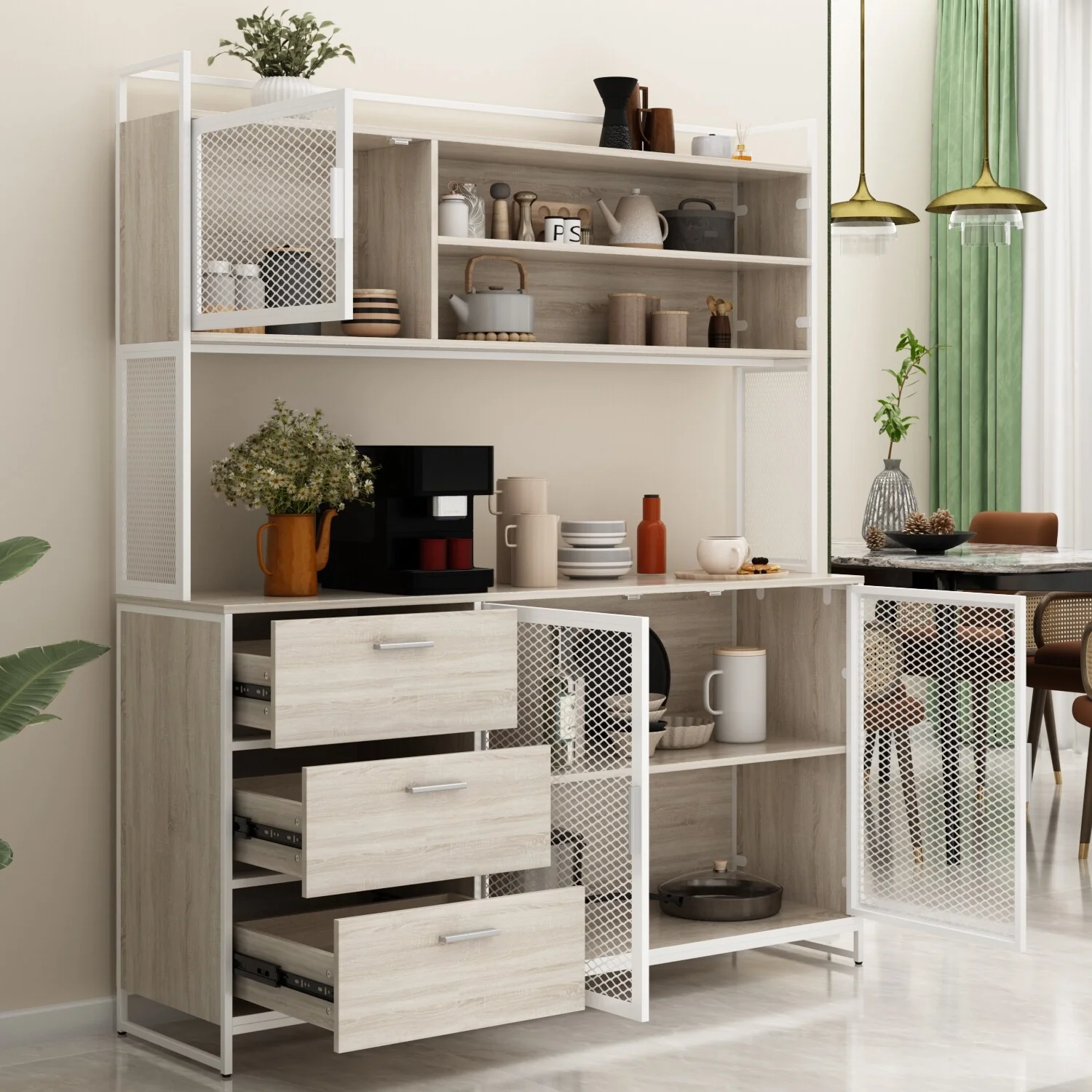63 Inch Kitchen Baker's Rack with Hutch 8 Side Hooks