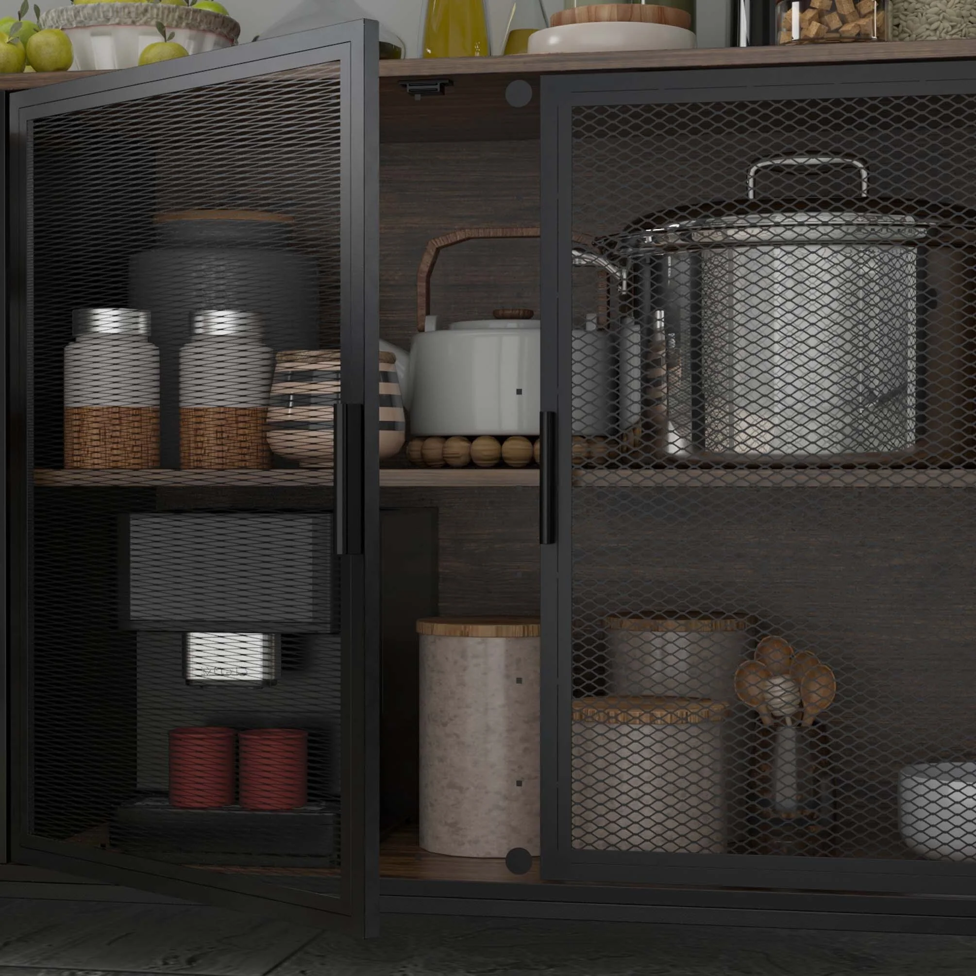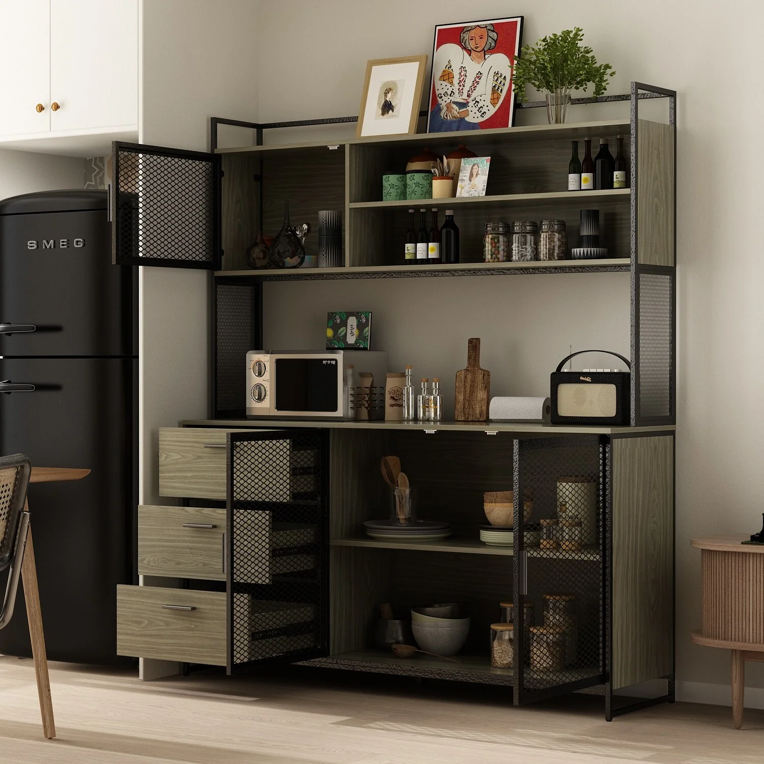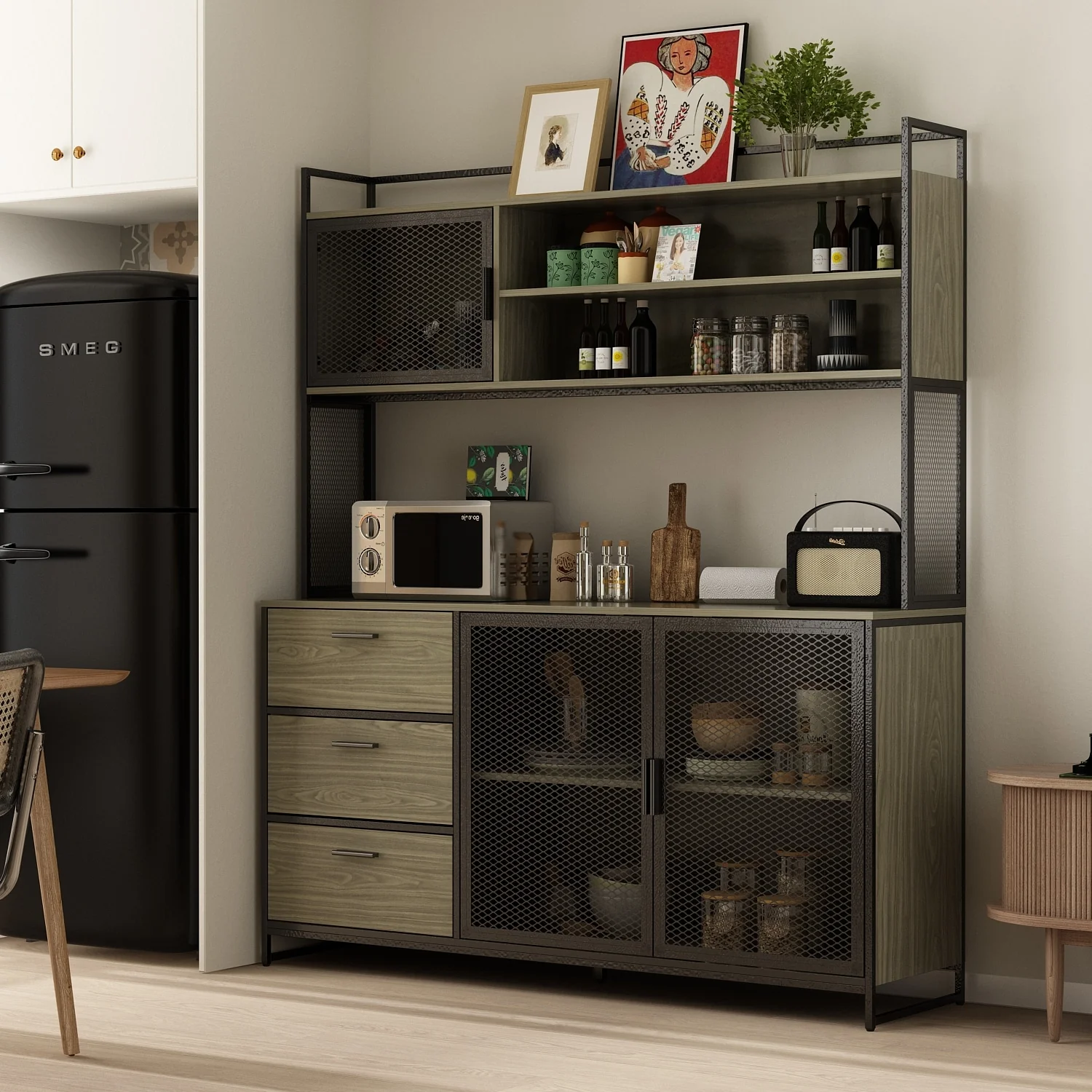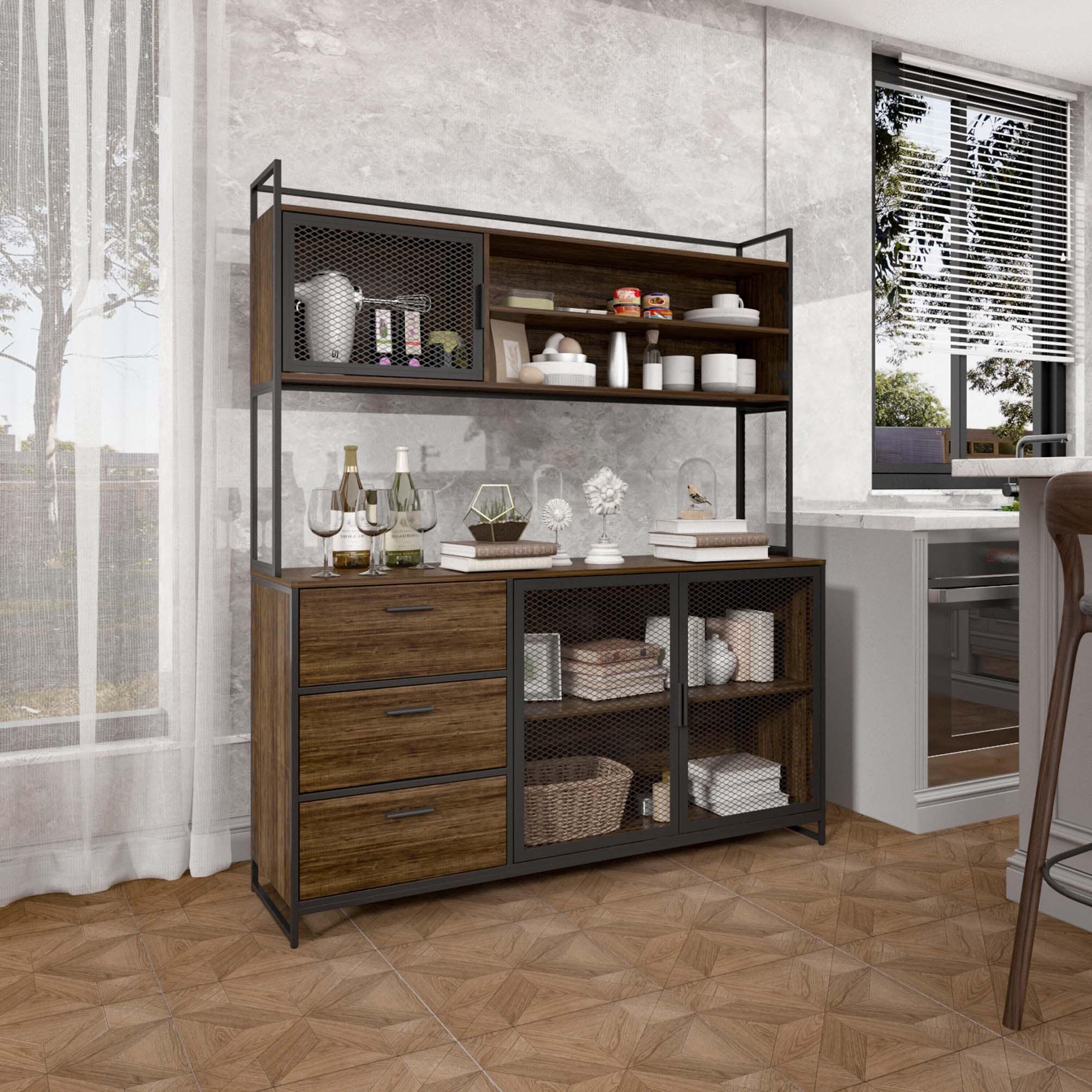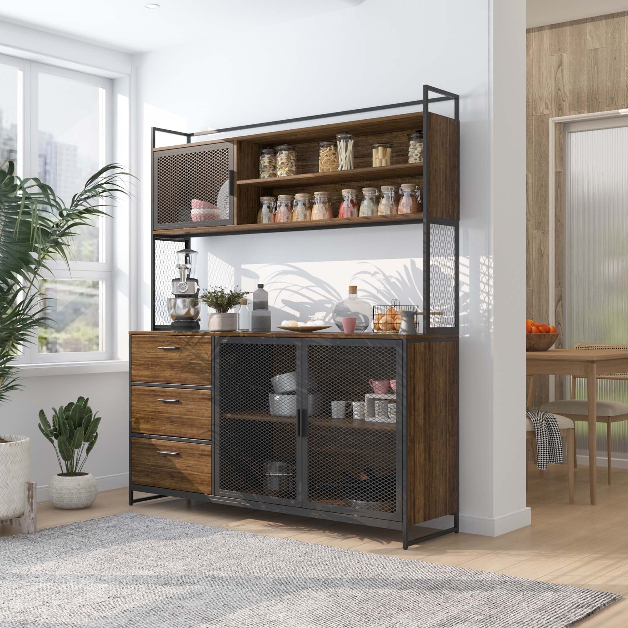 63 Inch Kitchen Baker's Rack with Hutch 8 Side Hooks