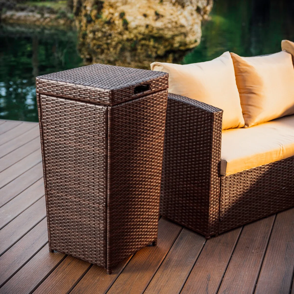 Nestl Outdoor Patio 30 Gallon Durable Wicher Trash Can with Lid