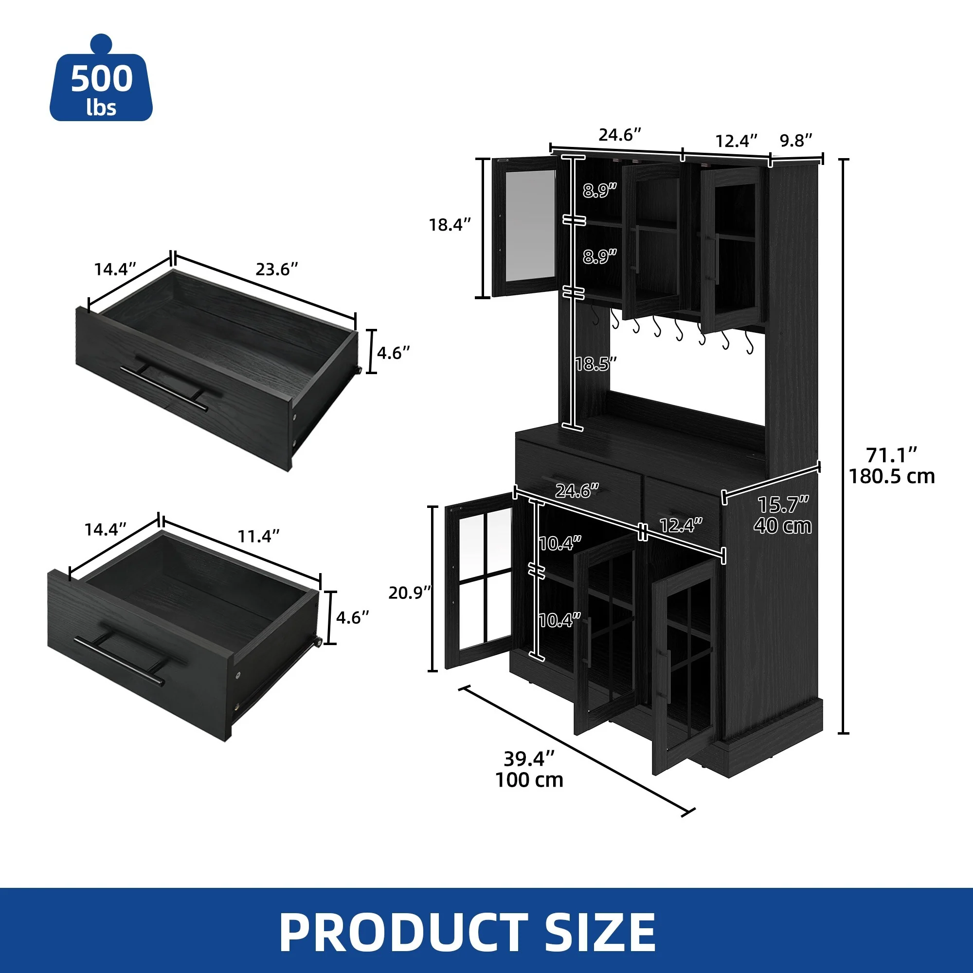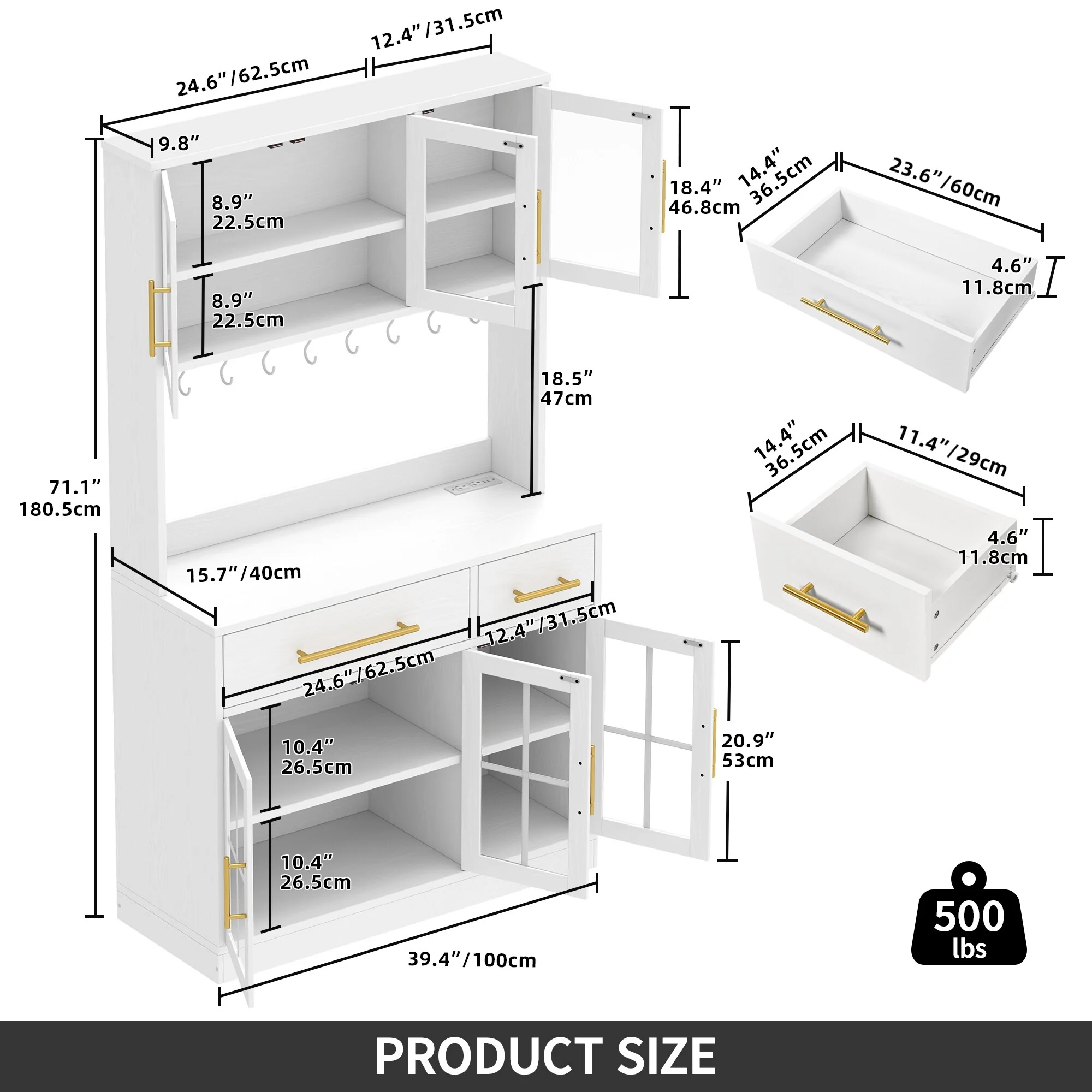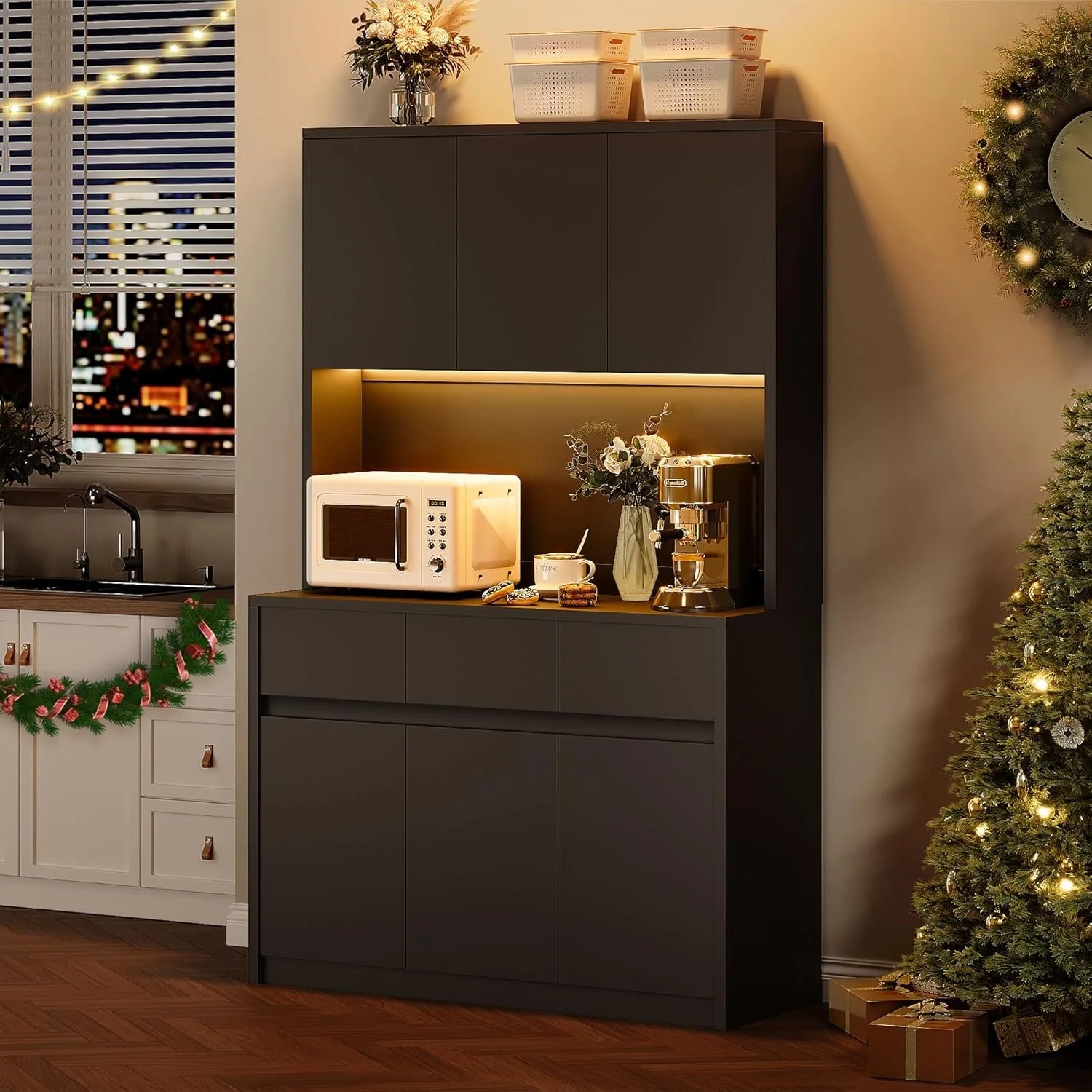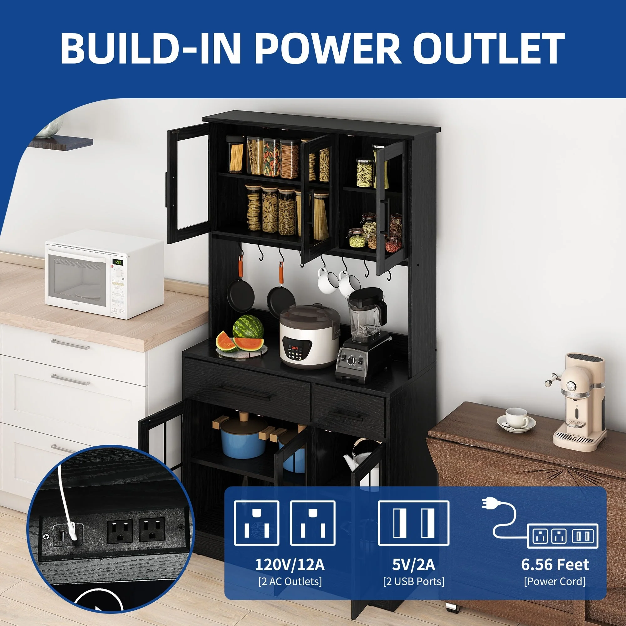 Moasis 71'' Kitchen Pantry Storage Cabinet Microwave Stand Hutch Cabinet with Power Outlet