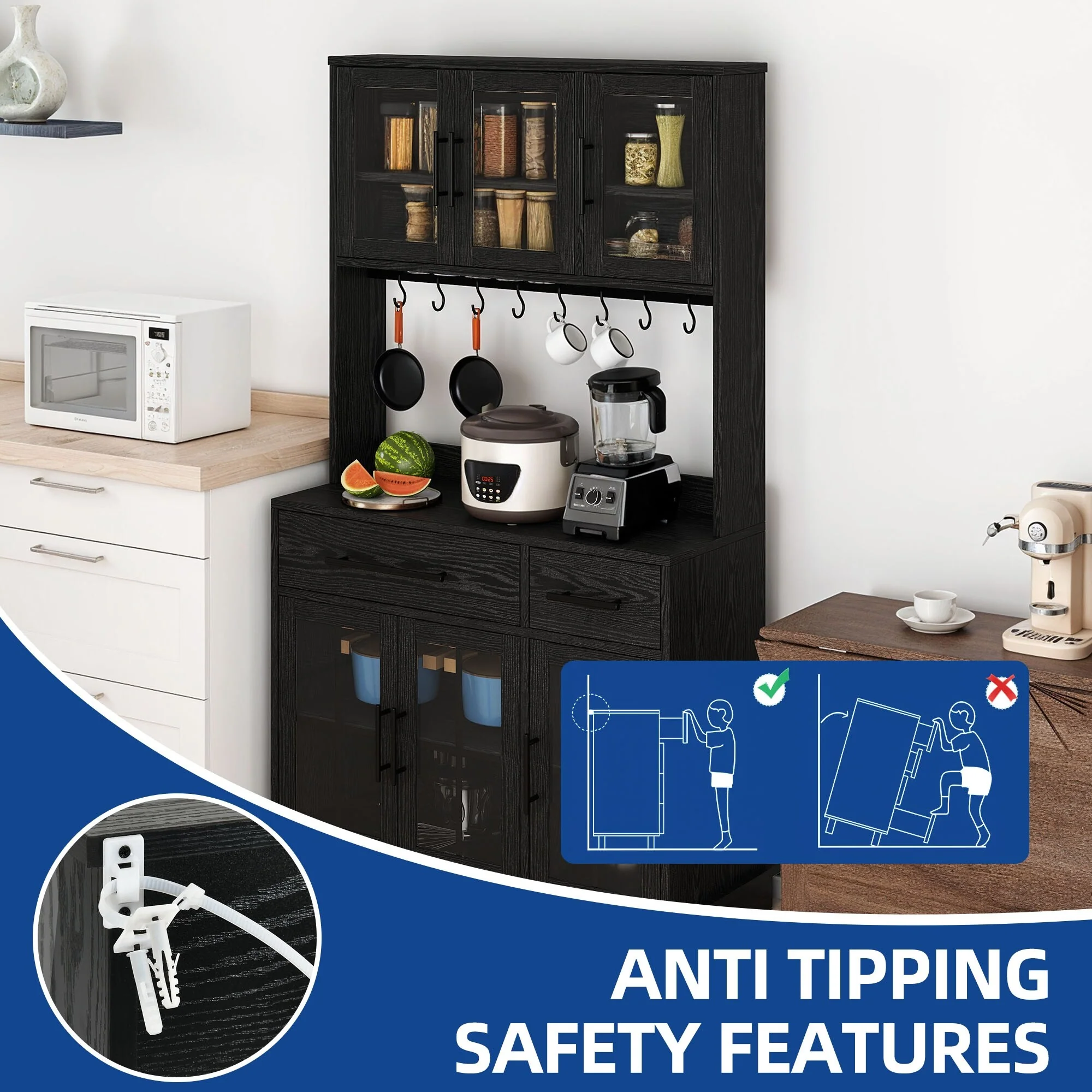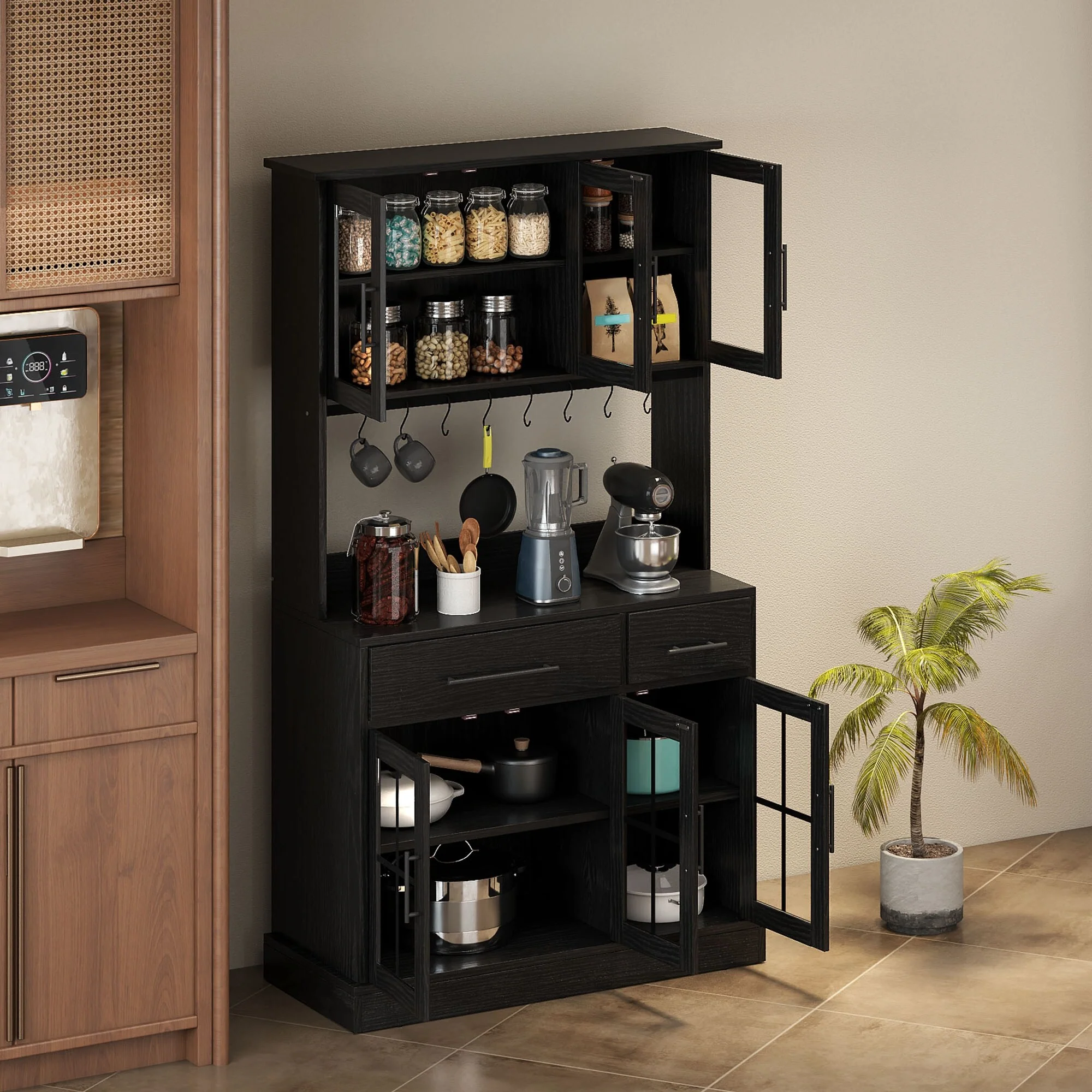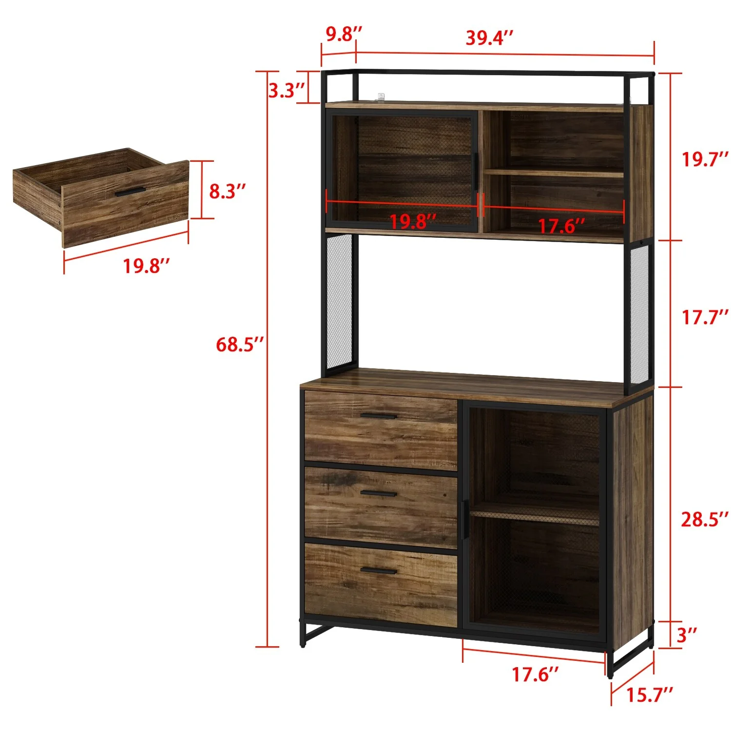 Moasis 71'' Kitchen Pantry Storage Cabinet Microwave Stand Hutch Cabinet with Power Outlet