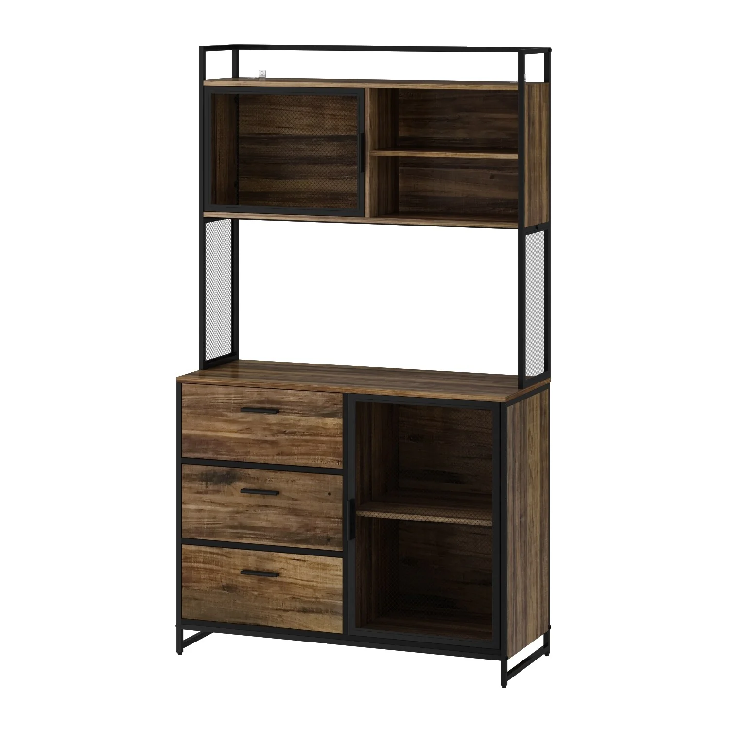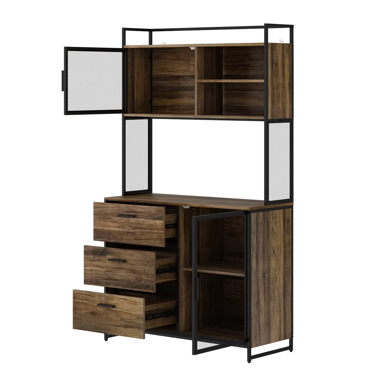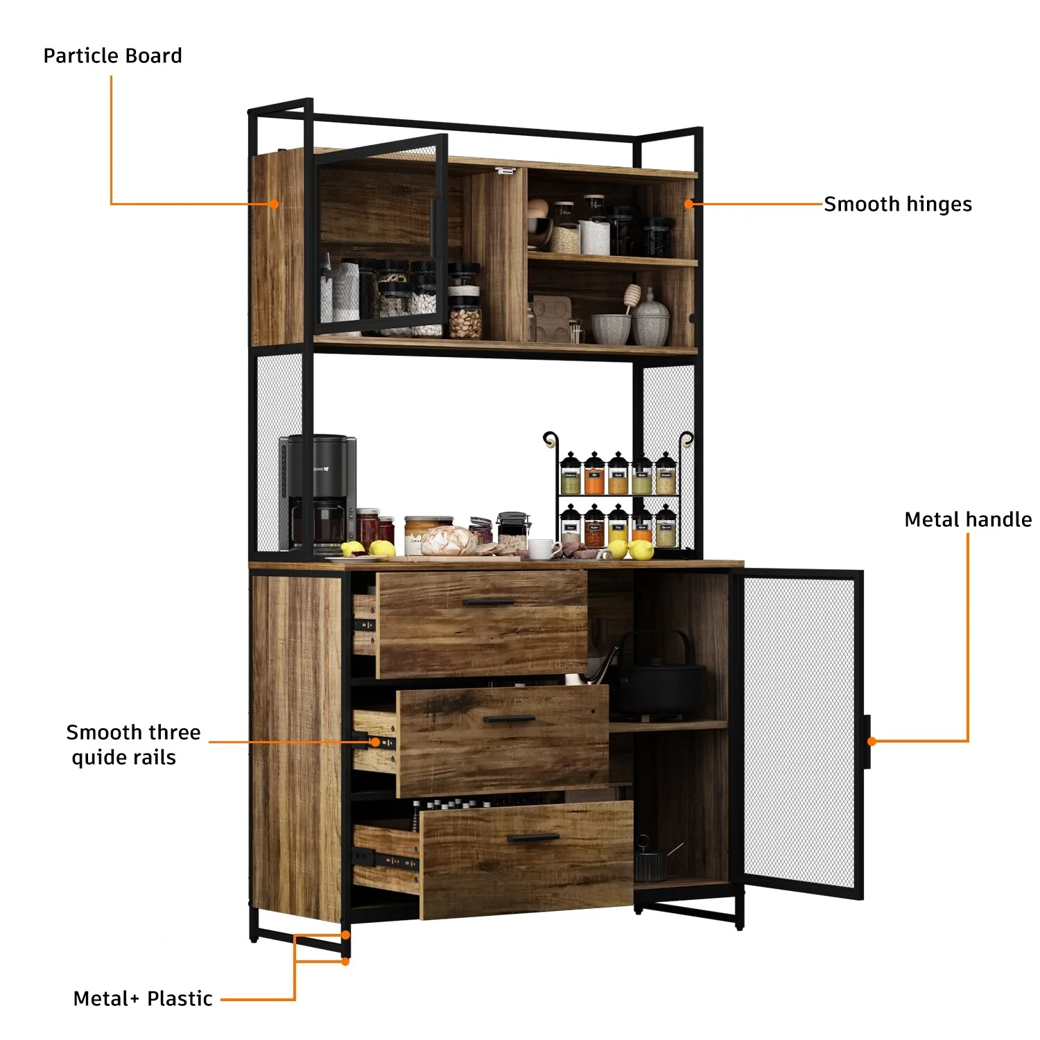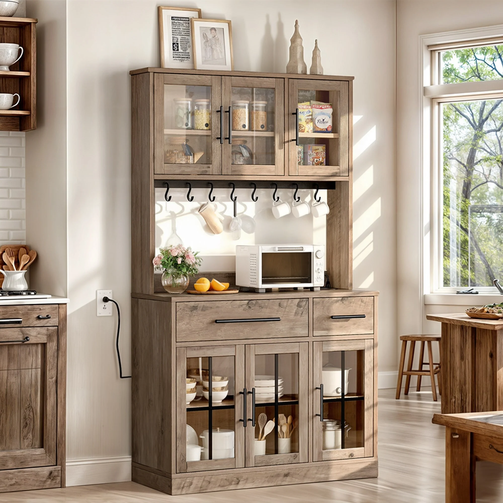 Moasis 71'' Kitchen Pantry Storage Cabinet Microwave Stand Hutch Cabinet with Power Outlet