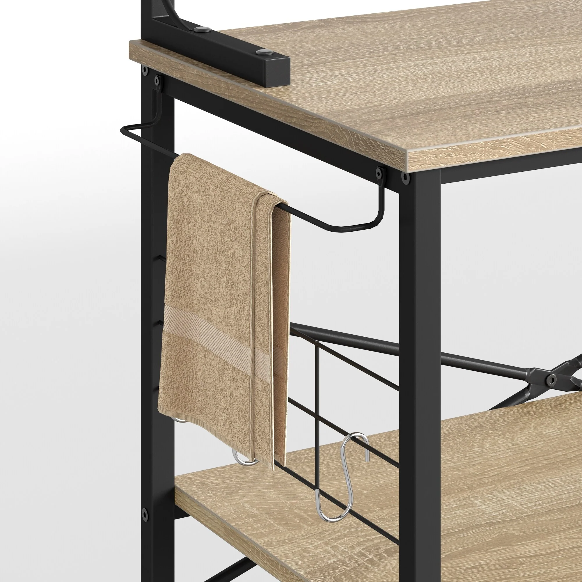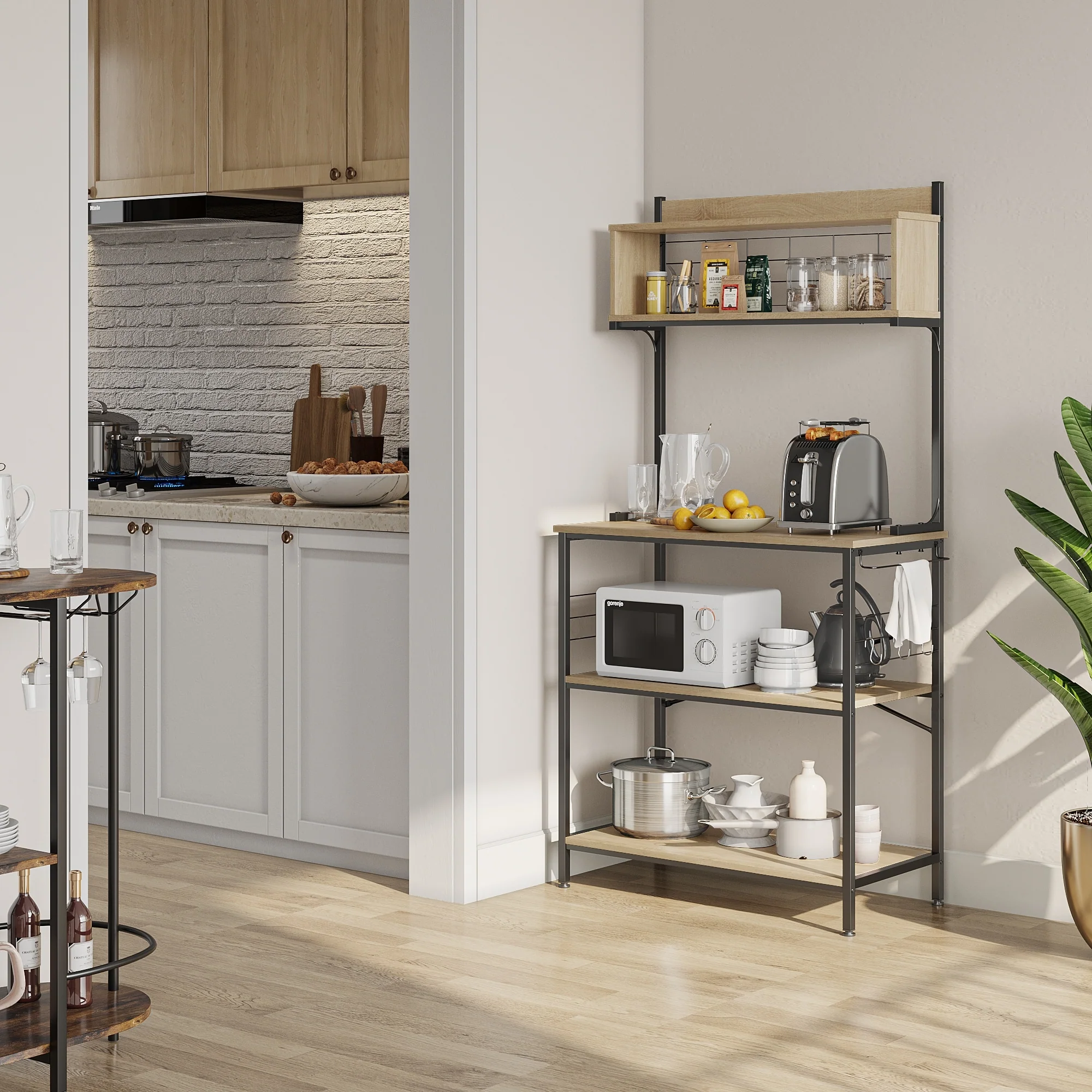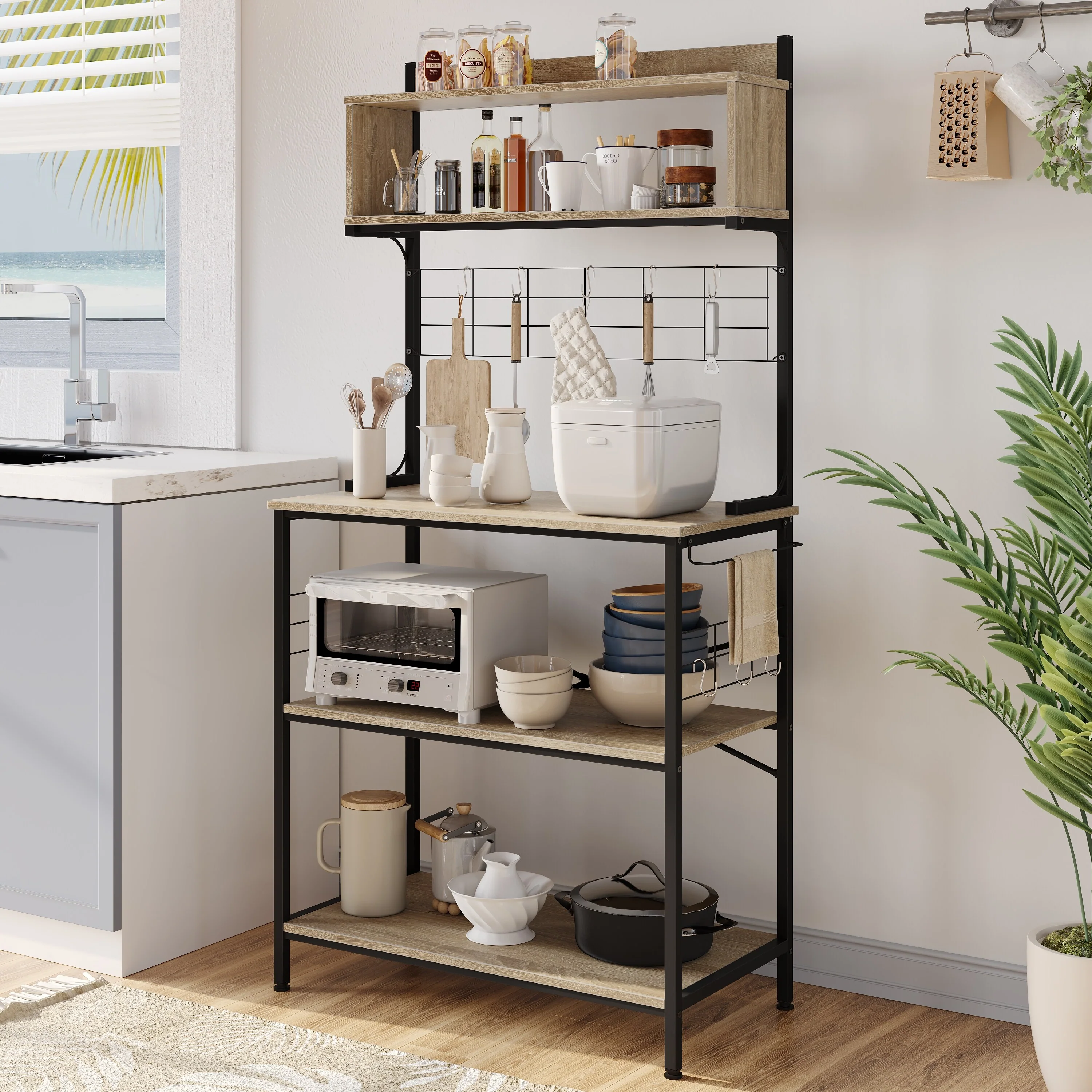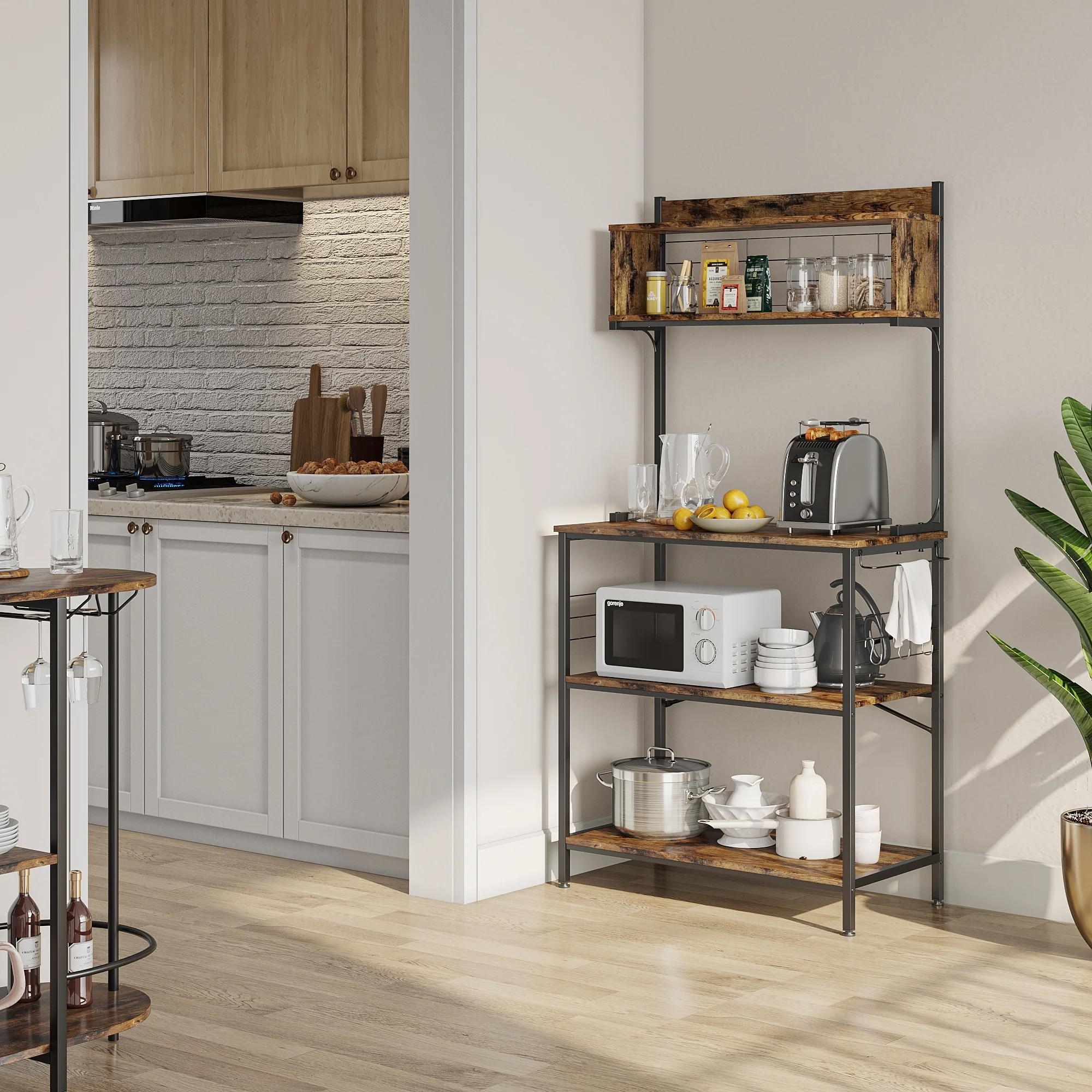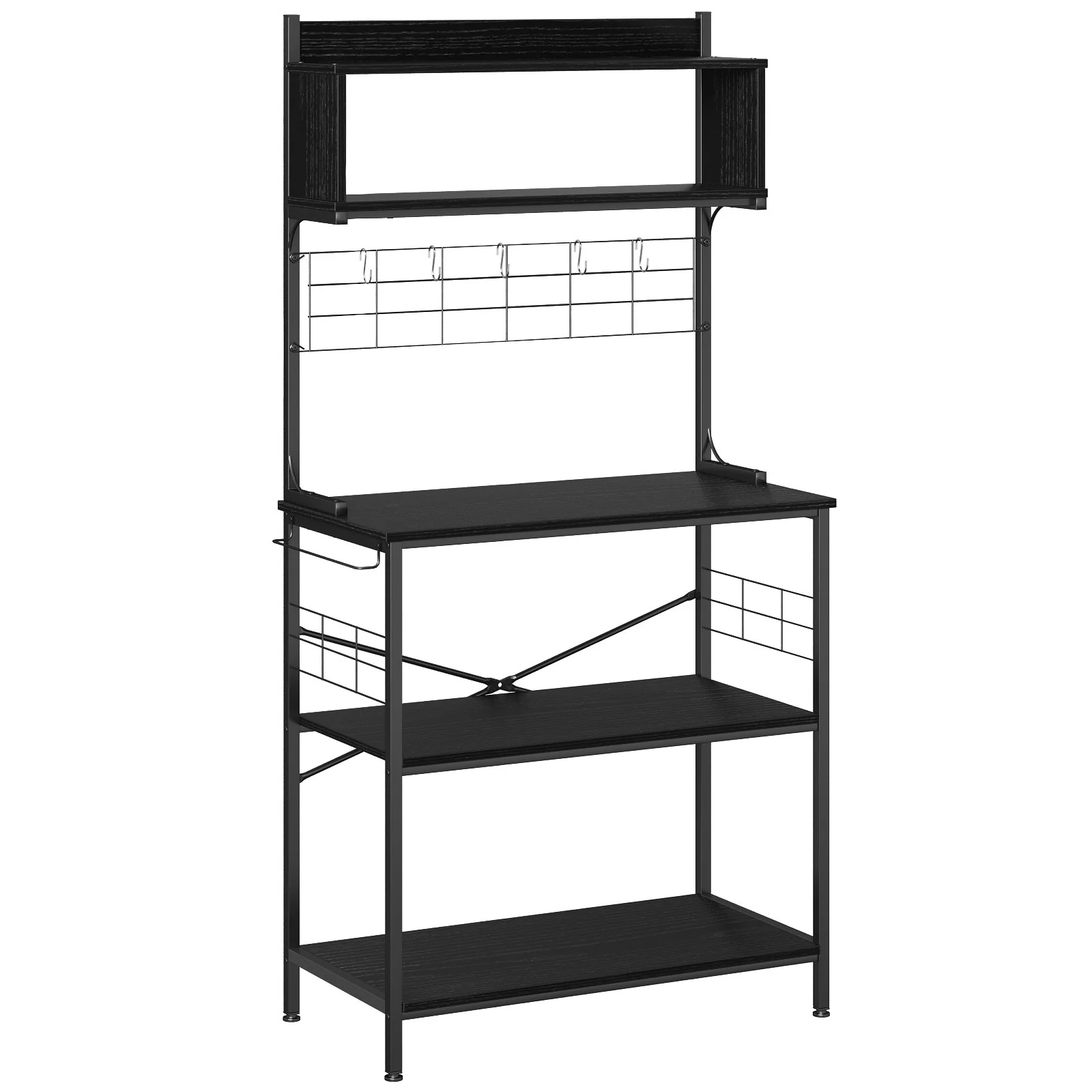 4-Tier Bakers Rack Kitchen Rack Stand with Hooks and Mesh Panel