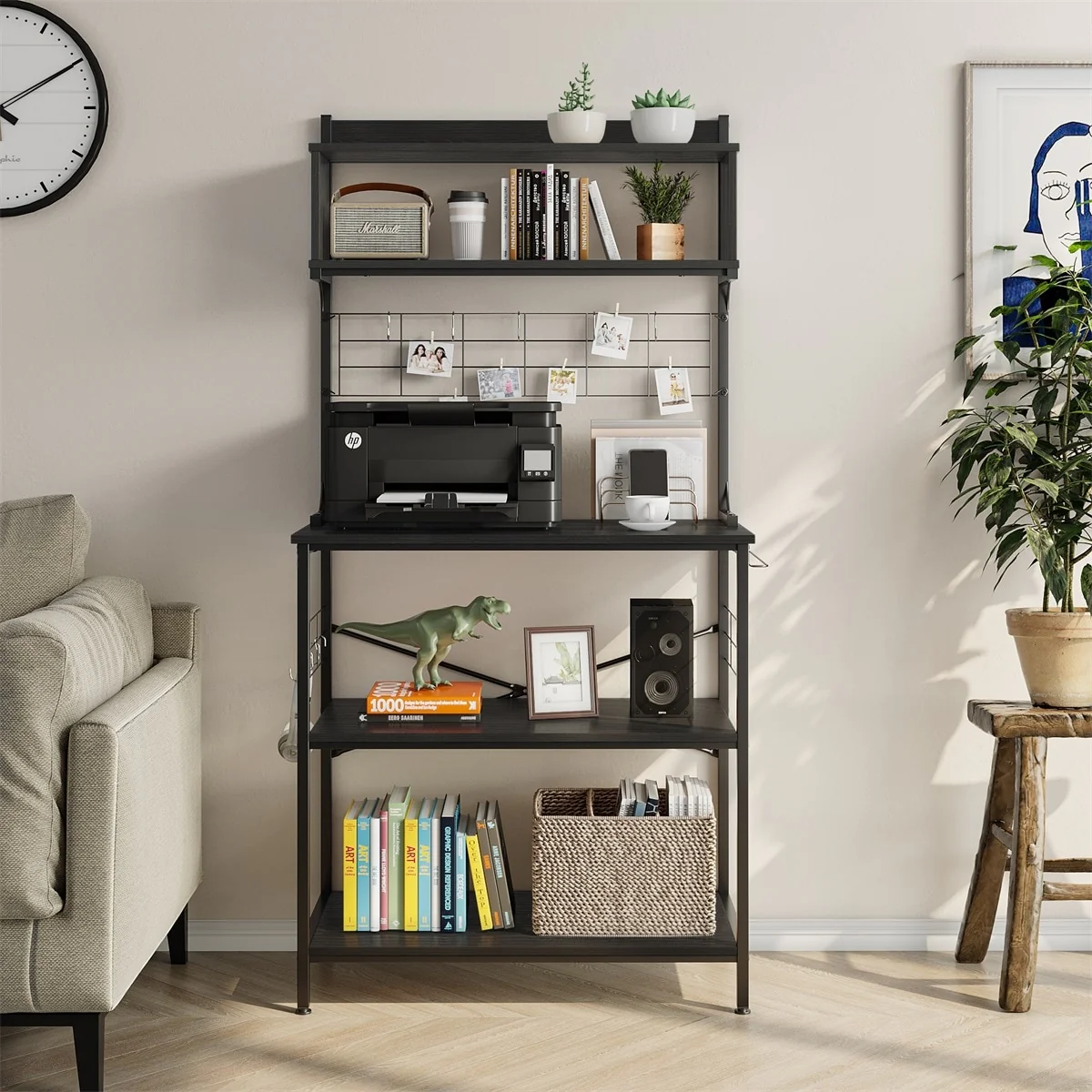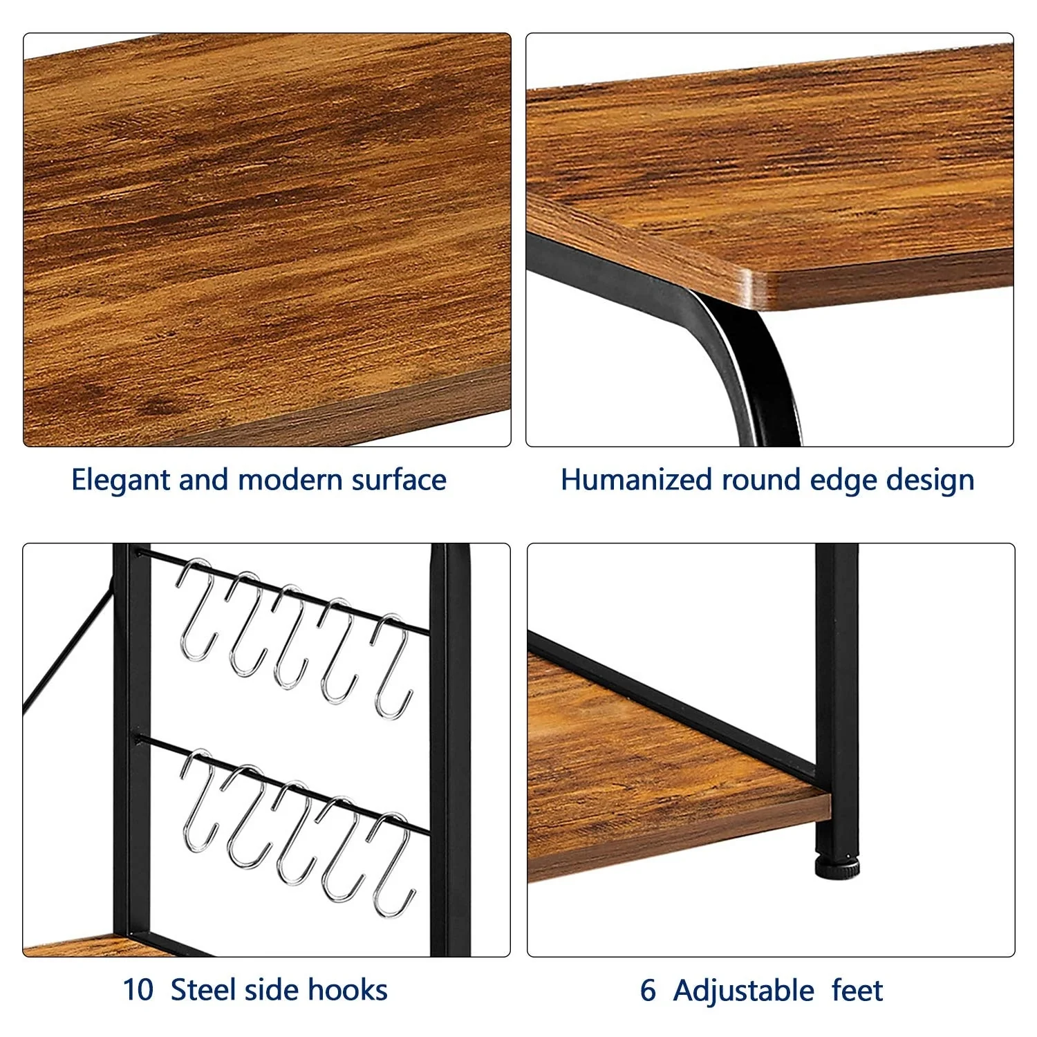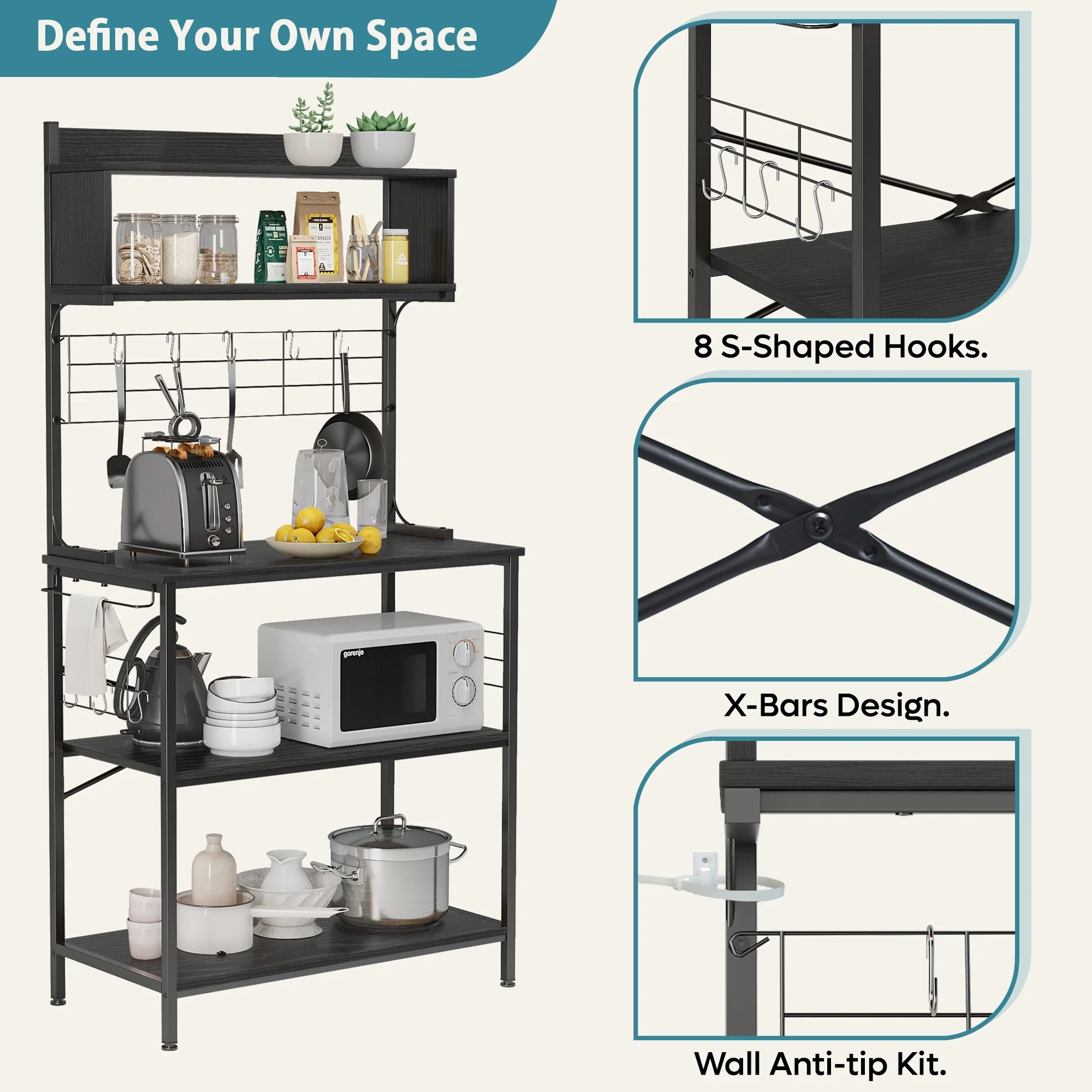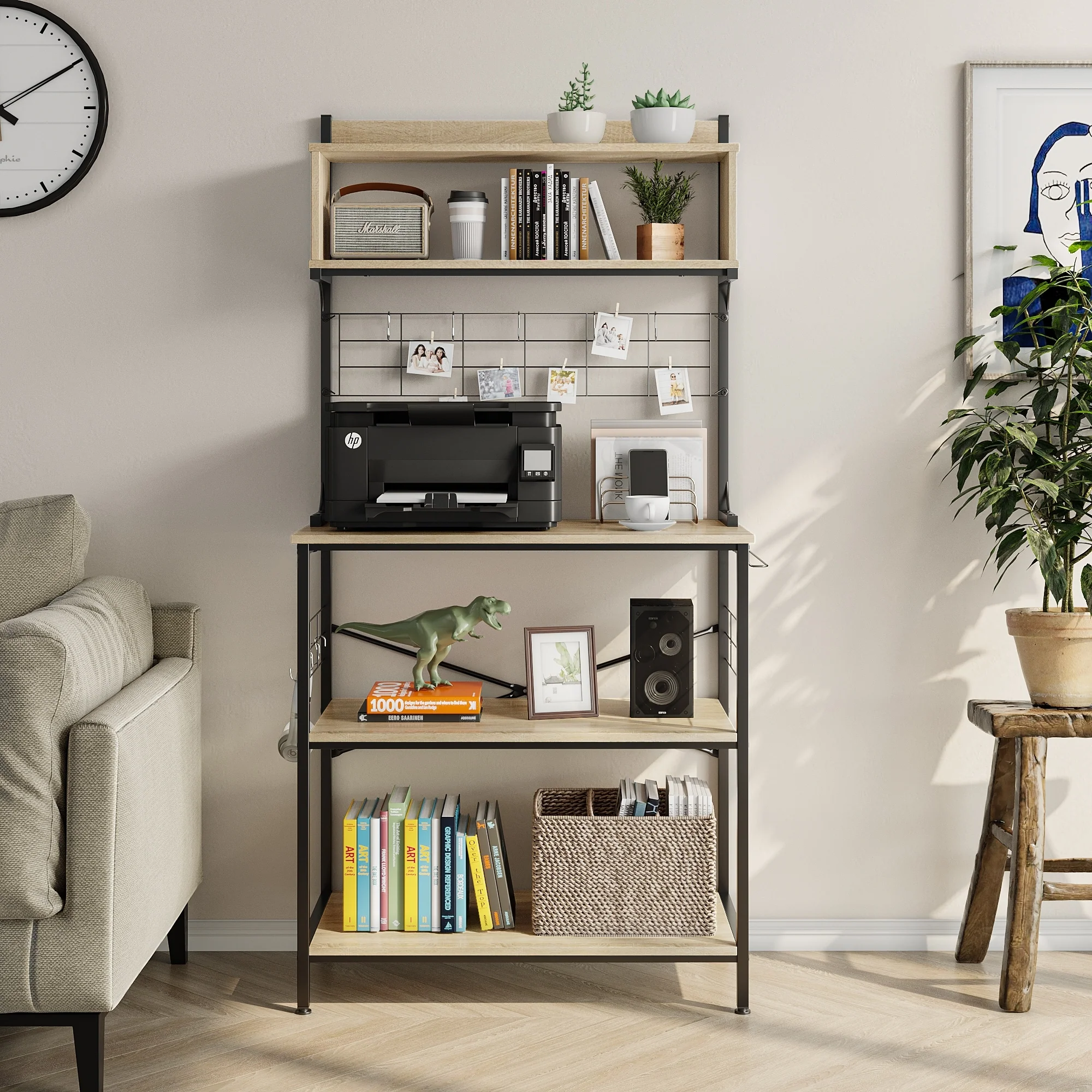 4-Tier Bakers Rack Kitchen Rack Stand with Hooks and Mesh Panel