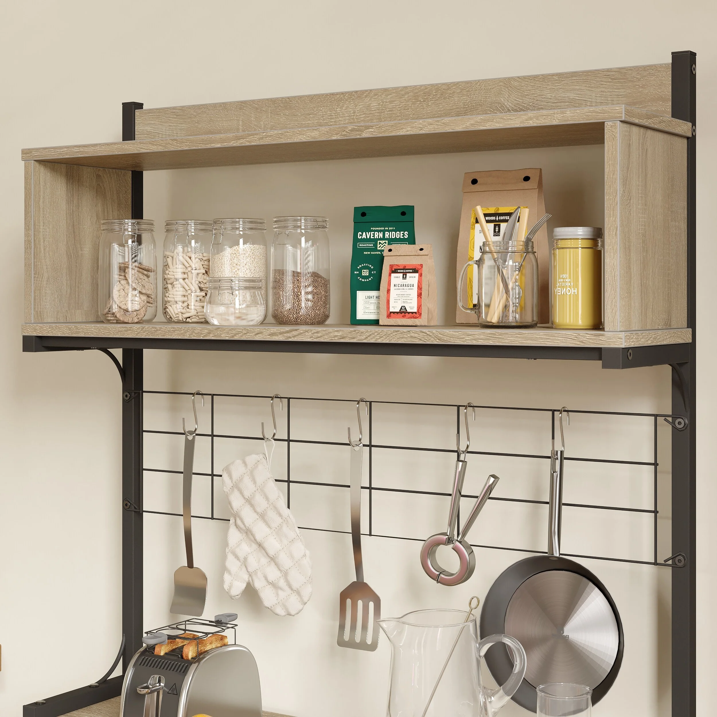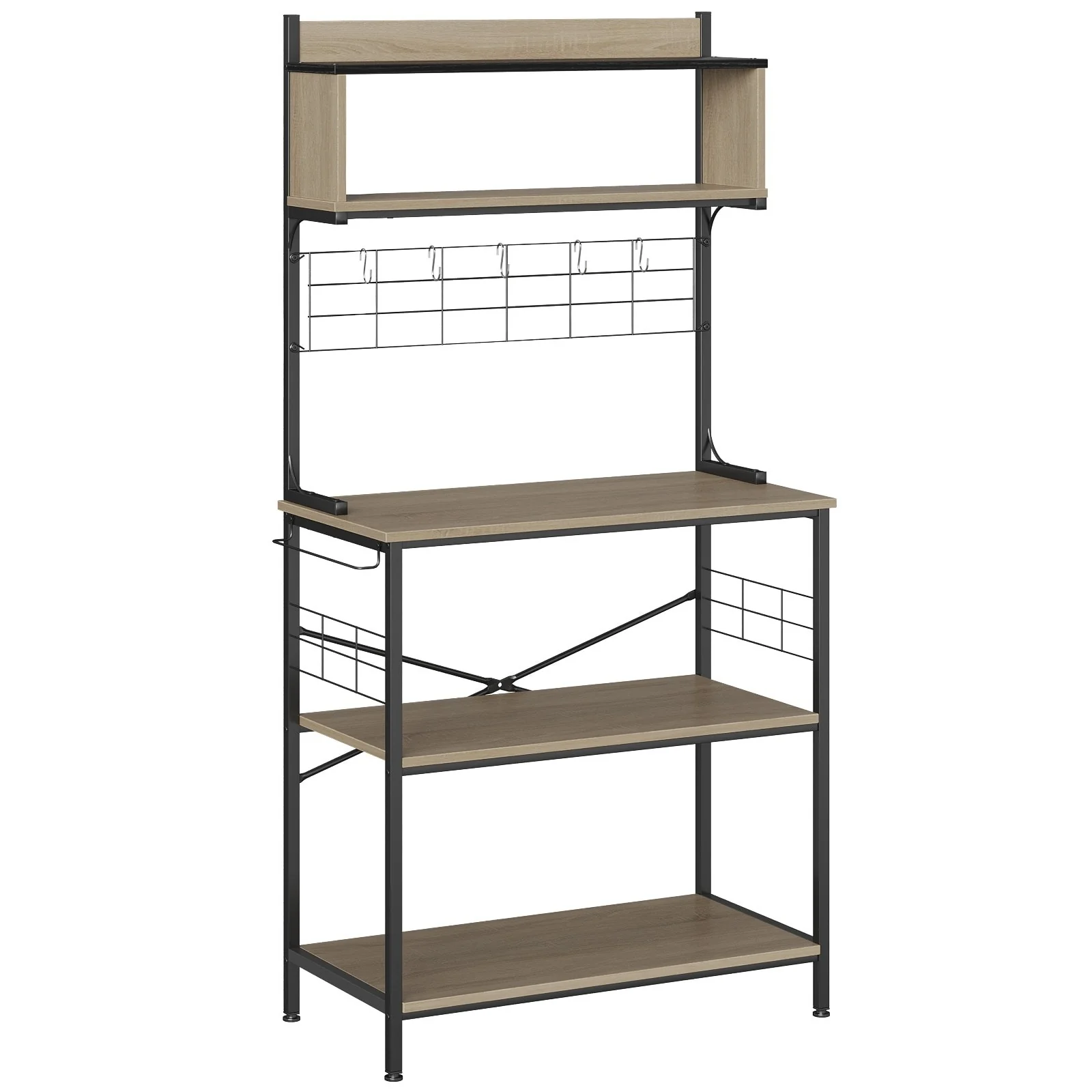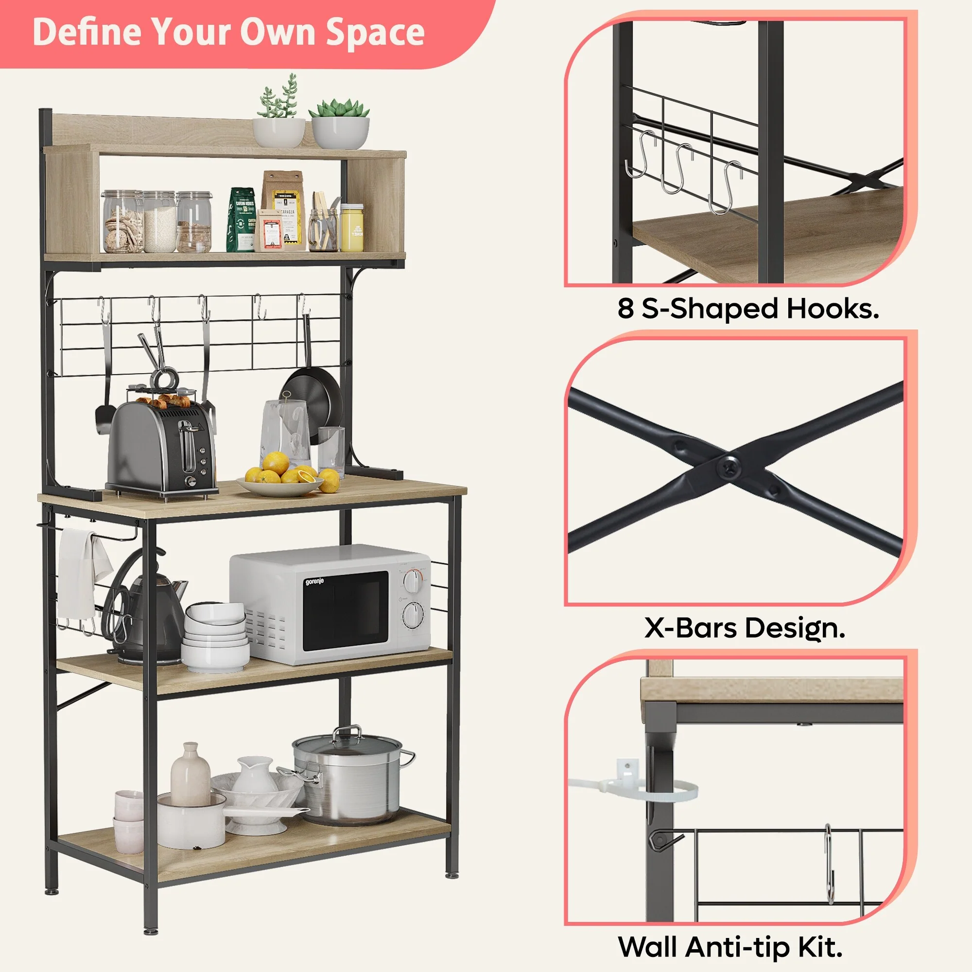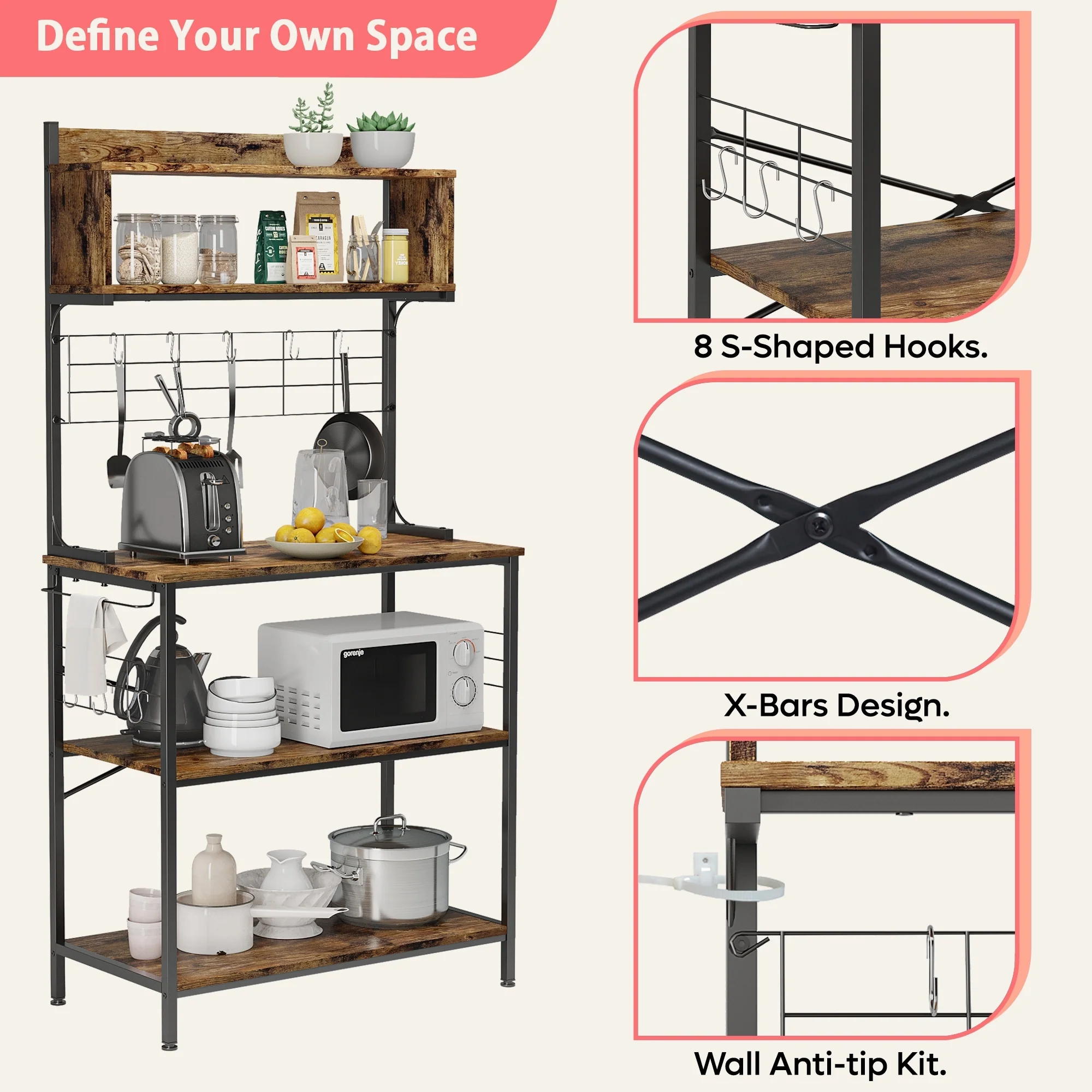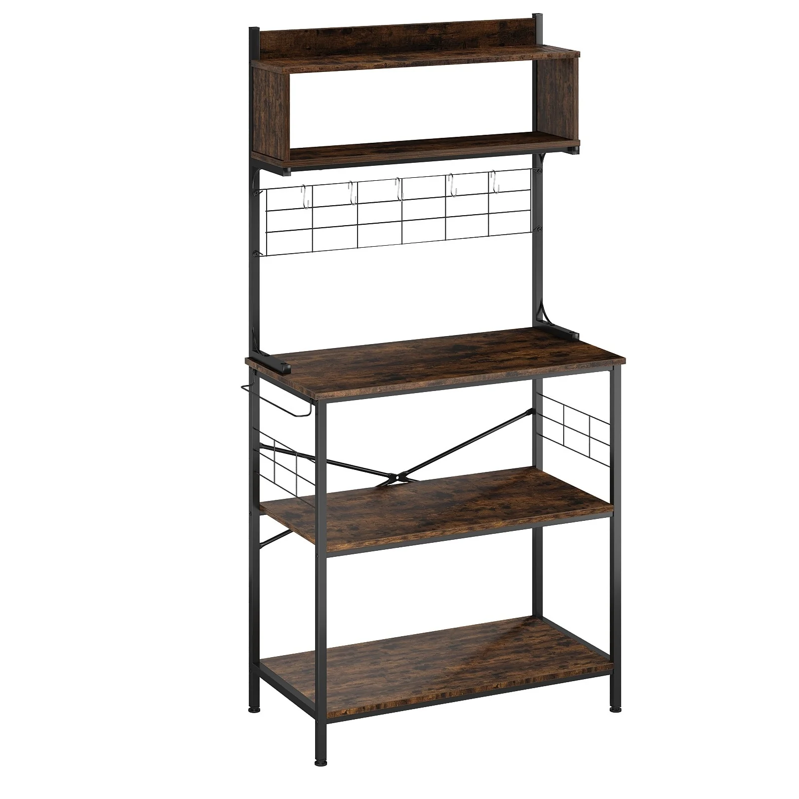 4-Tier Bakers Rack Kitchen Rack Stand with Hooks and Mesh Panel