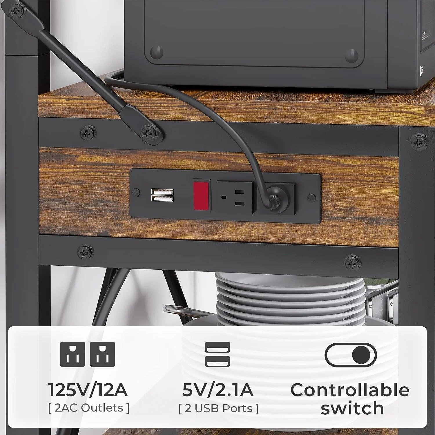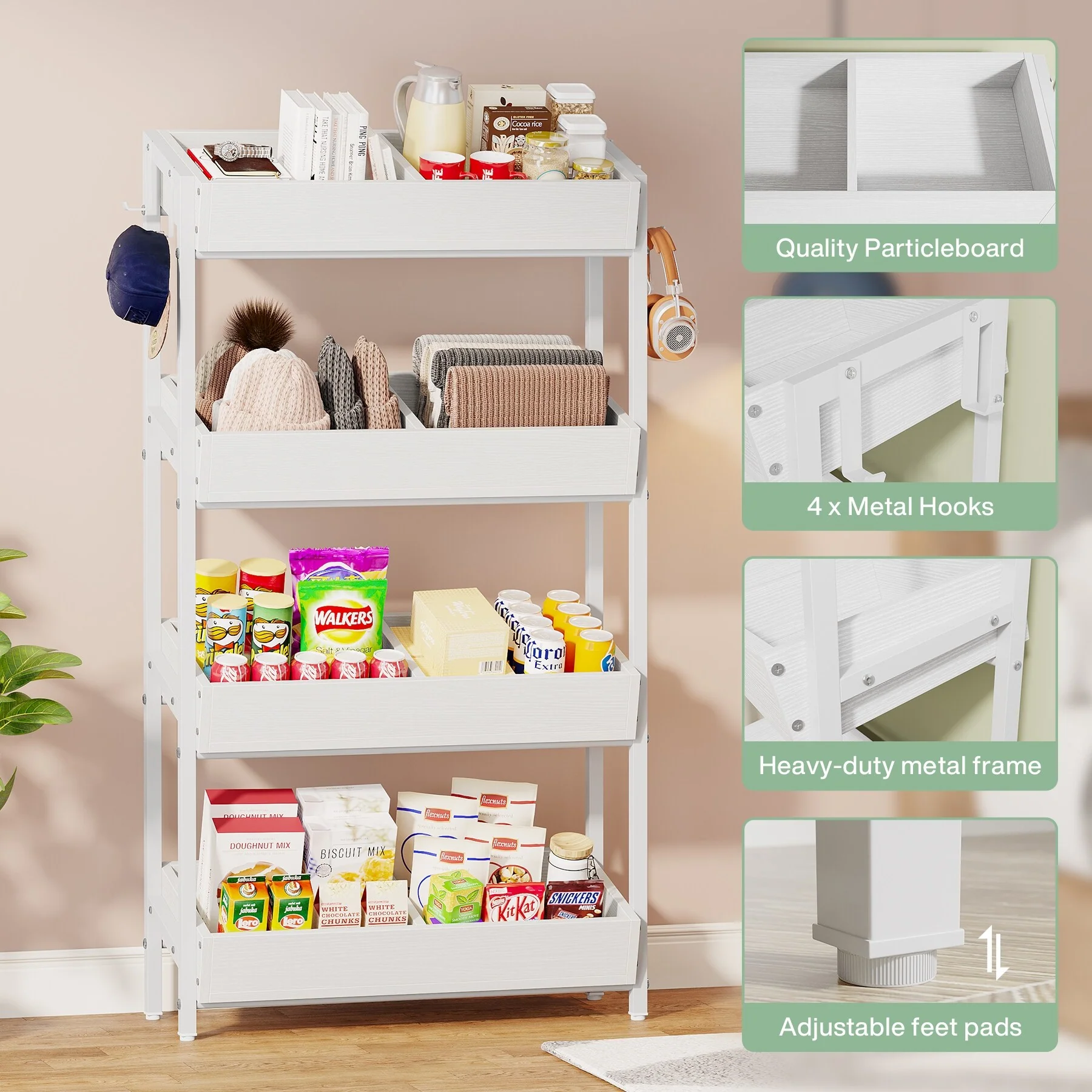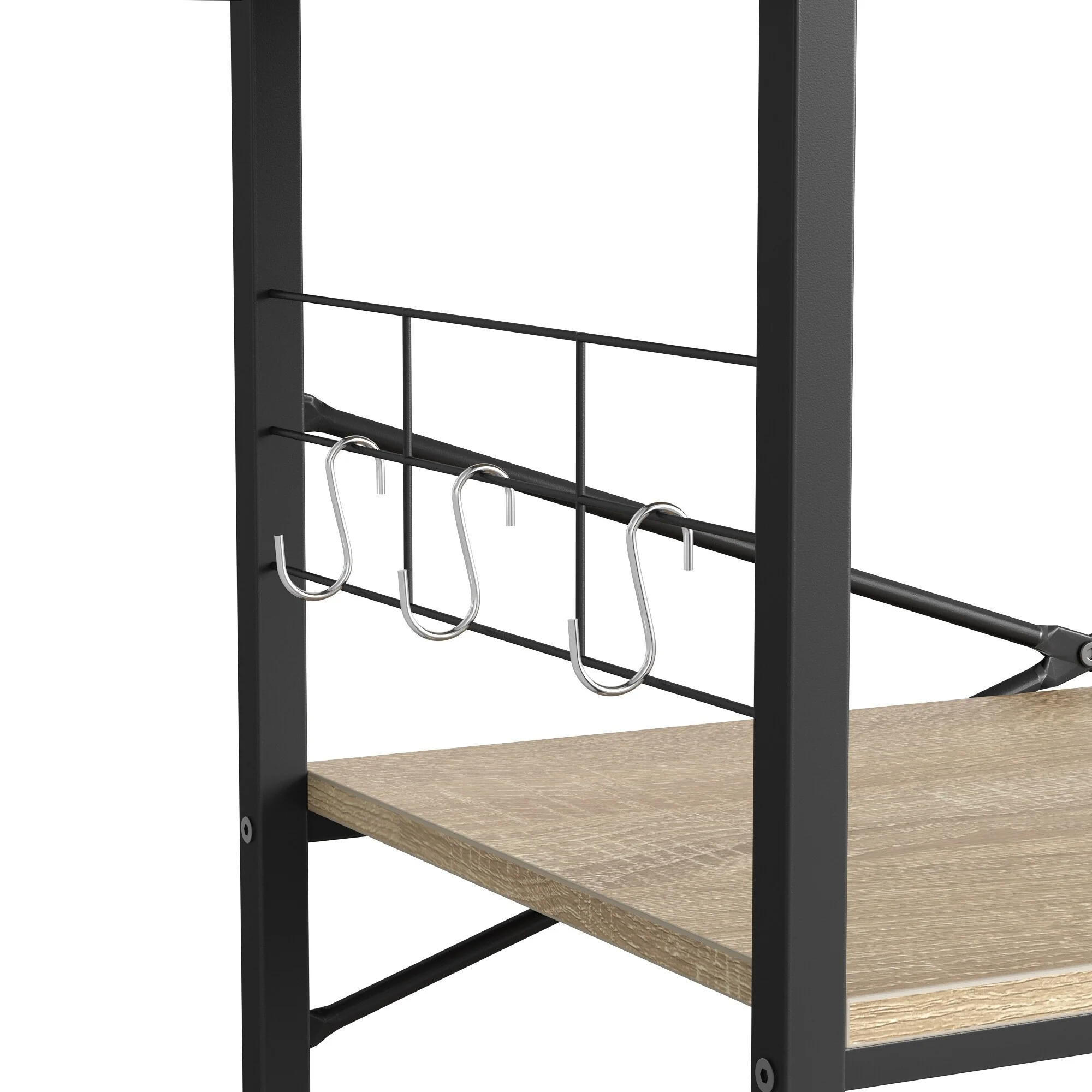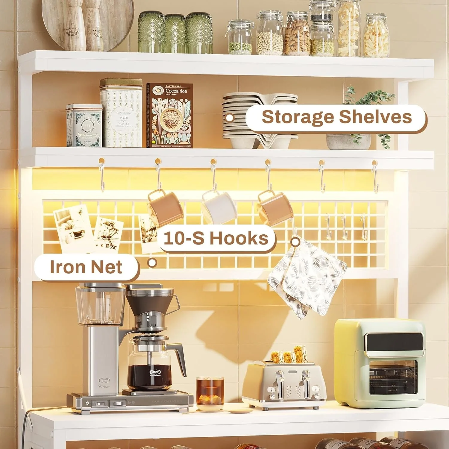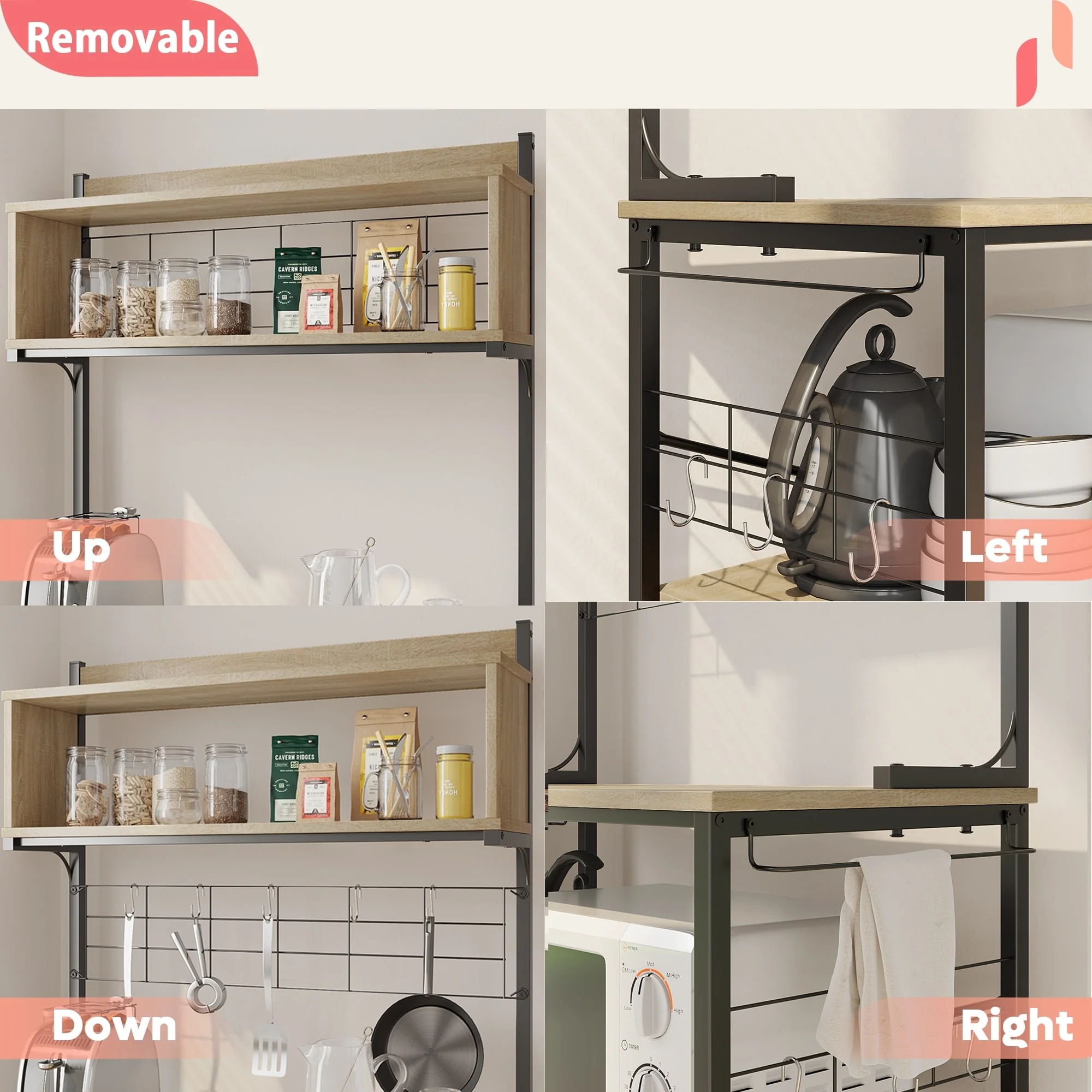 4-Tier Bakers Rack Kitchen Rack Stand with Hooks and Mesh Panel