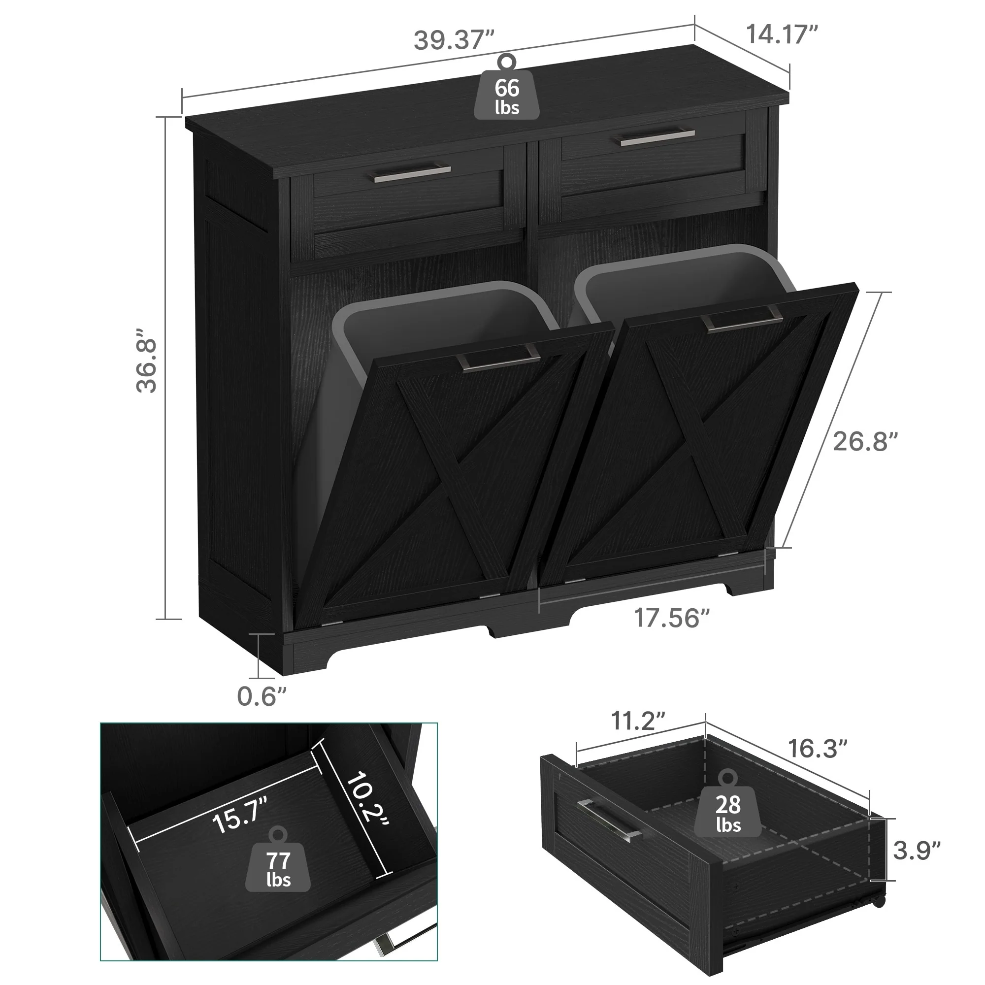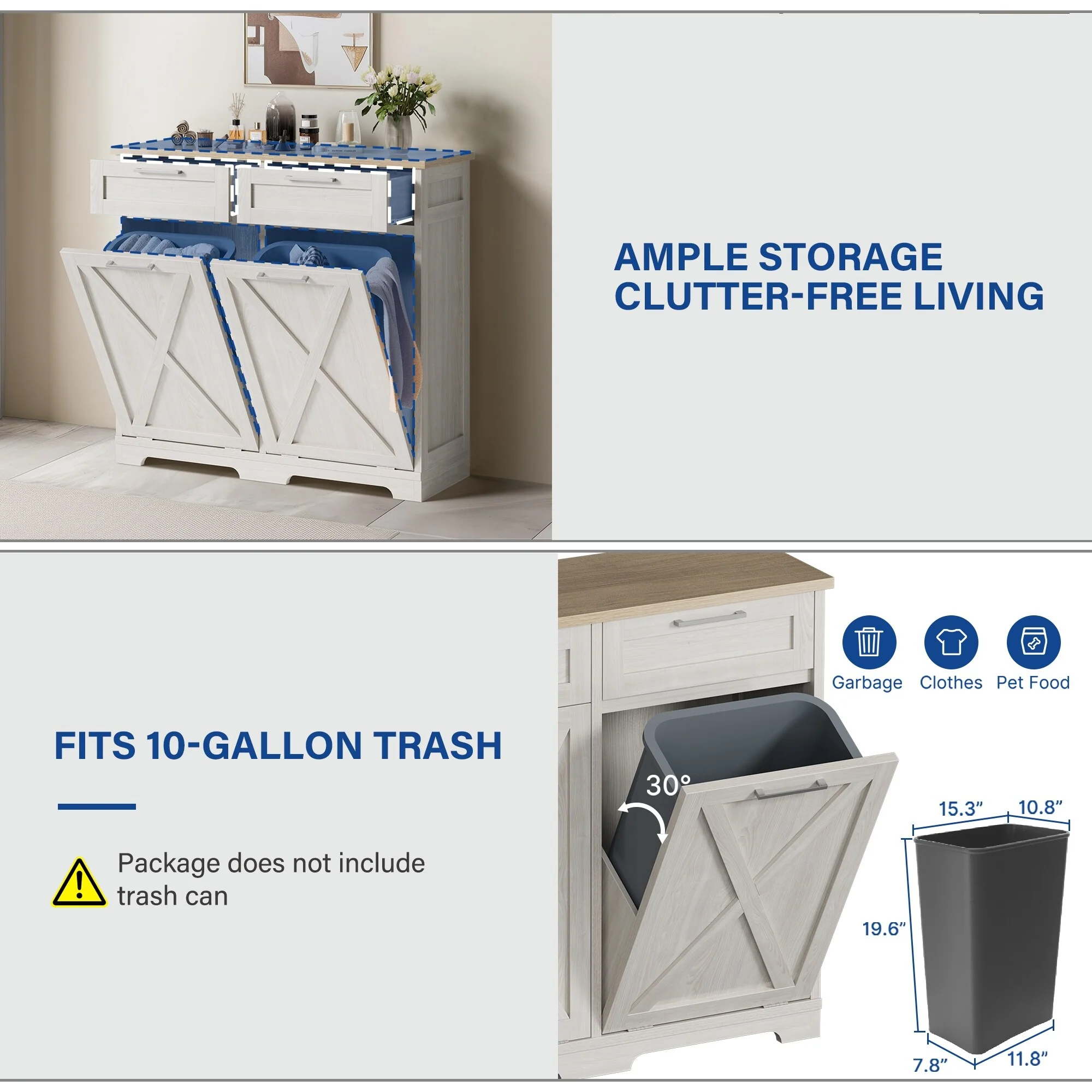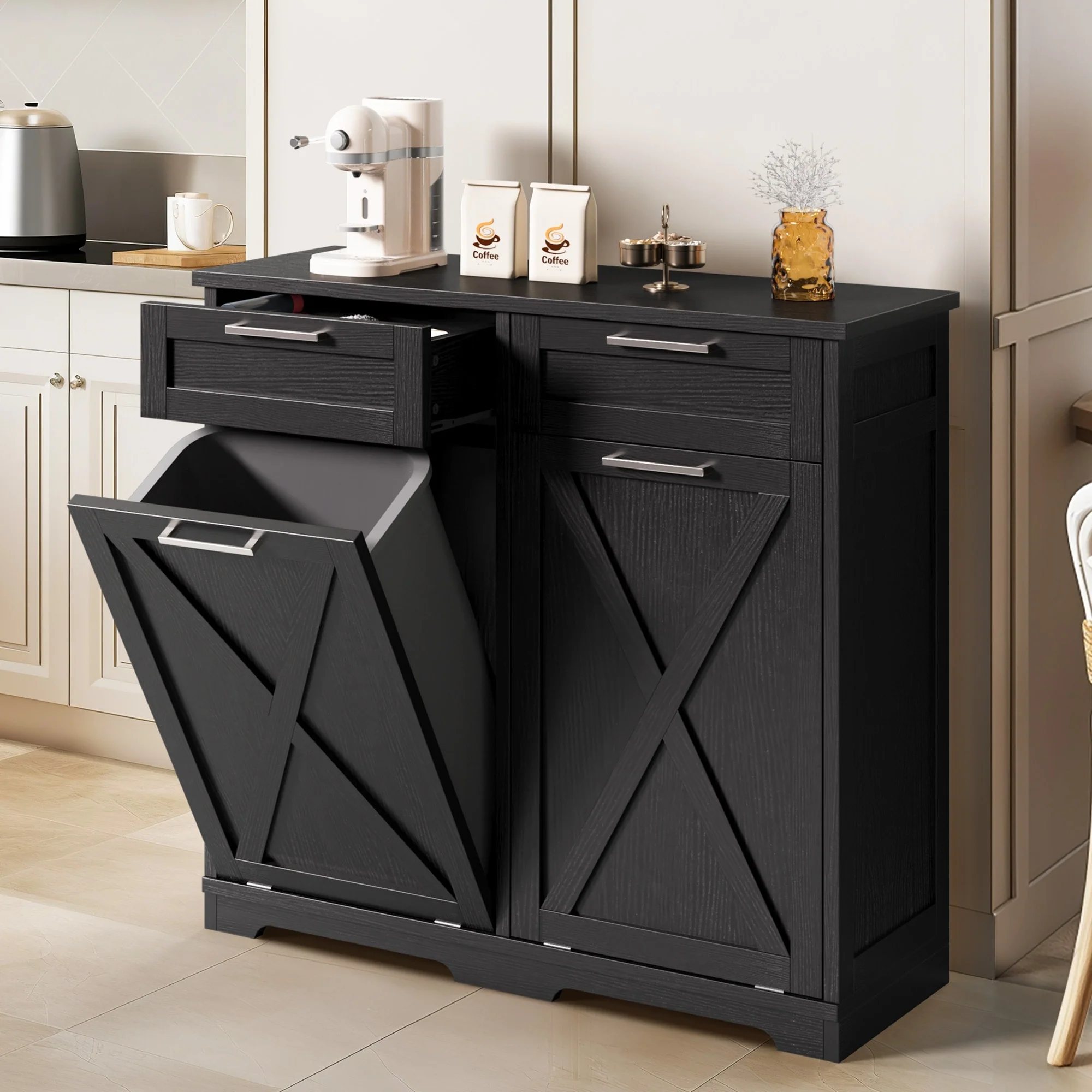 Moasis Kitchen Wooden Double Tilt Out Trash Can Cabinet with 2-Drawer