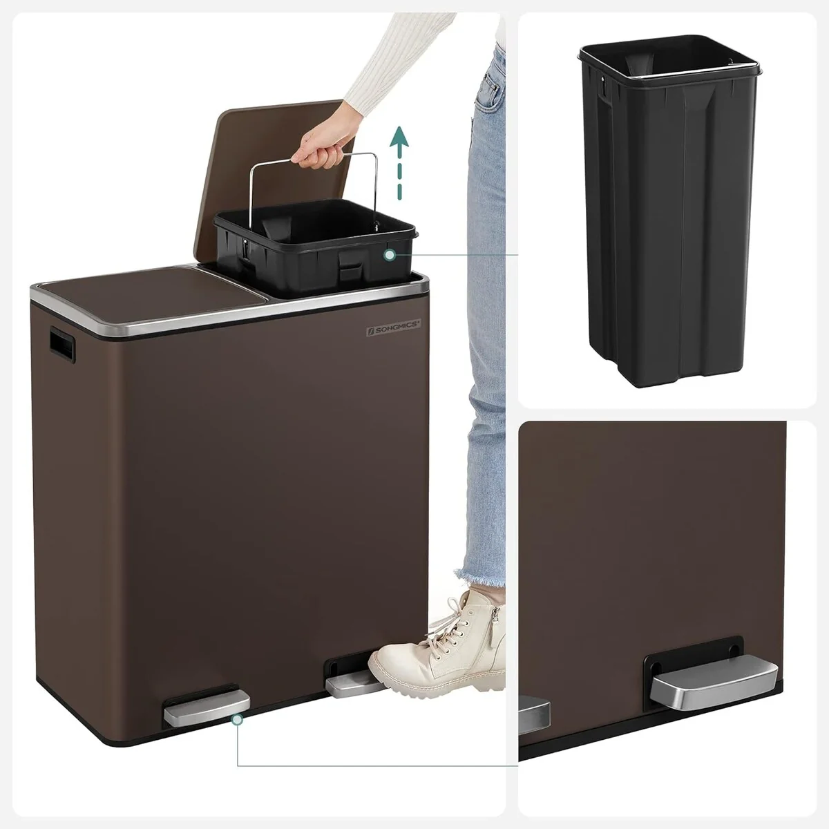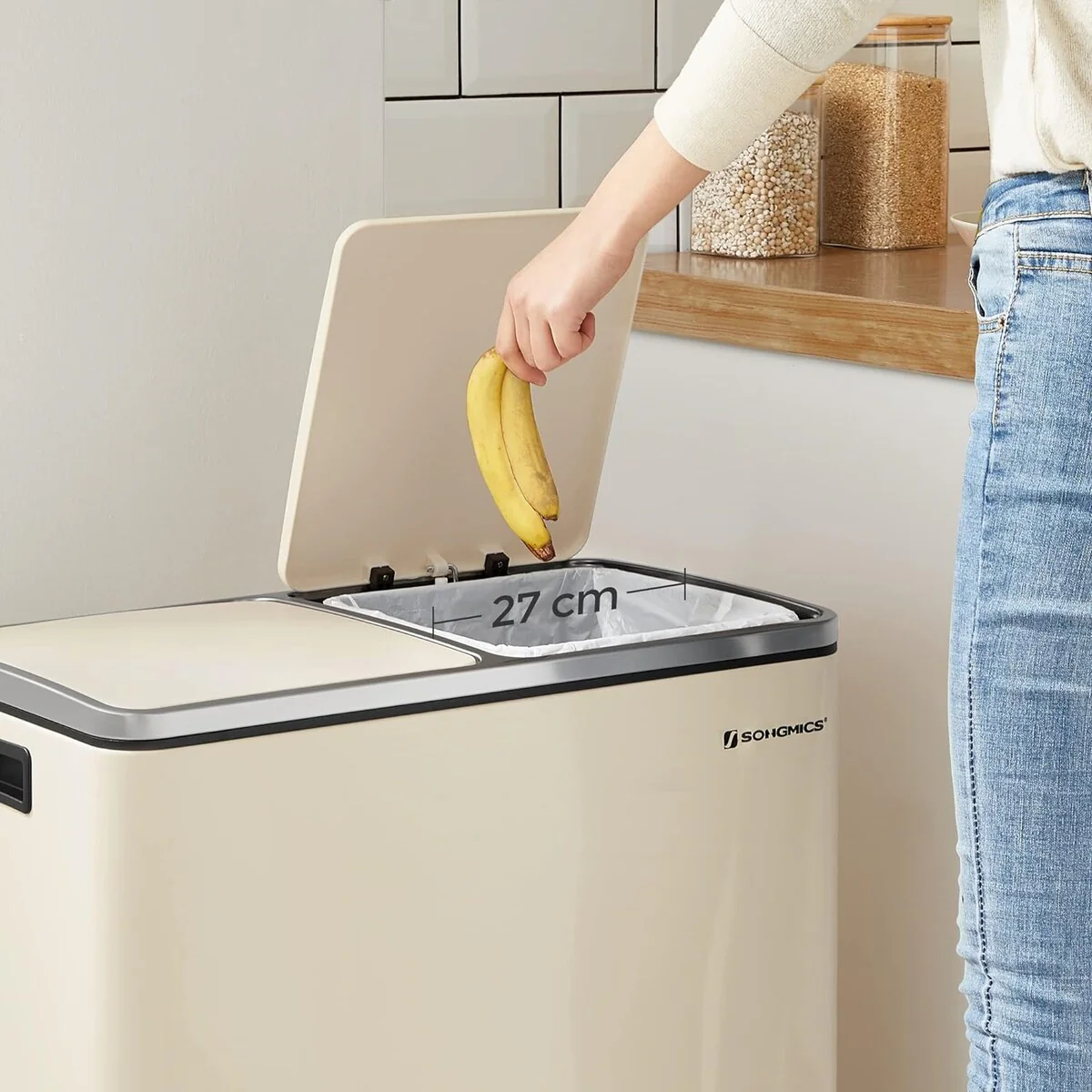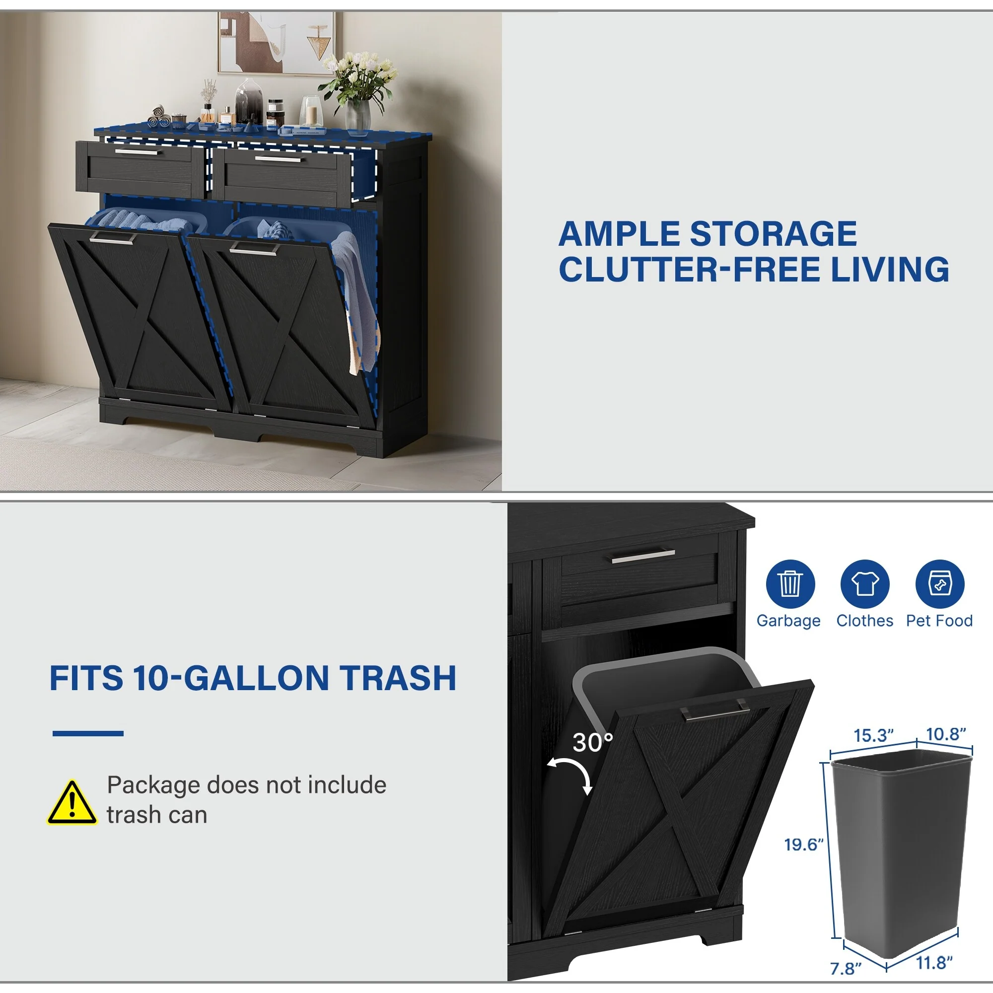 Moasis Kitchen Wooden Double Tilt Out Trash Can Cabinet with 2-Drawer