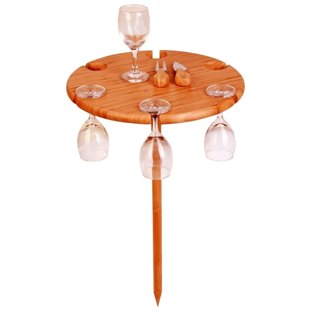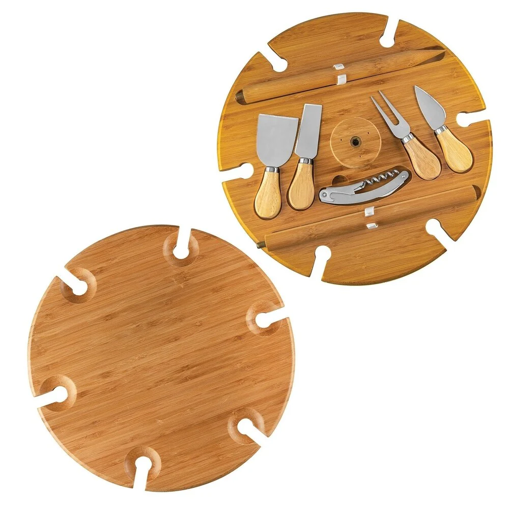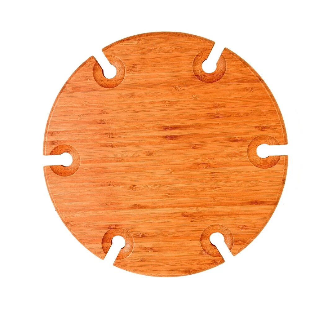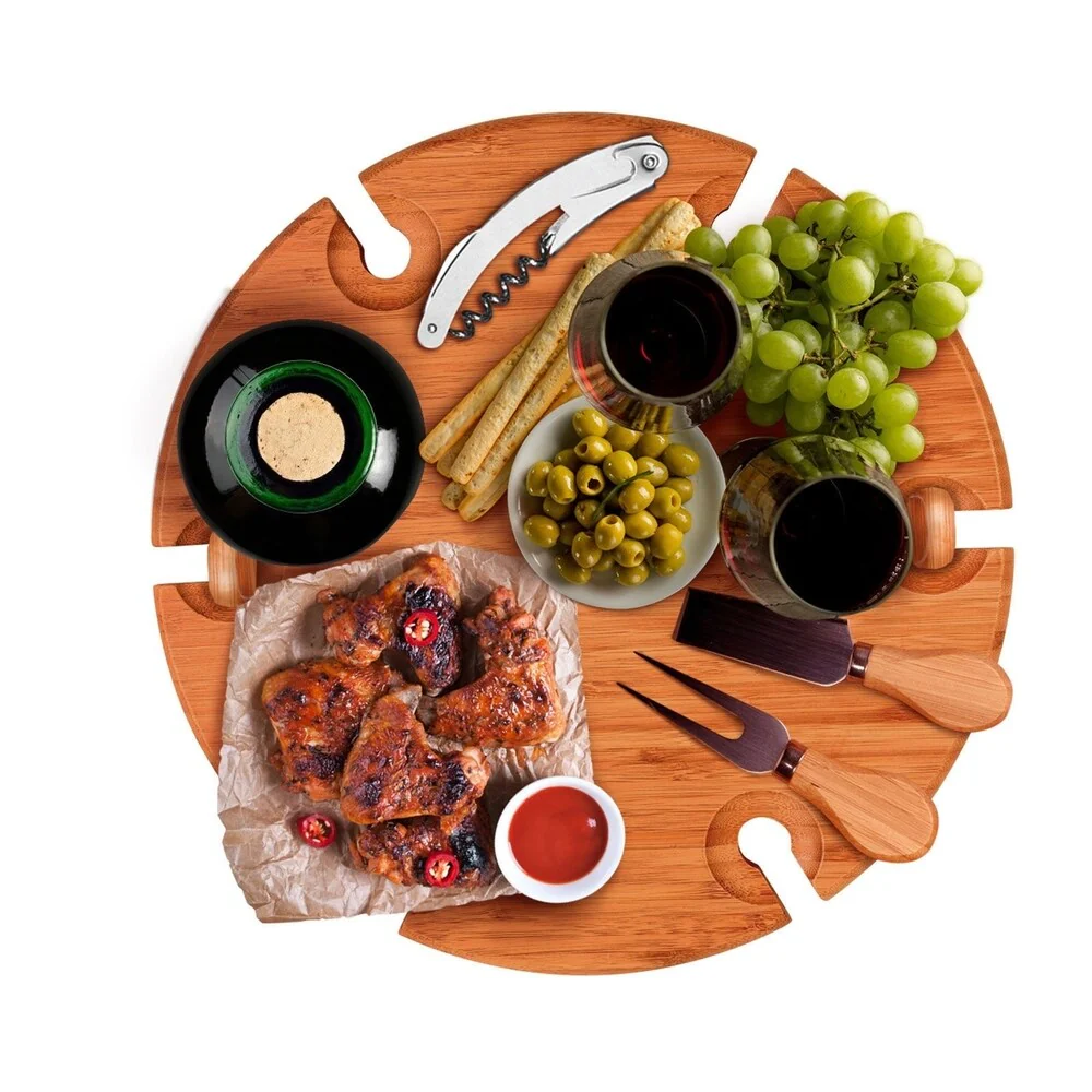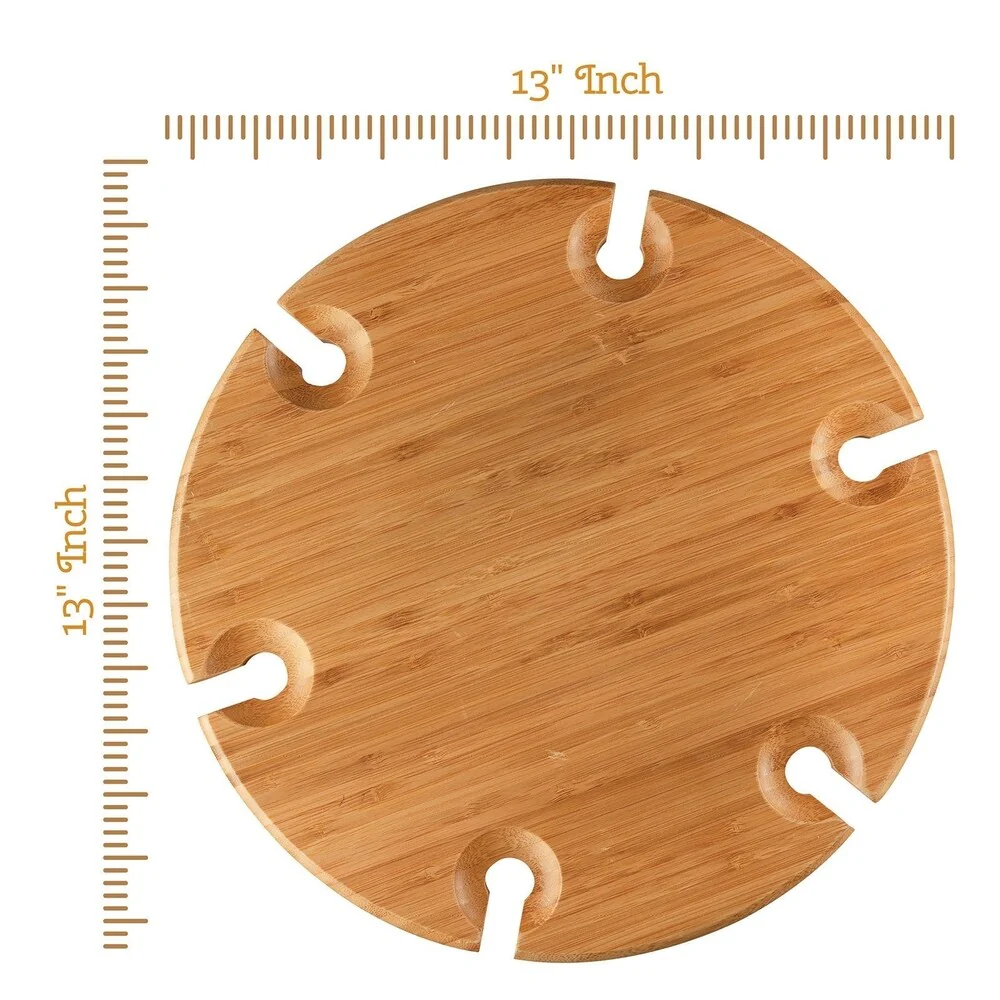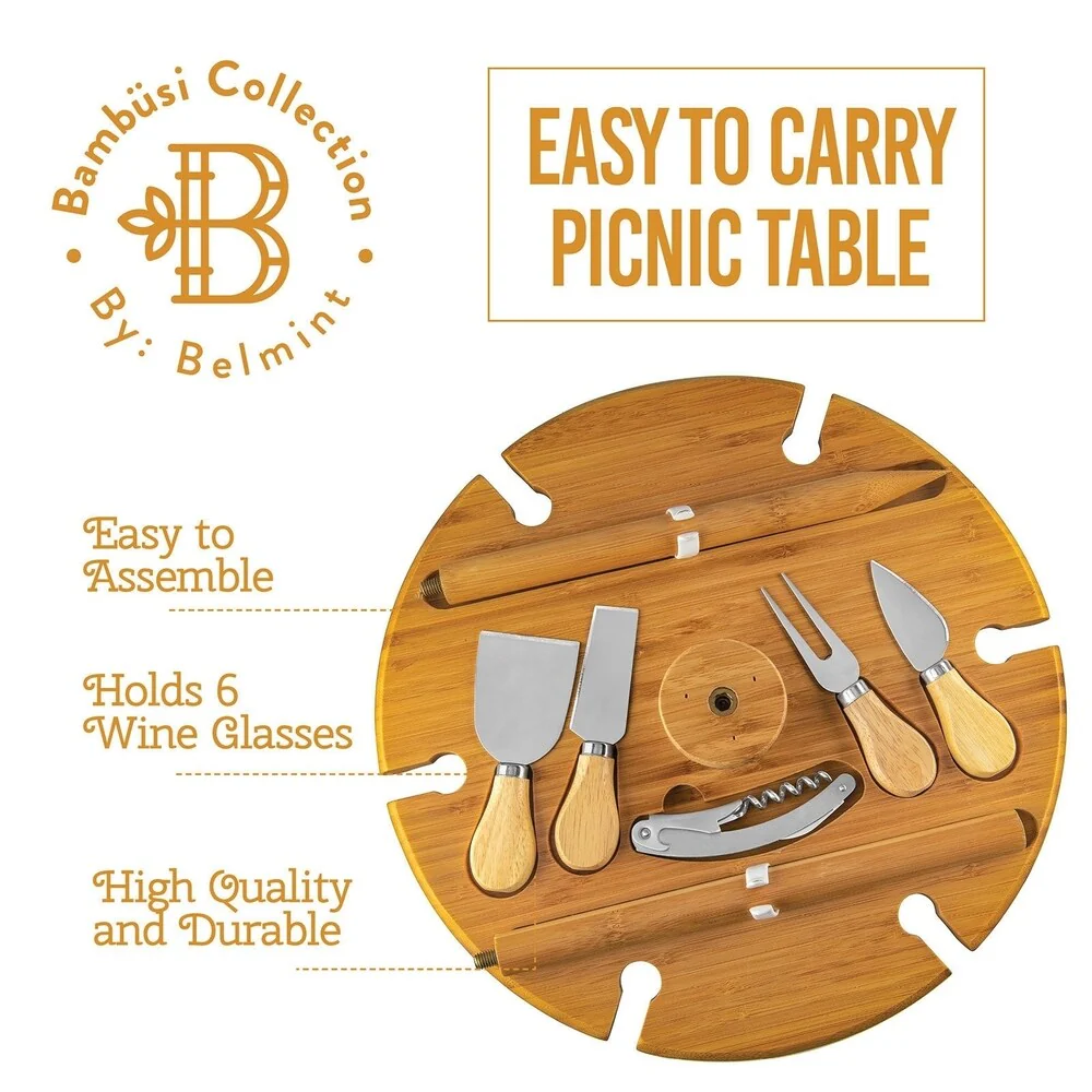Bambusi Portable Outdoor Picnic Wine Table Holder w Cutlery Cheese Set