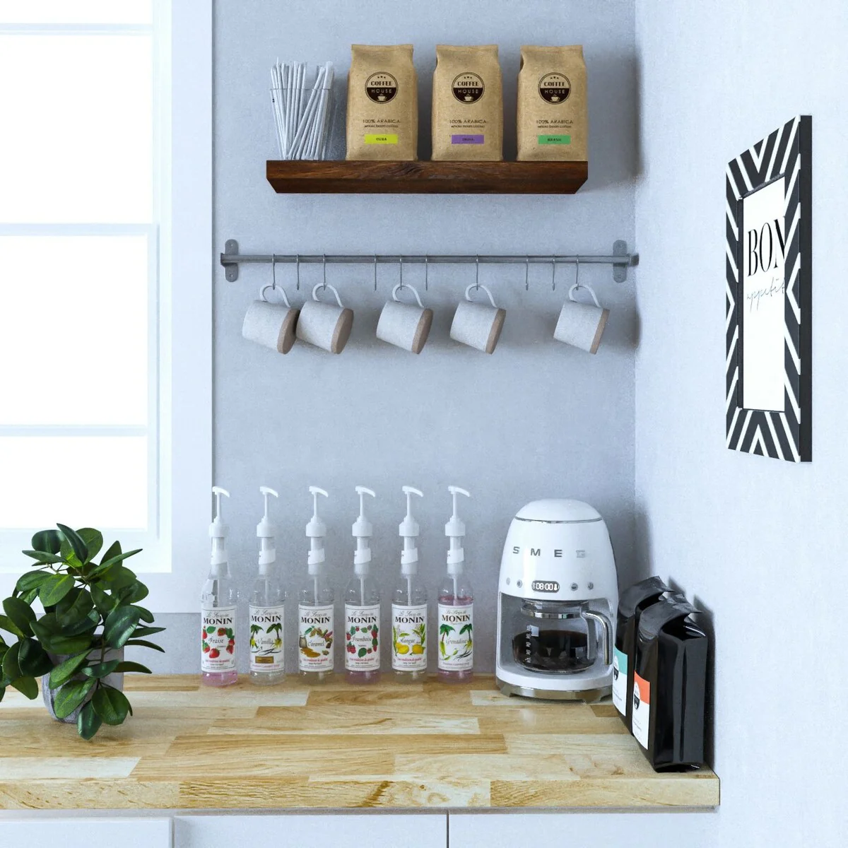 Coffee Mug Display Rack Wall Mounted Shelf with 12 Hooks for Kitchen