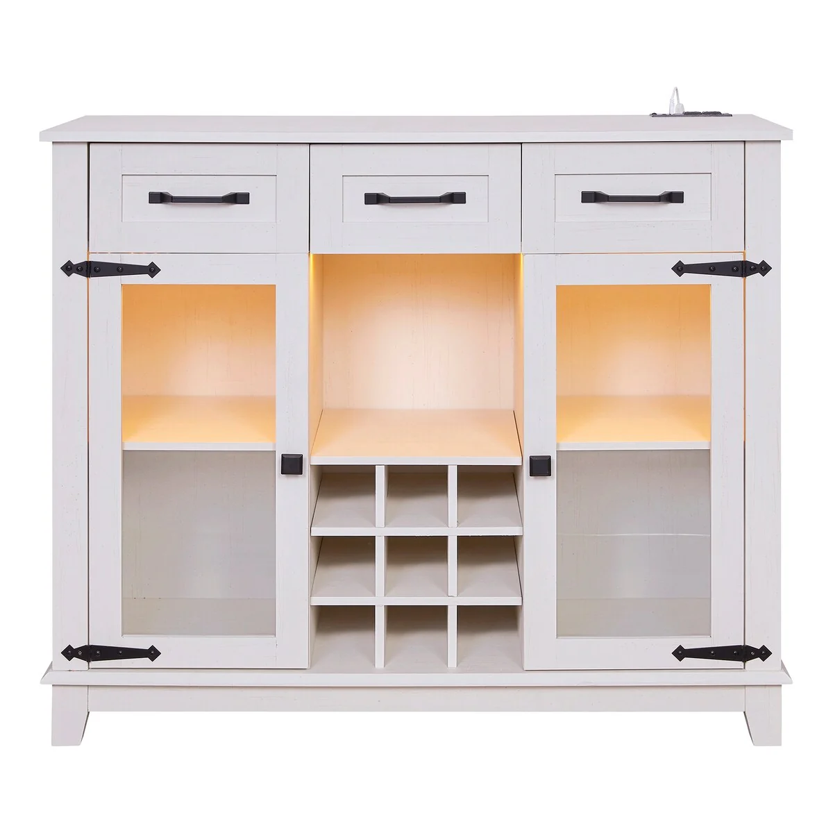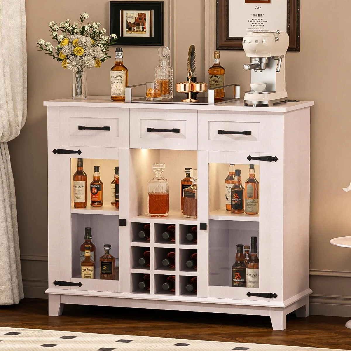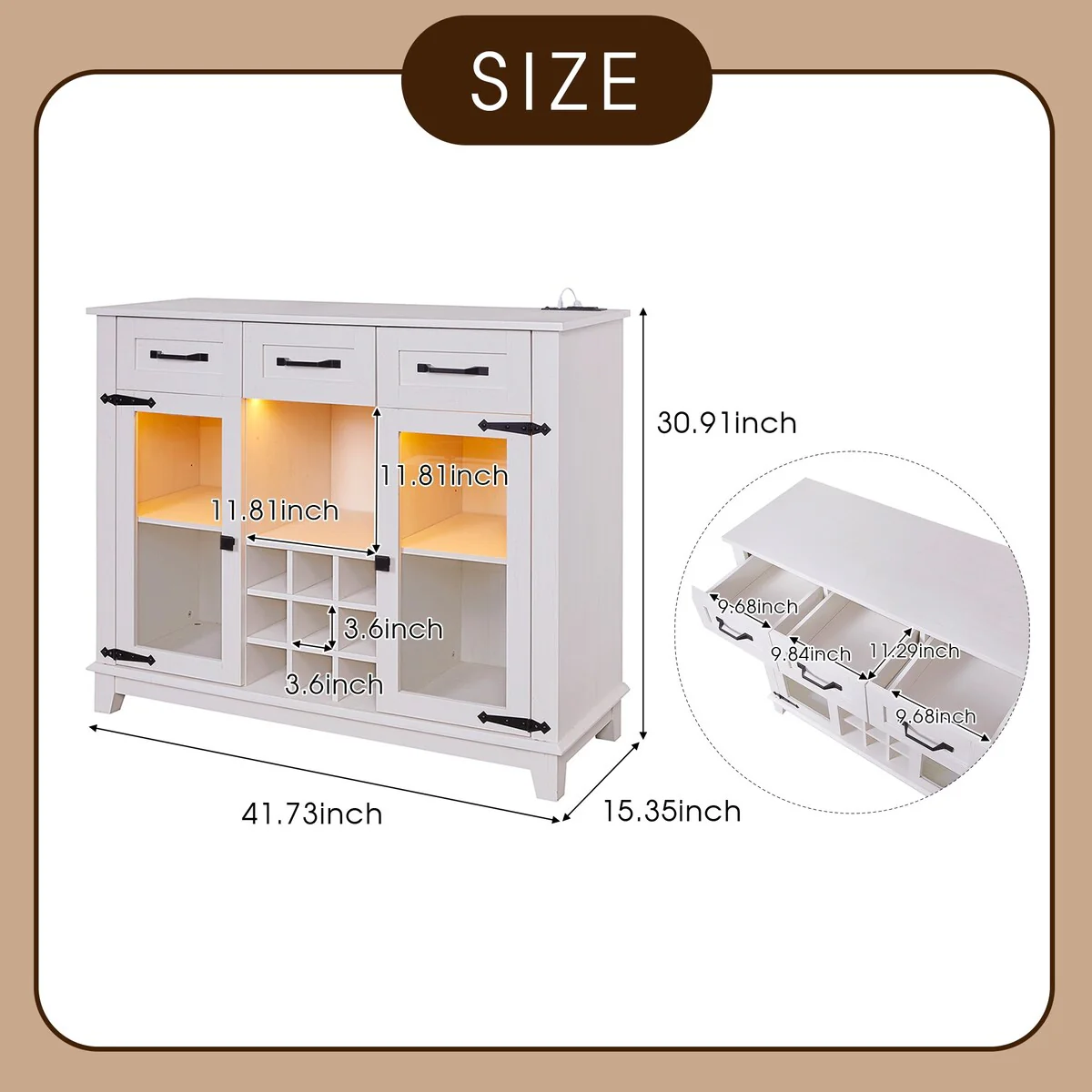 47" Farmhouse Bar Cabinet with Storage and LED - N/A