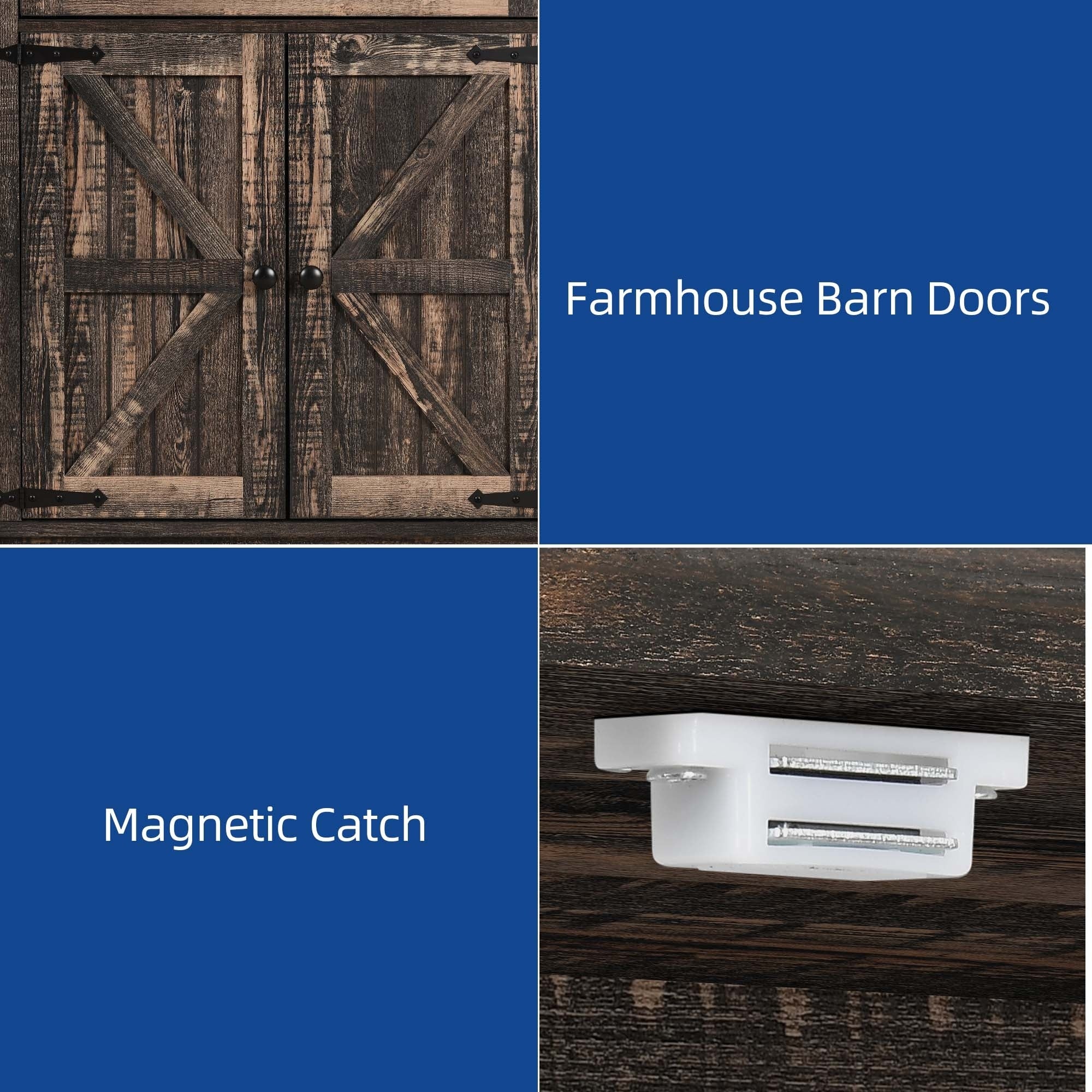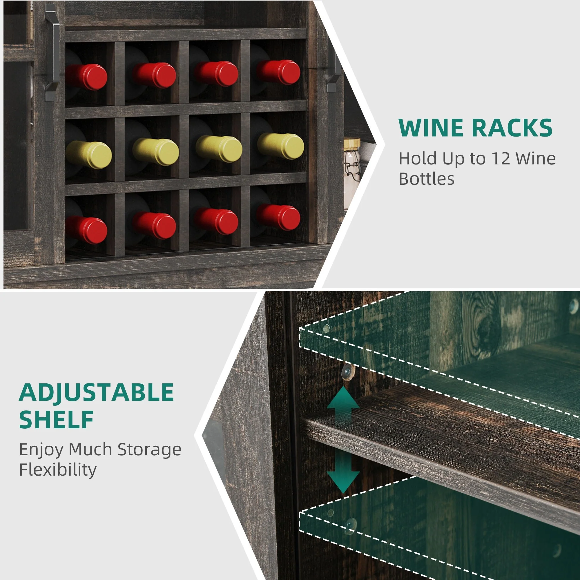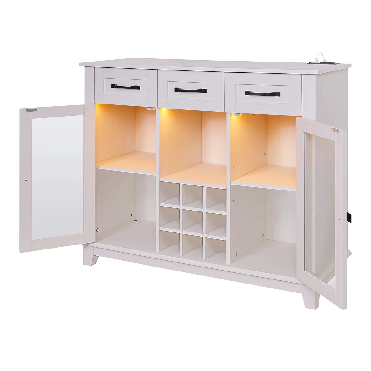 47" Farmhouse Bar Cabinet with Storage and LED - N/A