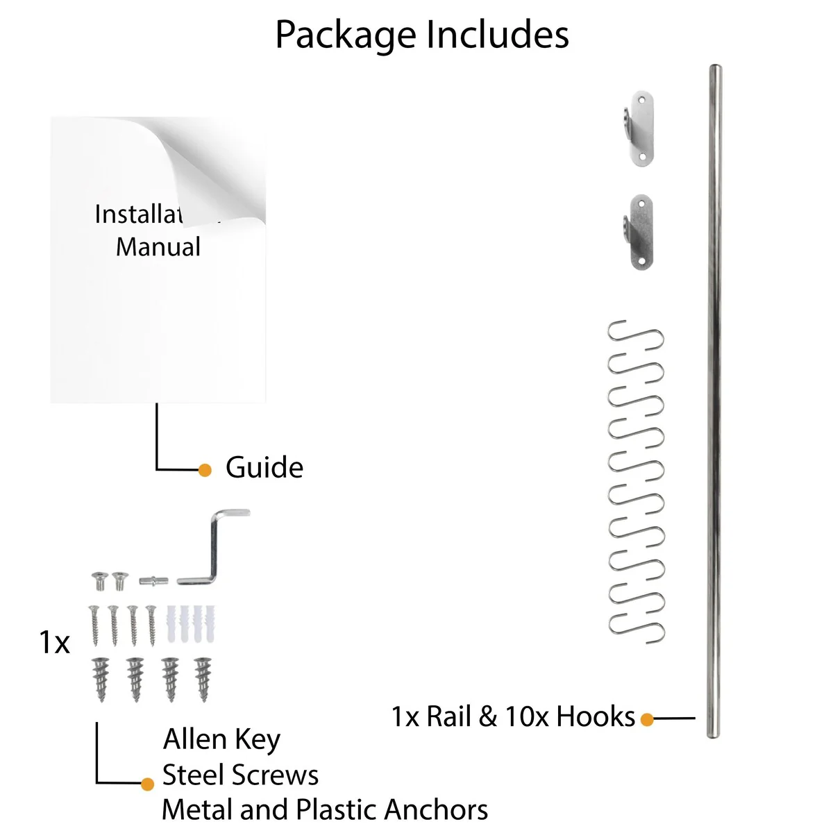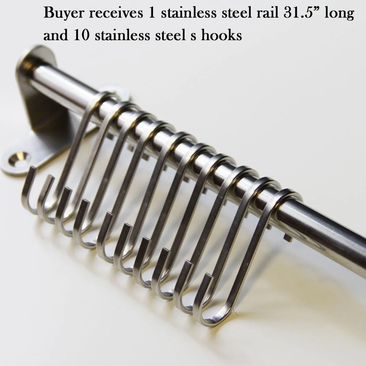 Wallniture Lyon Steel 31.5'' Pot Rack with 10 Hooks, Utensil Holder, Silver