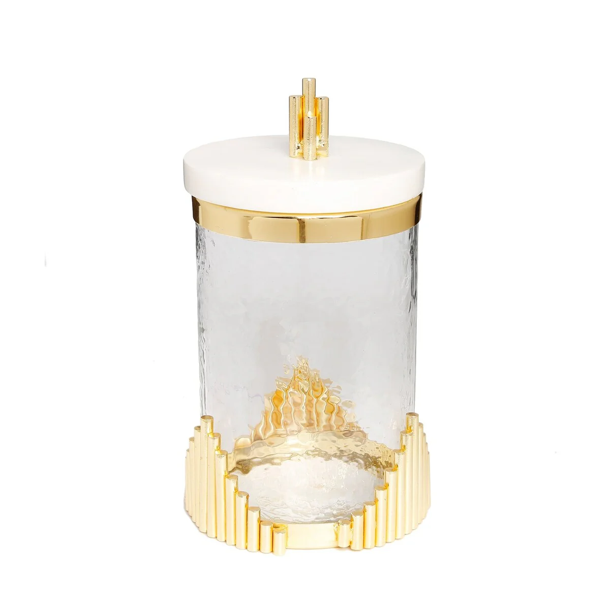 Medium Glass Canister with Marble Lid and Symmetrical Gold Design