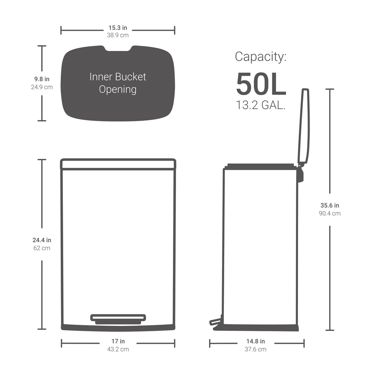 Qualiazero 50L / 13.2 Gallon Slim Step Can